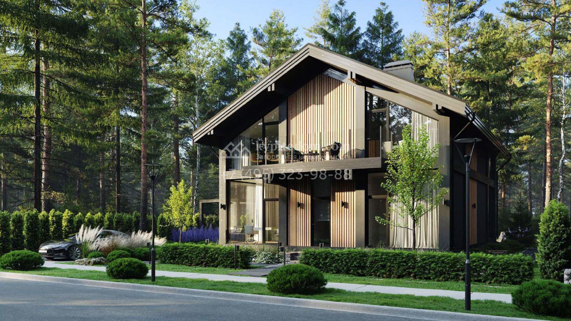 Загородный дом площадью 306 м² по проекту foster delight расположен на лесном участке 8,4 сотки. Современный фасад здания в стиле «фахверк» выполнен с железобетонным каркасом и стенами из кирпича. Благодаря панорамному остеклению и потолкам высотой 3,6 метра внутренее просторанство наполнено воздухом и светом. В коттедже выполнена отделка white box — осталось лишь выбрать финишные покрытия, мебель и текстиль. В резиденции спланировали 3 спальни, гостиную, кухню-столовую и кабинет. На участке выполнен ландшафтный дизайн и вымощены дорожки.