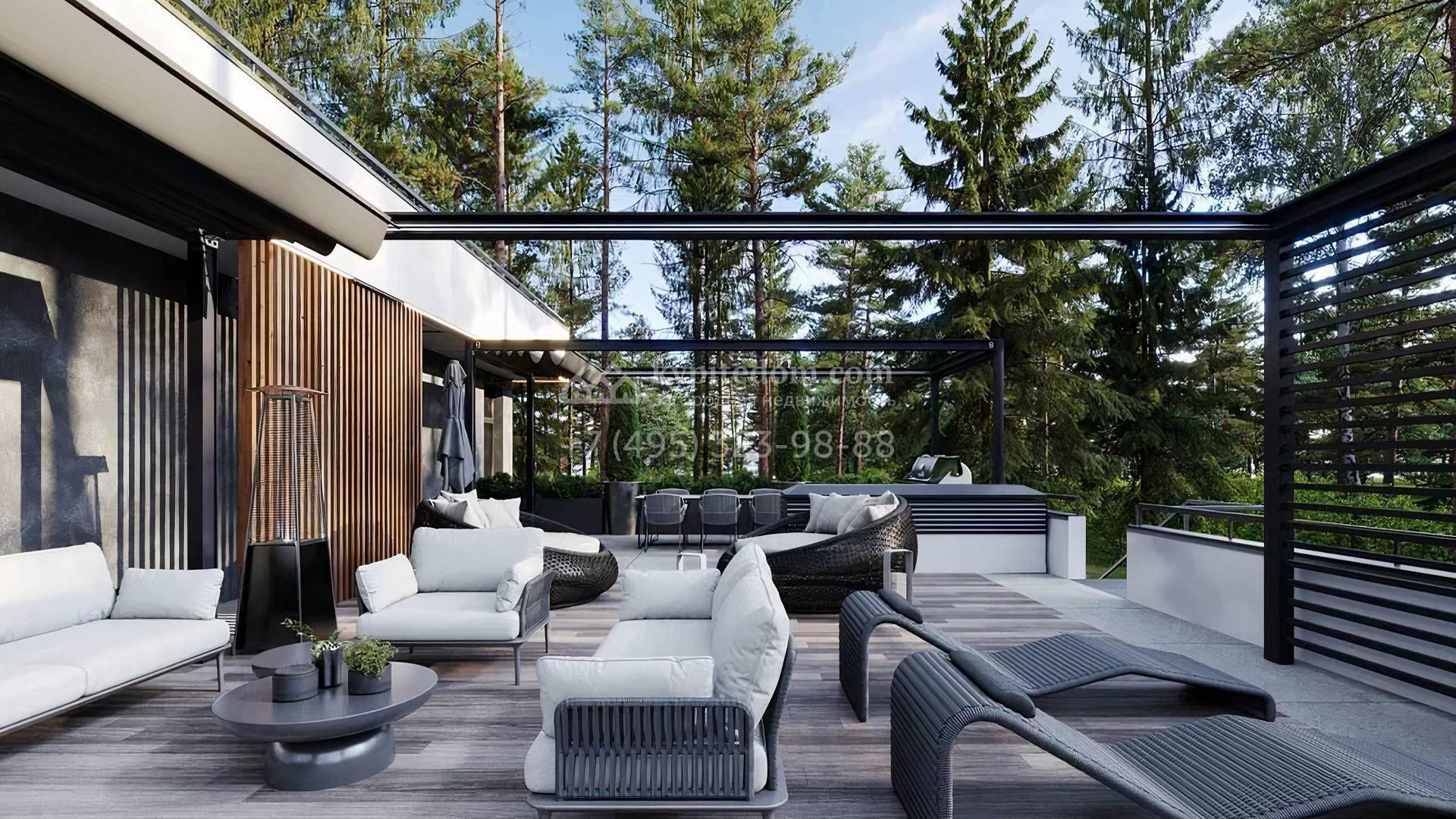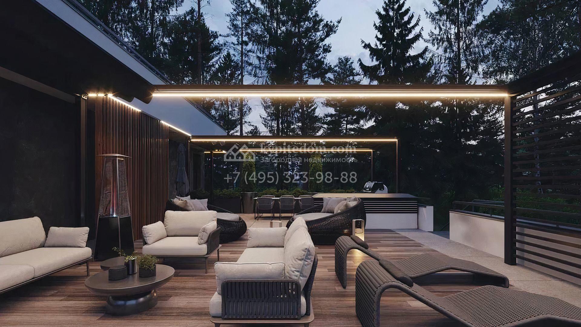 Загородный дом площадью 549 м² по проекту foster delight max построен на лесном участке 11,1 сотки. Лаконичный фасад с панорамными окнами и плоской кровлей выполнен в современном стиле. В коттедже выполнена отделка white box — осталось лишь выбрать финишные покрытия, мебель и текстиль. Из главной спальни можно попасть на просторную террасу 120 м², где приятно проводить время на свежем воздухе. Расслабиться в конце дня можно в сауне и комнате отдыха. В конутре дома расположен гараж на 2 машины. На участке выполнен ландшафтный дизайн, вымощена площадка перед домом и высажены кустарники.