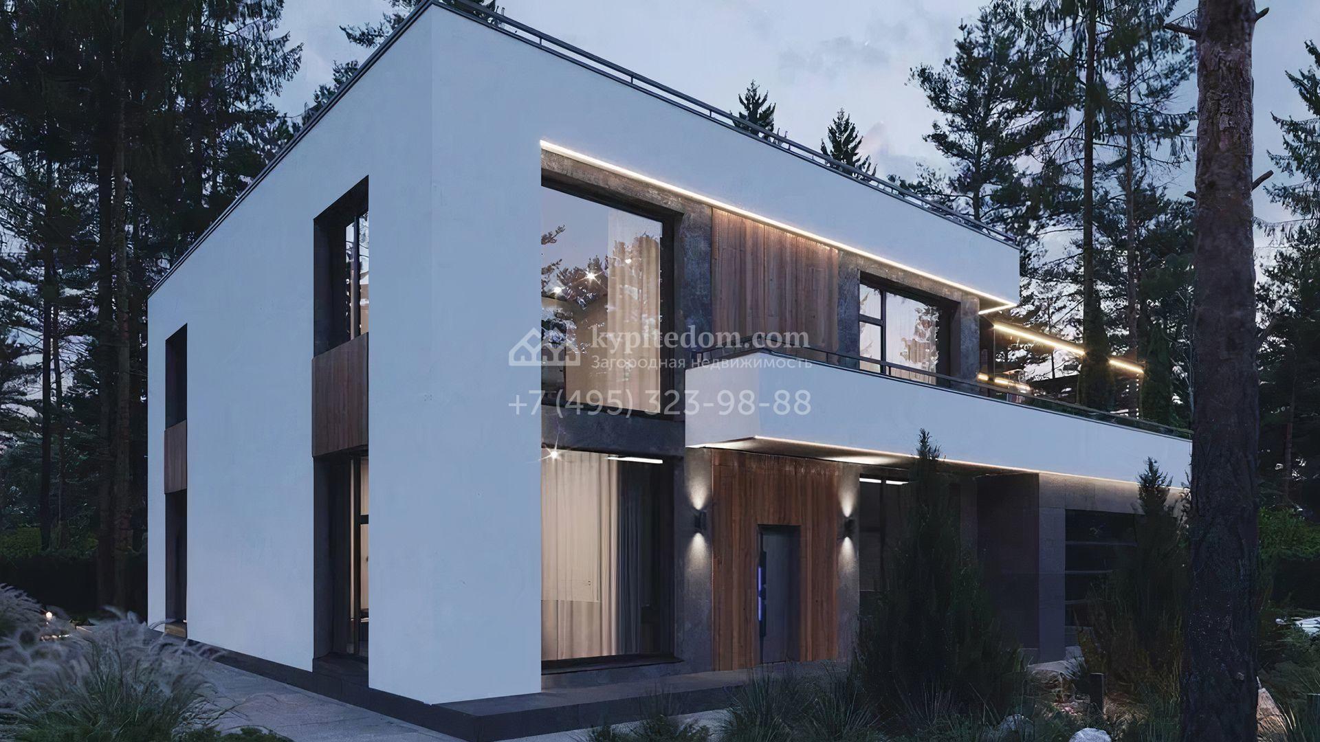 Загородный дом площадью 549 м² по проекту foster delight max построен на лесном участке 13 соток. Лаконичный фасад с панорамными окнами и плоской кровлей выполнен в современном стиле. В коттедже выполнена отделка white box — осталось лишь выбрать финишные покрытия, мебель и текстиль. Из главной спальни можно попасть на просторную террасу 120 м², где приятно проводить время на свежем воздухе. Расслабиться в конце дня можно в сауне и комнате отдыха. В конутре дома расположен гараж на 2 машины. На участке выполнен ландшафтный дизайн, вымощена площадка перед домом и высажены кустарники.
