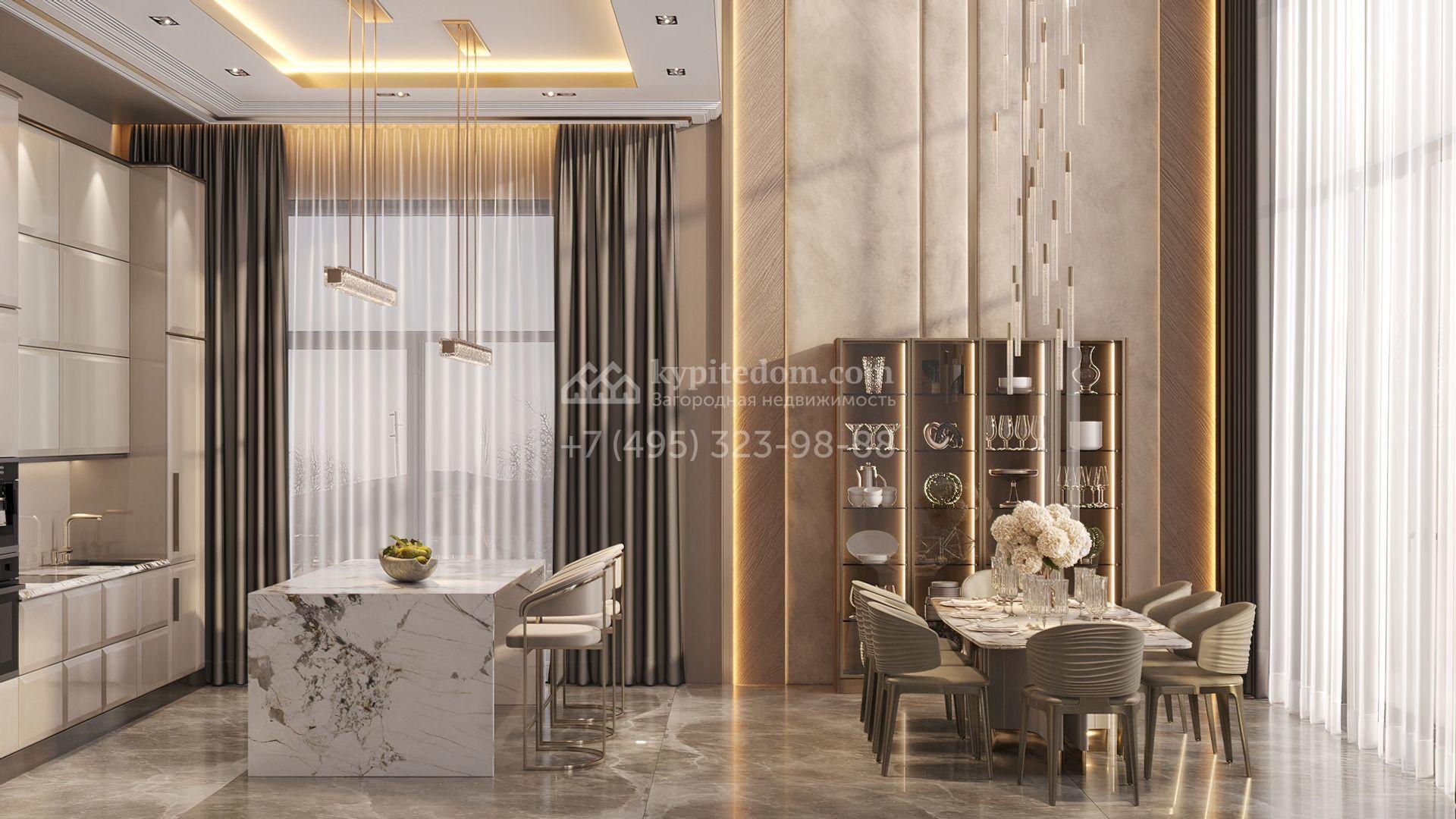 Загородная резиденция площадью 1100 м² расположена на участке 15 соток в тихой части поселка. Здание спроектировано и реализовано в рамках уникального концепта и отражает черты бионического стиля. На текущий момент начинаются работы по предчистовой отделке whitebox. Есть готовый дизайн-проект, который гармонично продолжает общую архитектуру дома и акцентирует внимание на использовании натуральных материалов.