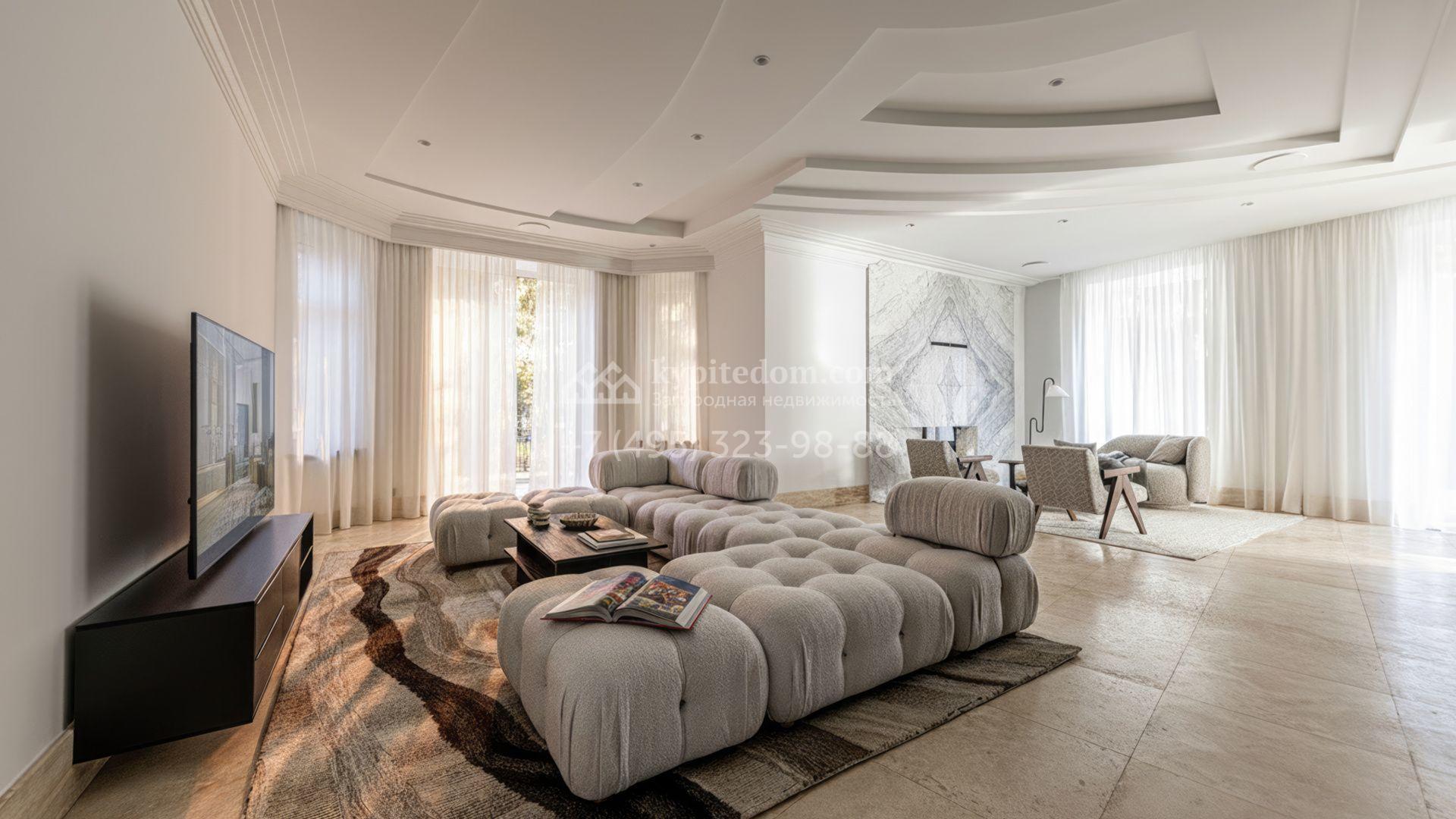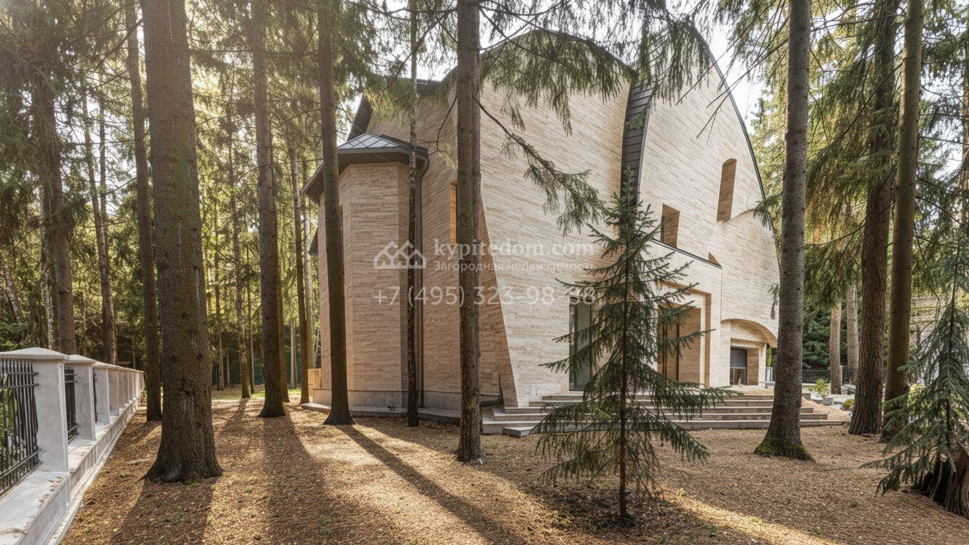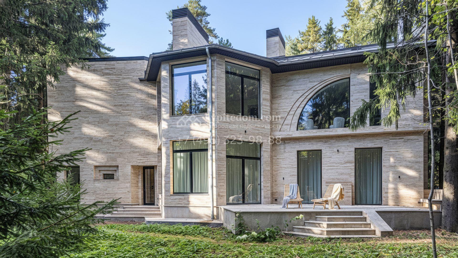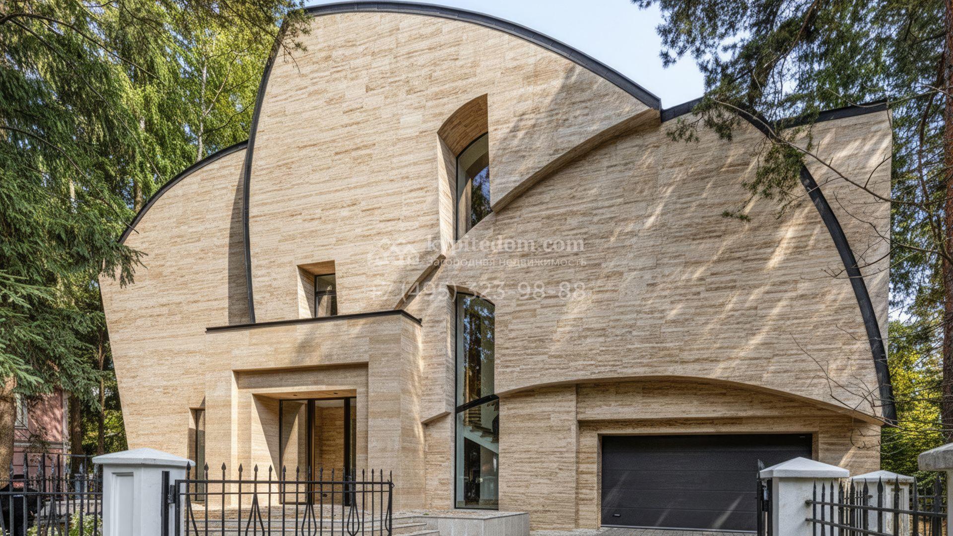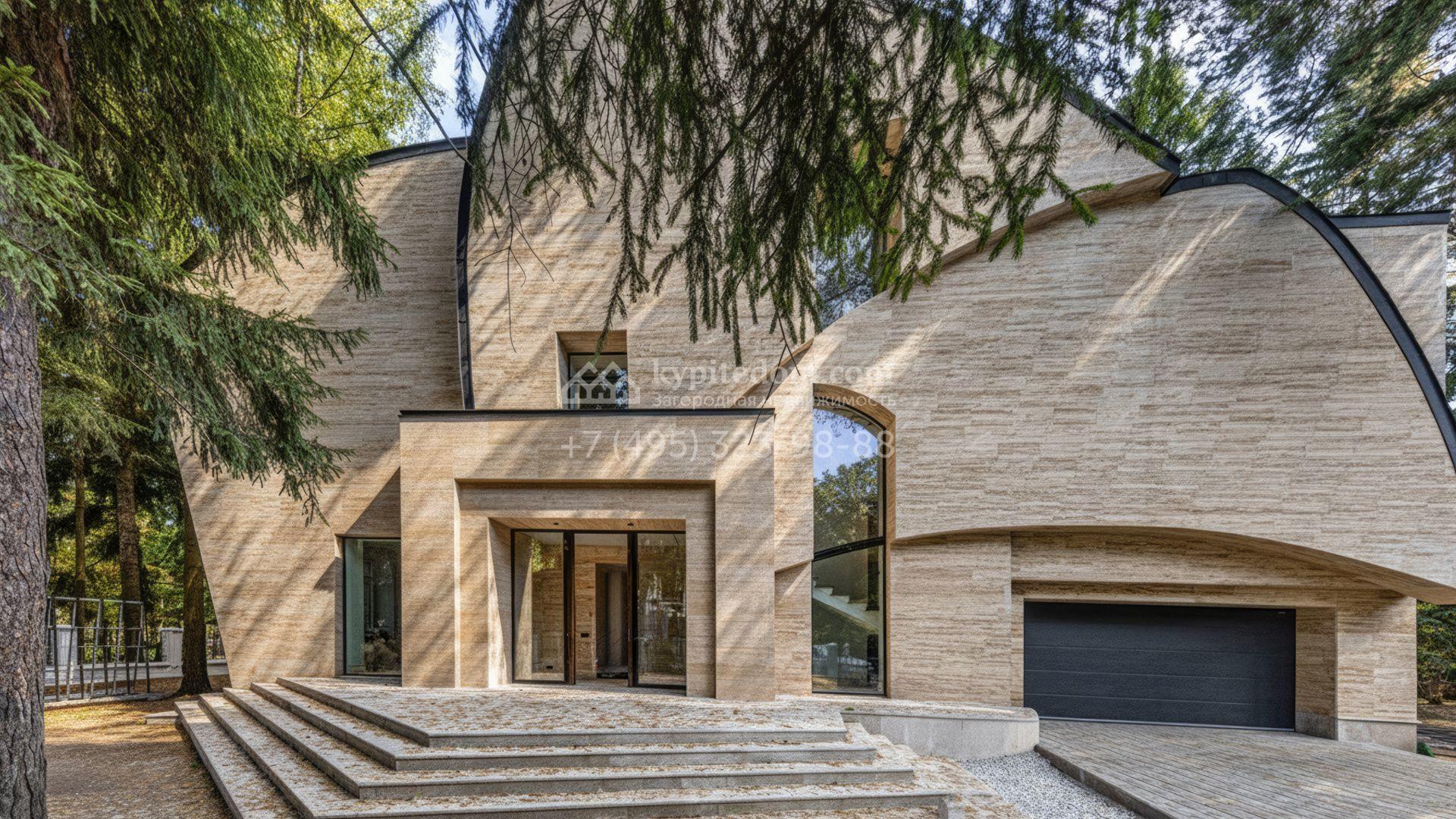 Загородный особняк площадью 720 м² расположен на ухоженном лесном участке 20 соток. Архитектура в духе неоконструктивизма с характерными силуэтами, вдохновлёнными зданием Сиднейского оперного театра, выглядит эффектно и современно. Безрамные панорамные окна TREND открывают вид на лес, а фасад из натурального травертина подчёркивает природный характер дома.
