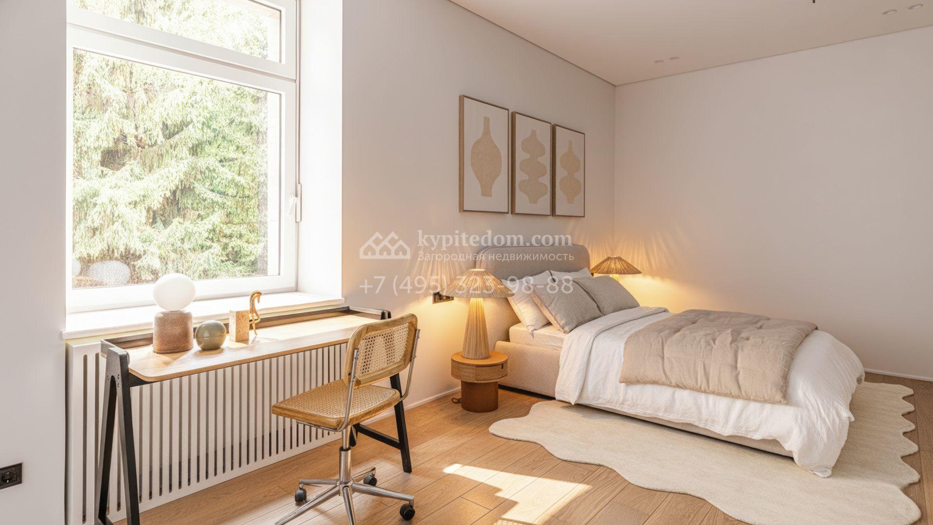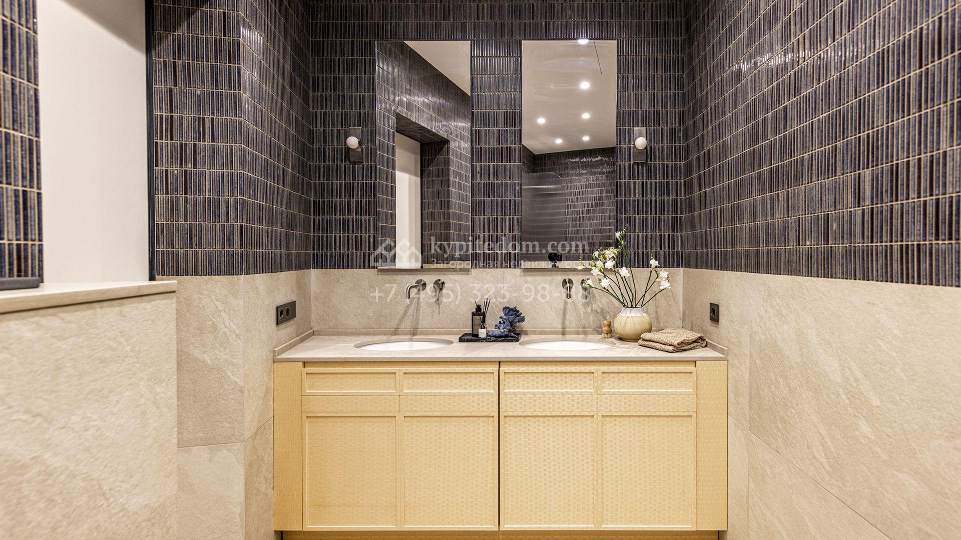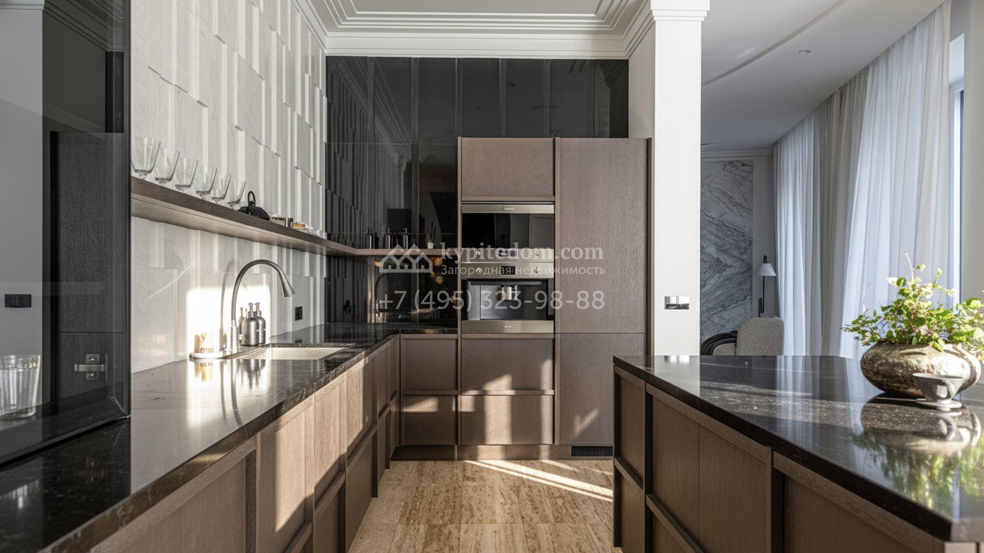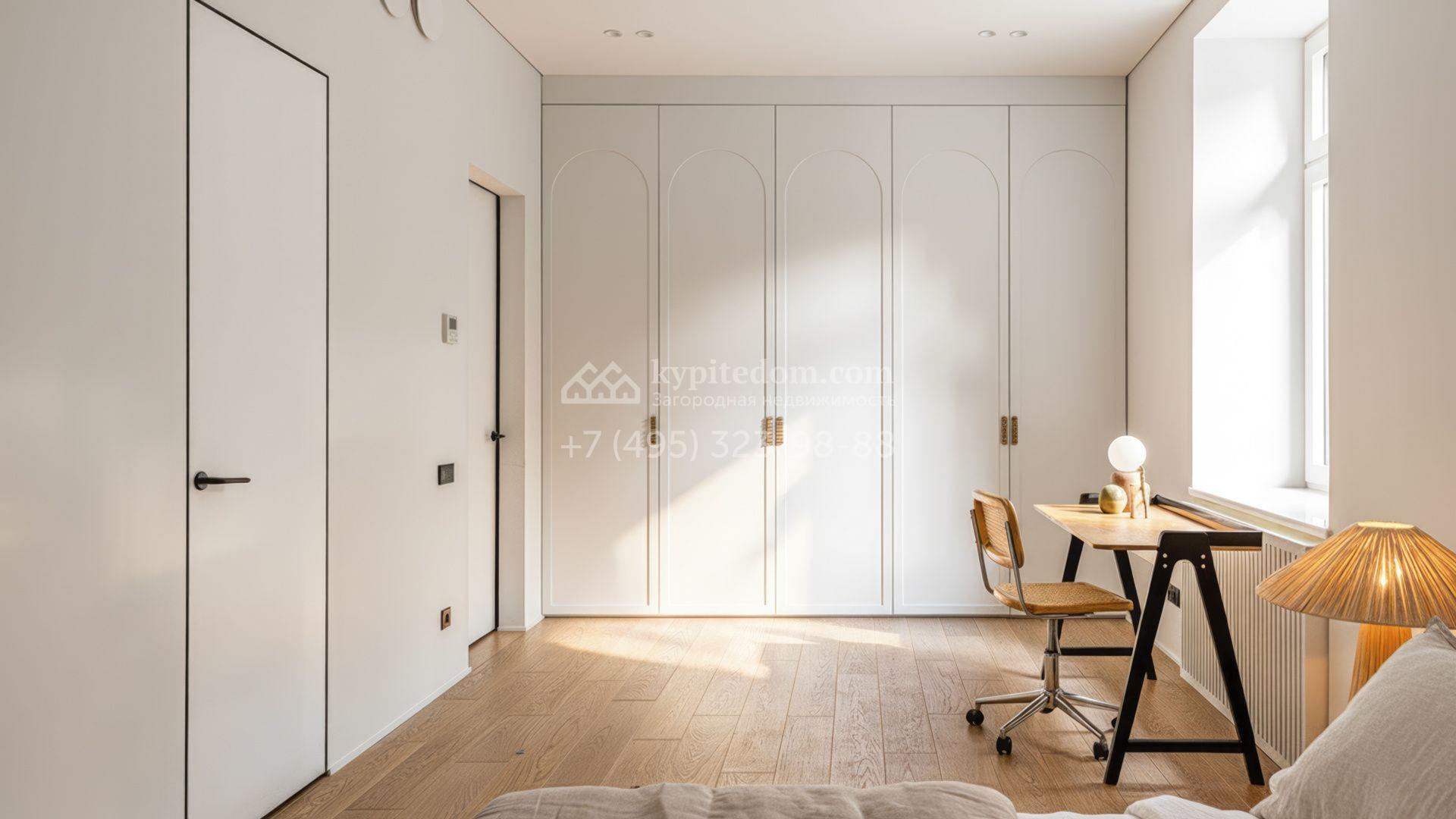Интерьеры выполнены под ключ в скандинавском стиле. Светлая палитра, мебель из массива дуба и лаконичные акценты создают ощущение простора и естественного уюта. В отделке использованы подоконники из чёрного гранита и полы из травертина, дополненные декоративными панно.
