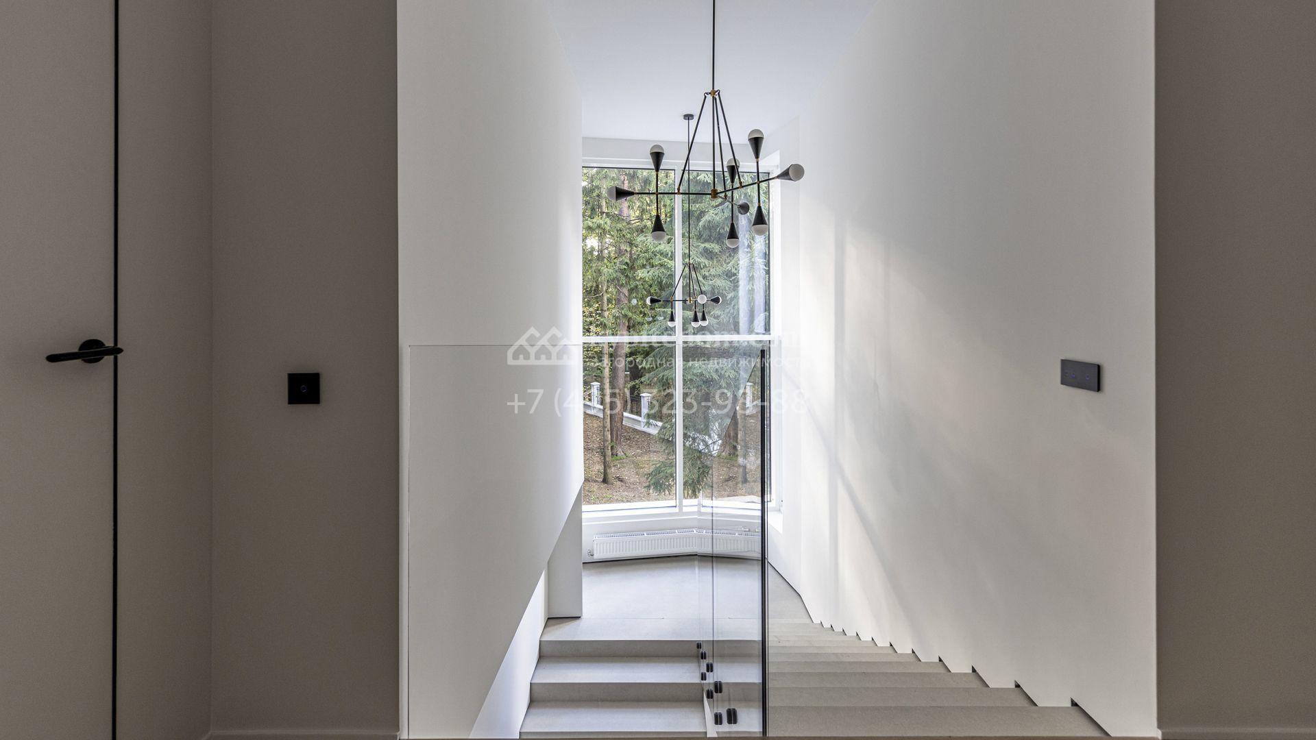 На территории устроены две террасы для отдыха на свежем воздухе. Рядом расположены парковочная площадка, гараж на два автомобиля и отдельный дом для персонала. Пространство вокруг резиденции позволяет обустроить патио, летнюю кухню или костровую площадку — место, где можно насладиться тишиной, наполненной ароматом хвои.