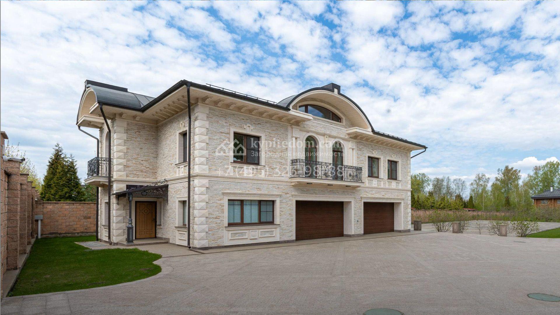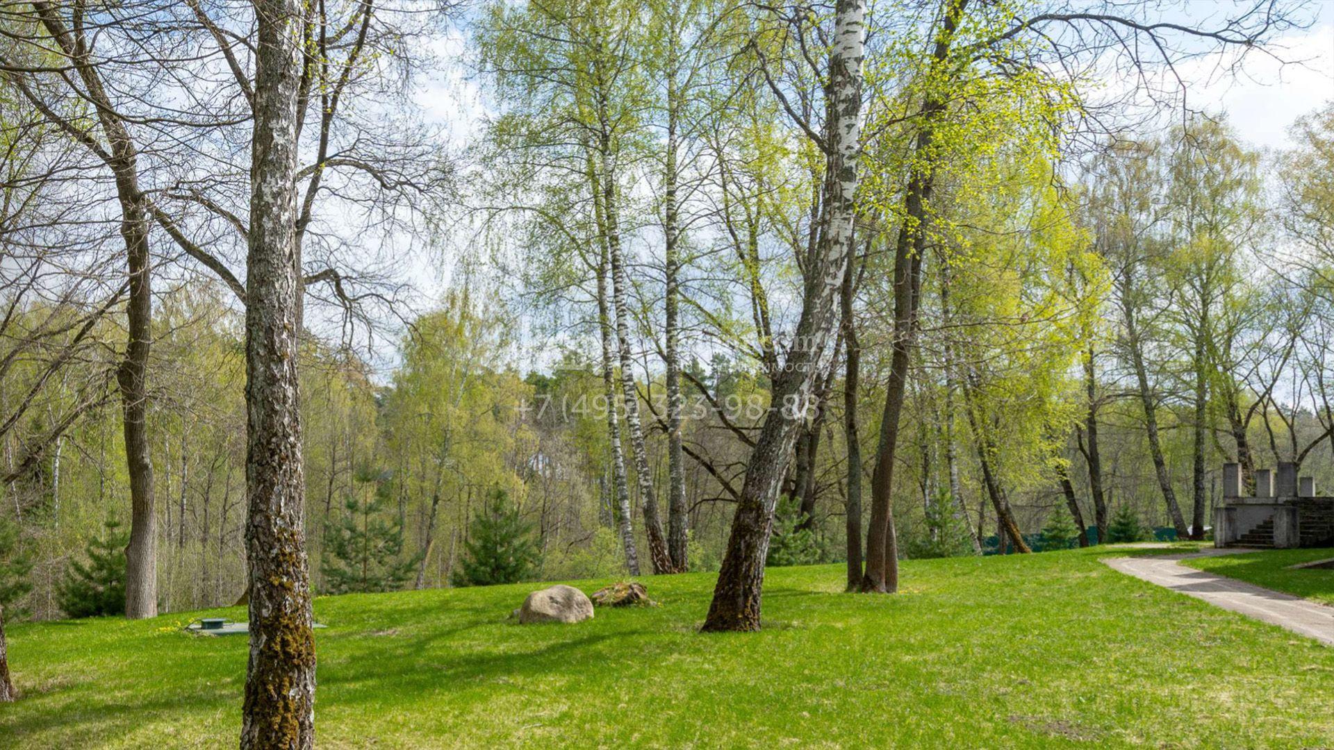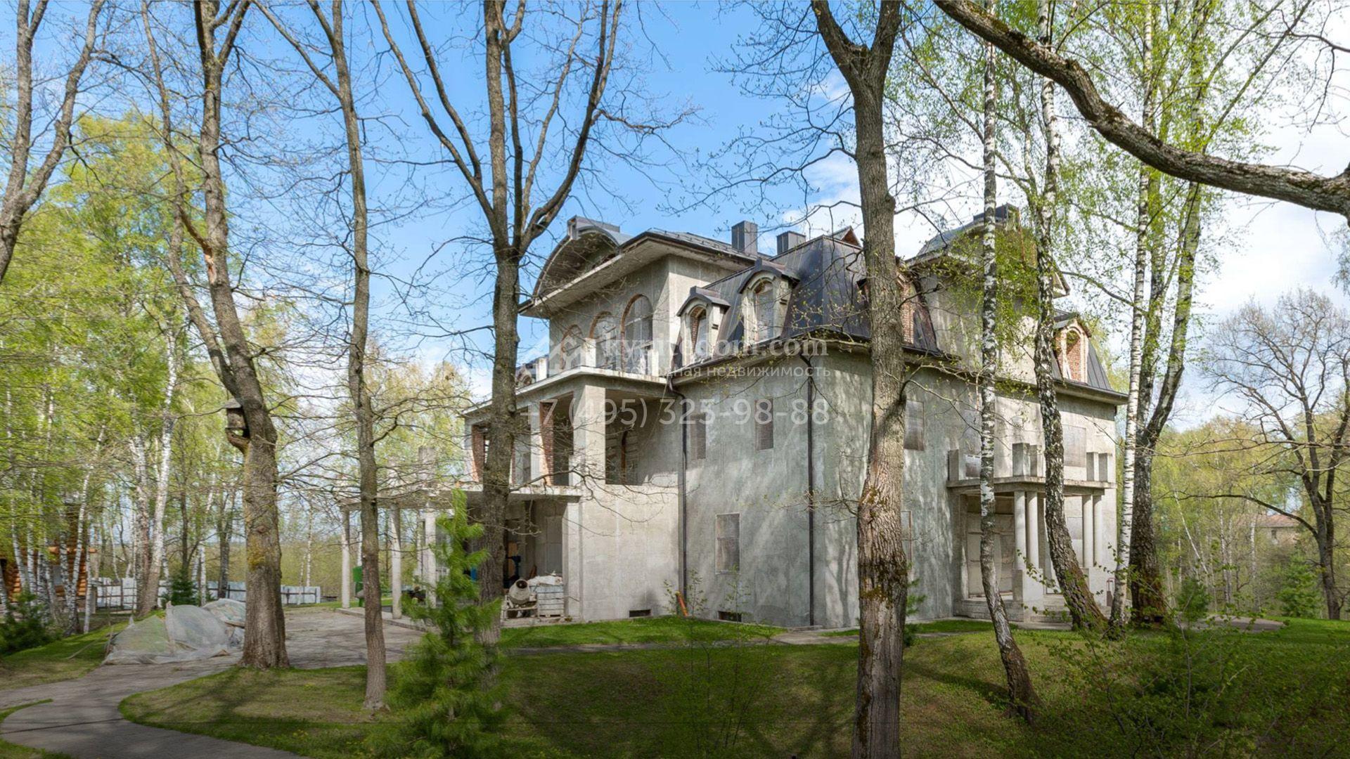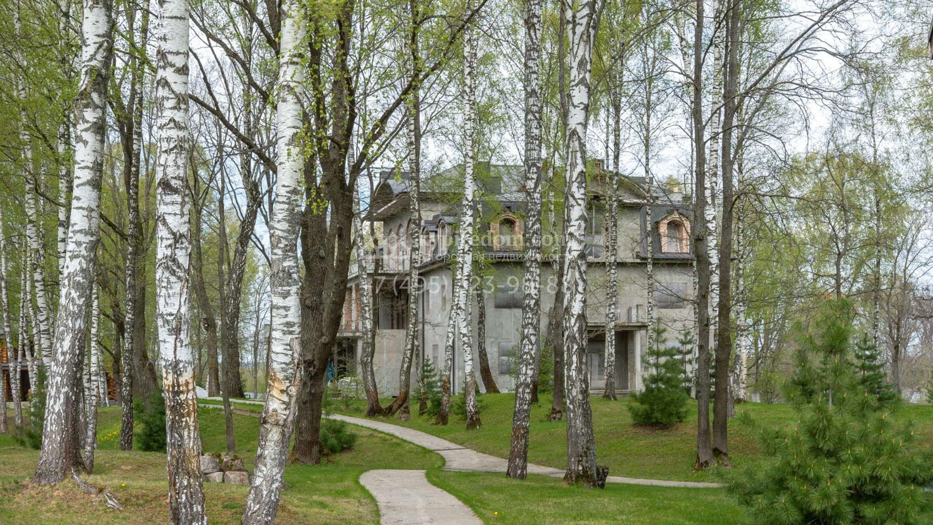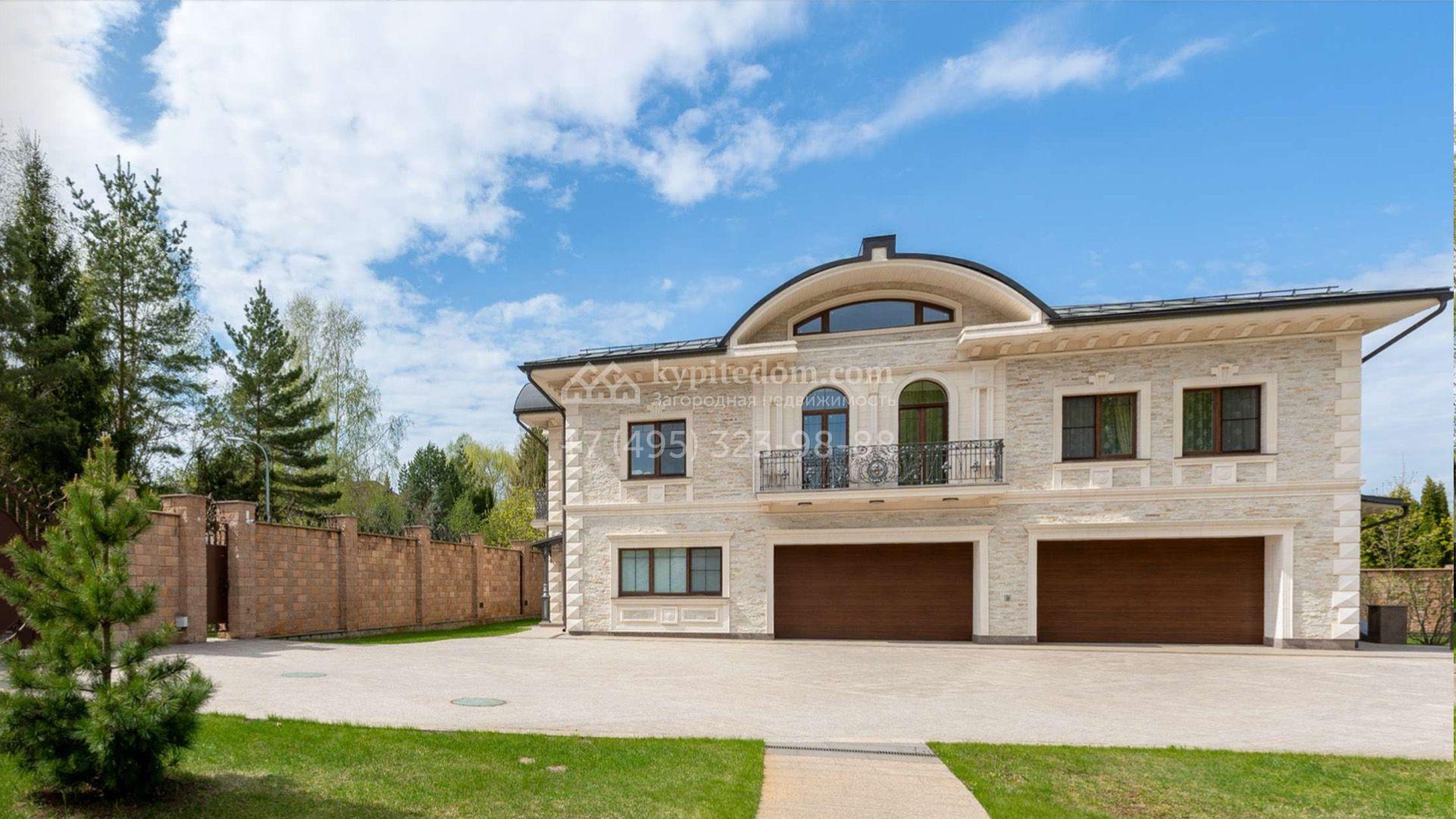 Просторная резиденция в классическом стиле площадью 2350 м² расположена на участке 130 соток с выходом к Москве-реке. На первом этаже особняка спланировали кинозал и спа-центр с бассейном, тренажерным залом и косметическим кабинетом. На второй этаж можно подняться на лифте, где разместили 7 спальных блоков с персональными гостиными и санузлами. На территории построен отдельный двухэтажный дом для персонала площадью 330 м² с гаражом на 4 машины, а также деревянный гостевой дом с банным комплексом площадью 495 м². На участке выполнен ландшафтный дизайн, высажены плодовые и хвойные деревья, залита площадка под футбольное поле.