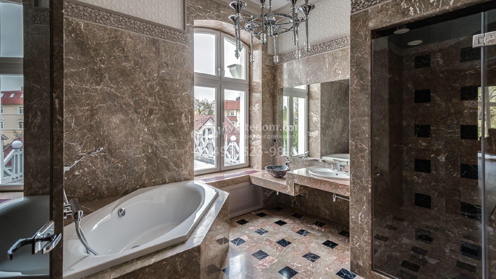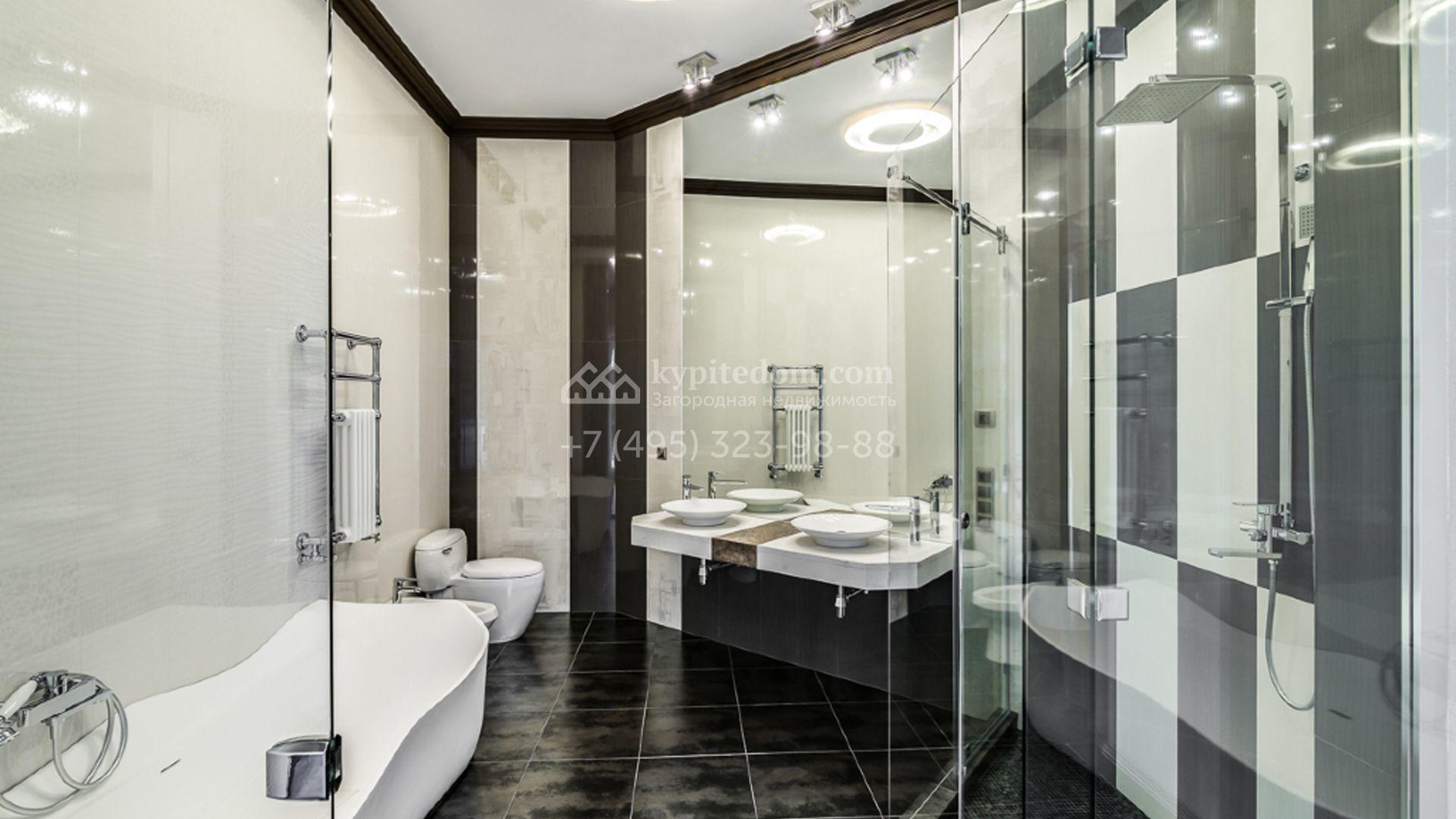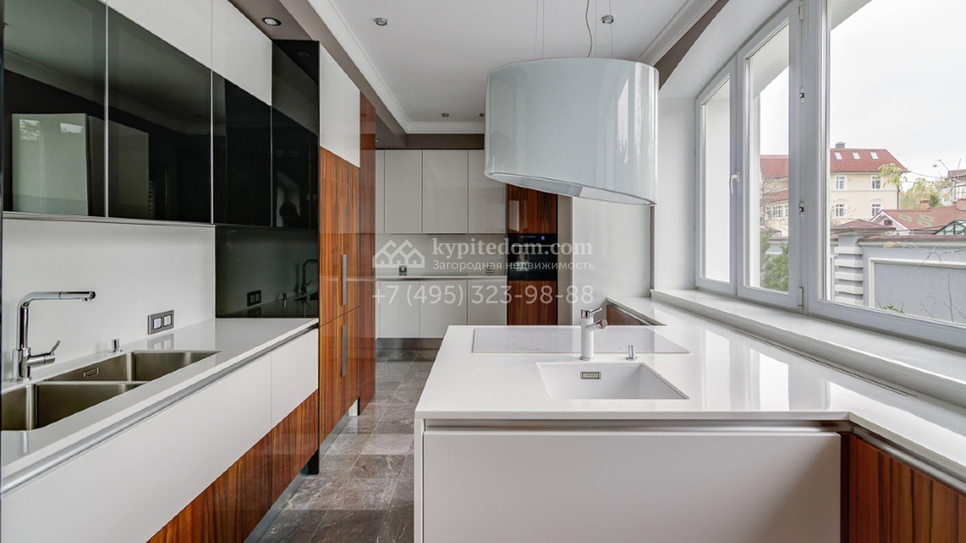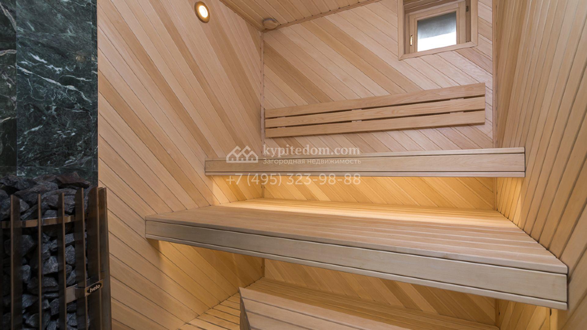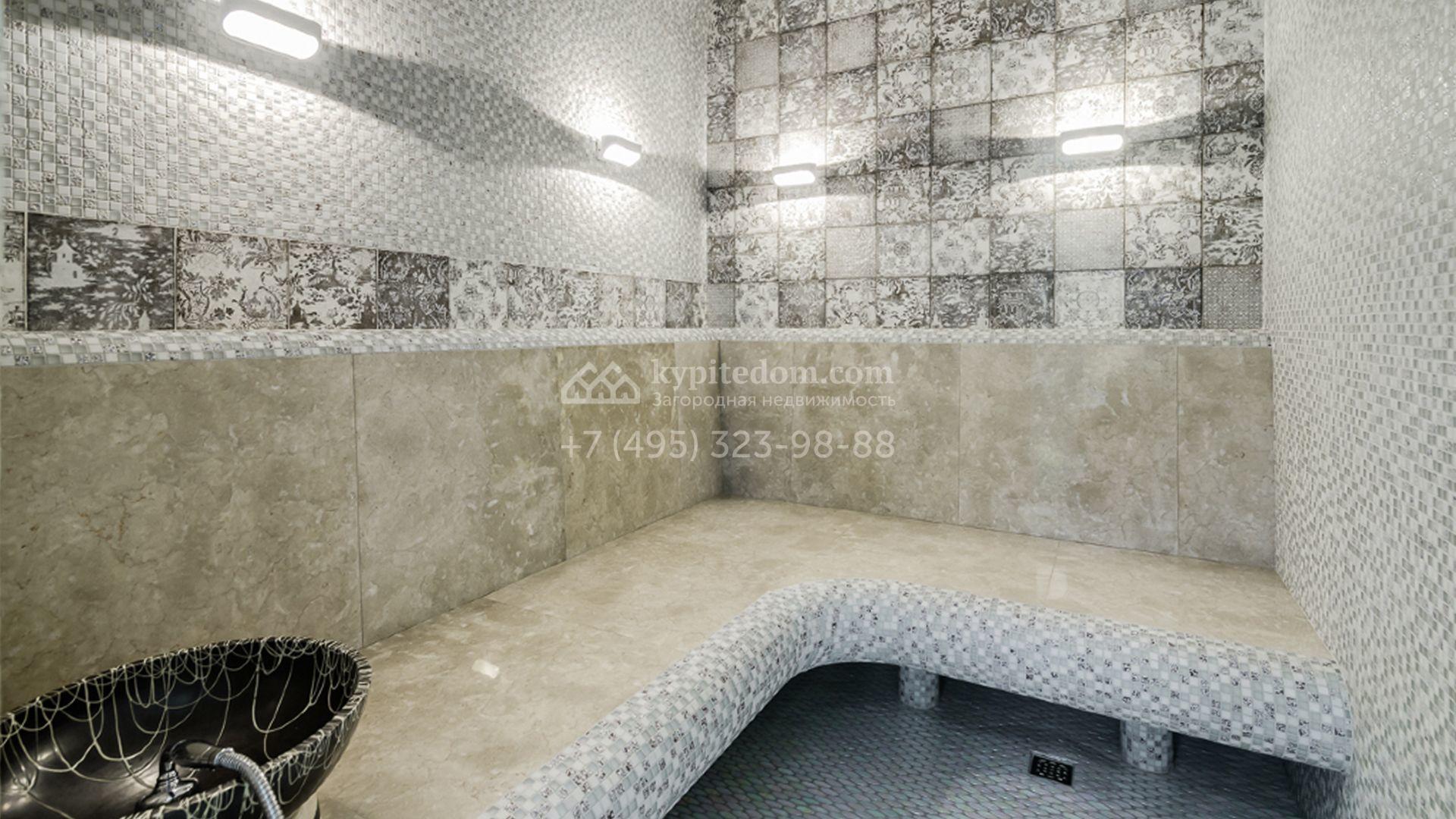 Загородный особняк площадью 1400 м² построен на полевом участке 25 соток. Фасад облицован штукатуркой василькового цвета, декорирован белыми элементами и коричневым клинкерным кирпичом. В отделке светлого интерьера использованы орнаменты, фактура дерева и камня. В доме разместили 5 спален, просторную гостиную с камином, кухню, столовую и кабинет. Расслабиться в свободное время можно в SPA-зоне с бассейном, сауной и баней. На участке выполнен ландшафтный дизайн, засеян газон и высажены хвойные деревья.