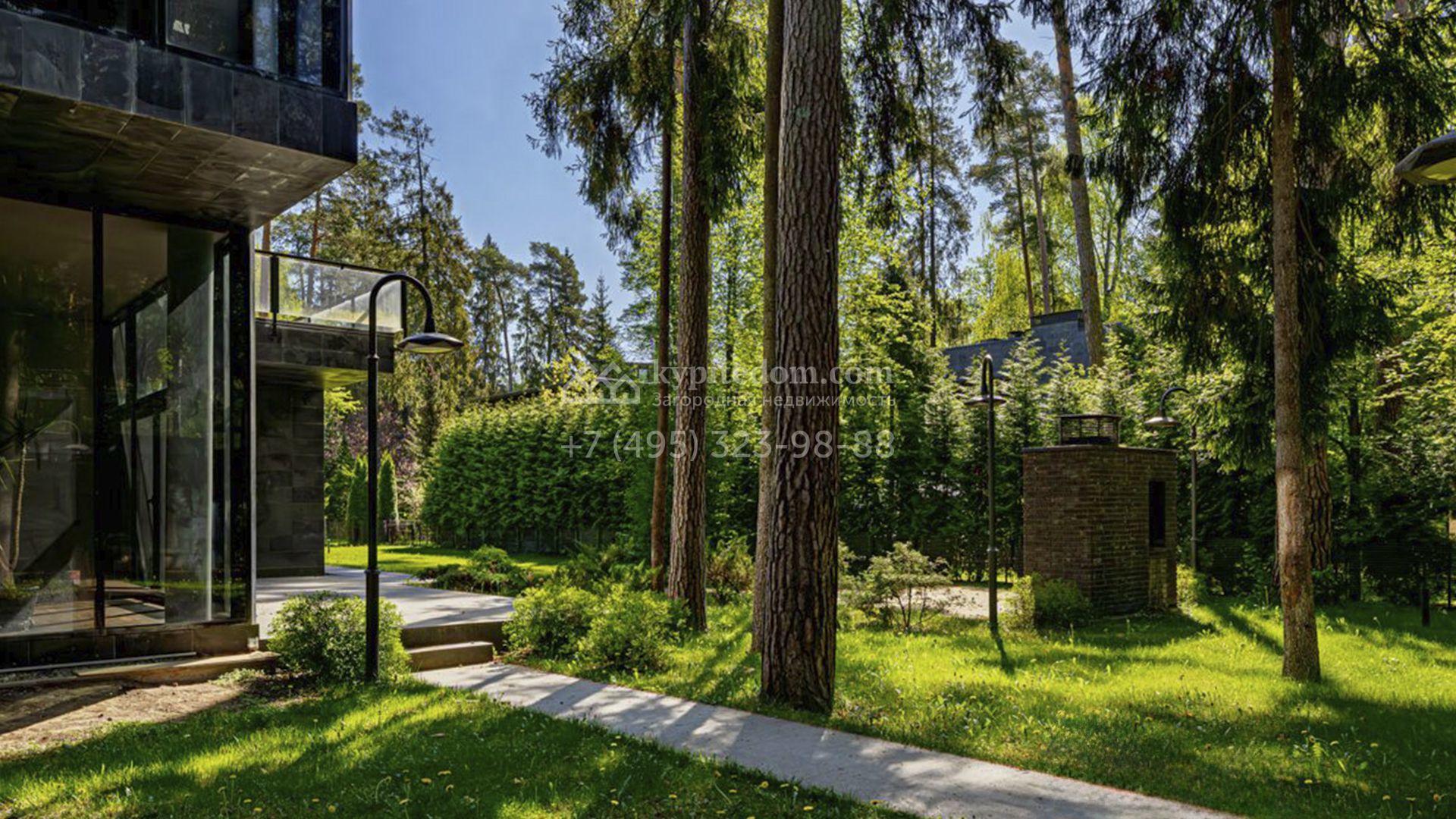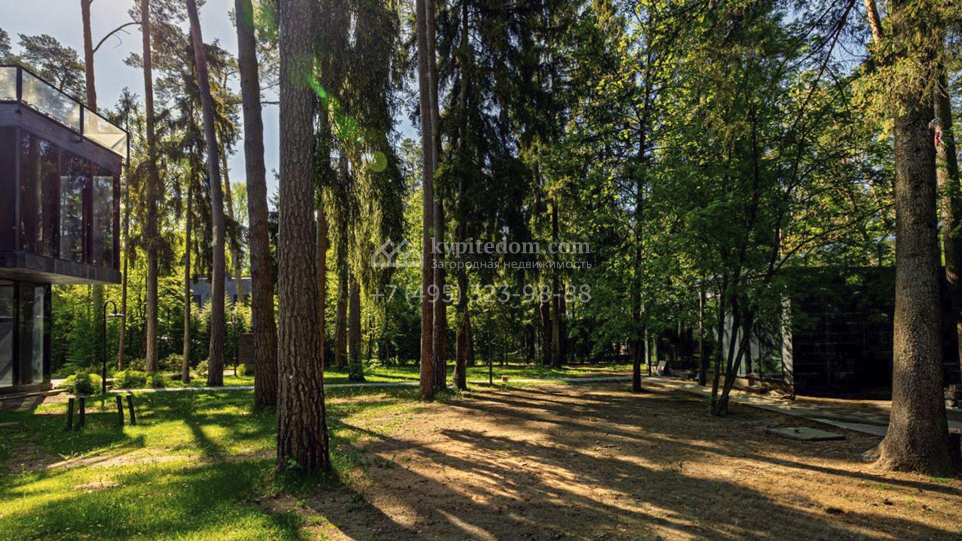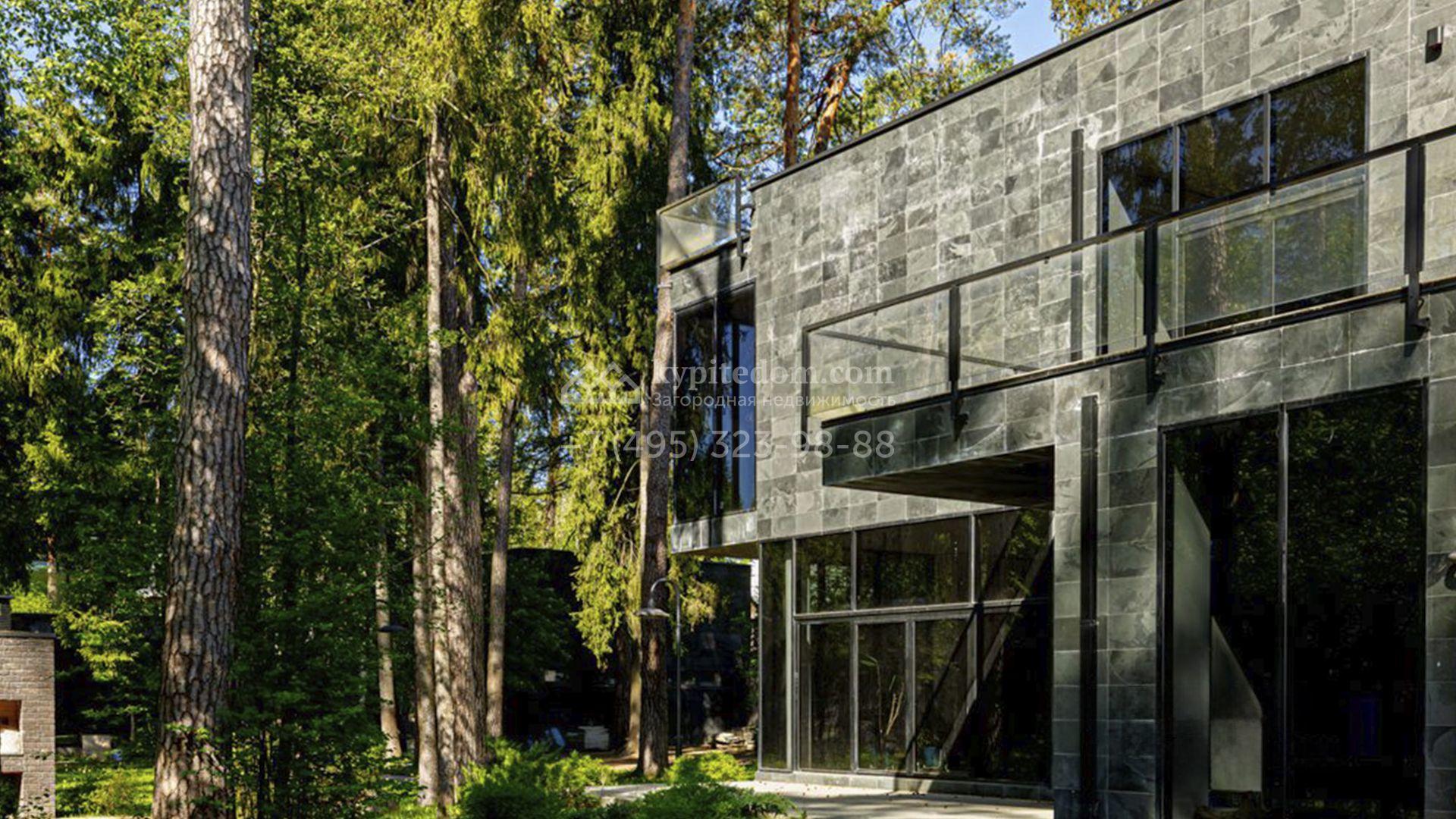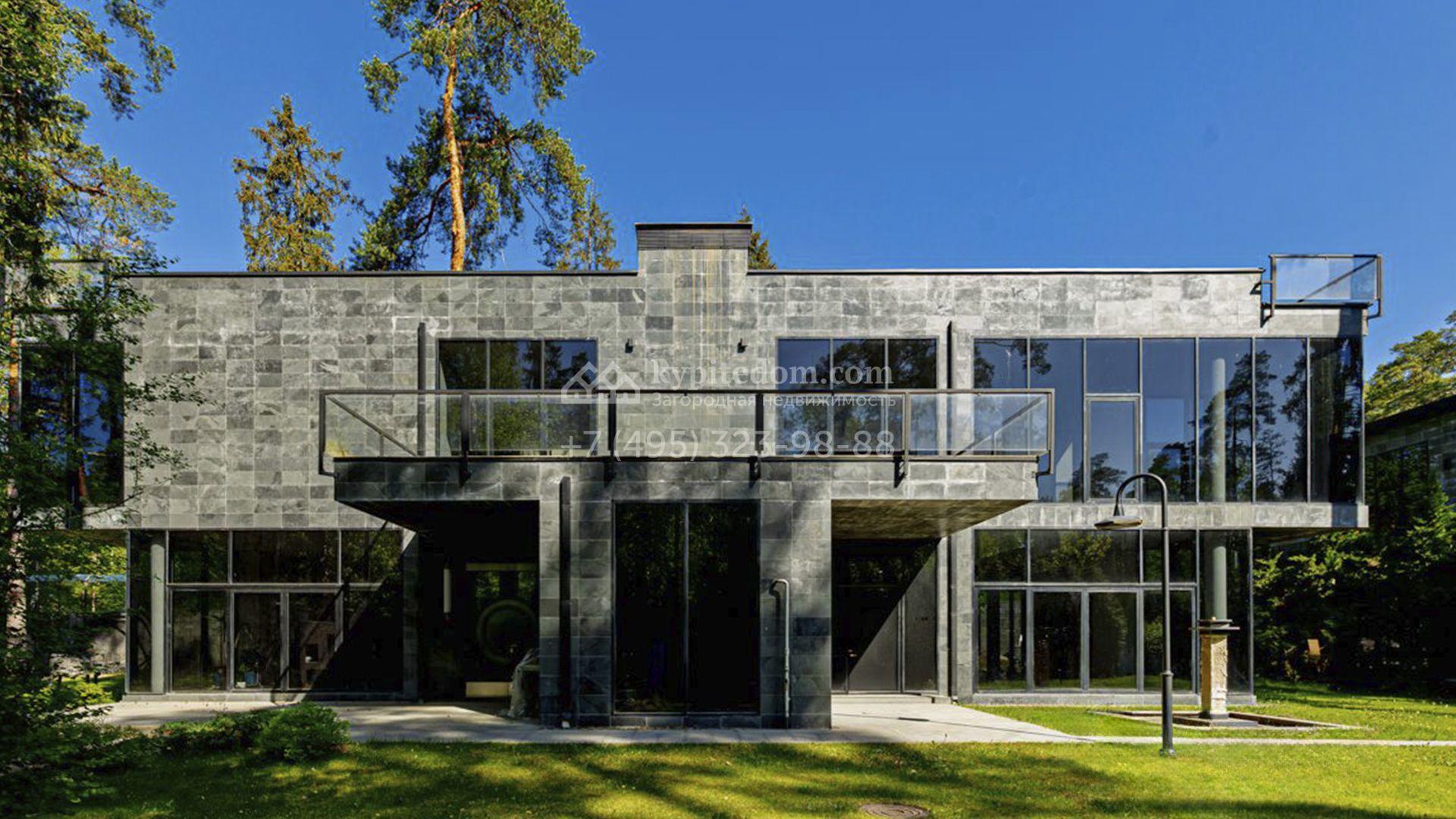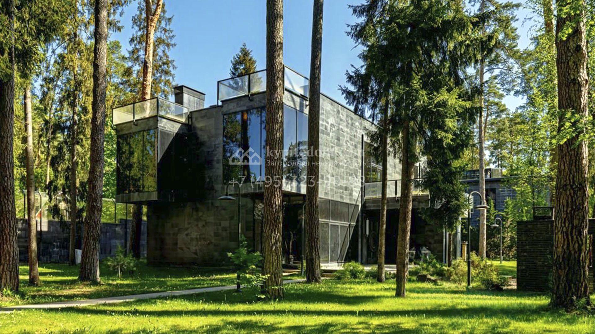 Загородный дом площадью 600 м² построен на просторном участке 25 соток с лесными деревьями. Фасад здания с большими окнами выполнен в современном стиле и облицован под темно-серый камень. В отделке лаконичного интерьера преобладают молочные оттенки. Планировка резиденции включает 4 спальни, гостиную с камином, кухню-столовую и SPA-зону с бассейном и сауной. Из зимнего сада можно попасть на эксплуатируемую кровлю. Рядом расположили дом для персонала, предусмотрены два гаража на 1 и 3 машины. На участке, огороженном высоким забором с шумозащитным экраном, обустроены дорожки и установлено уличное освещение.