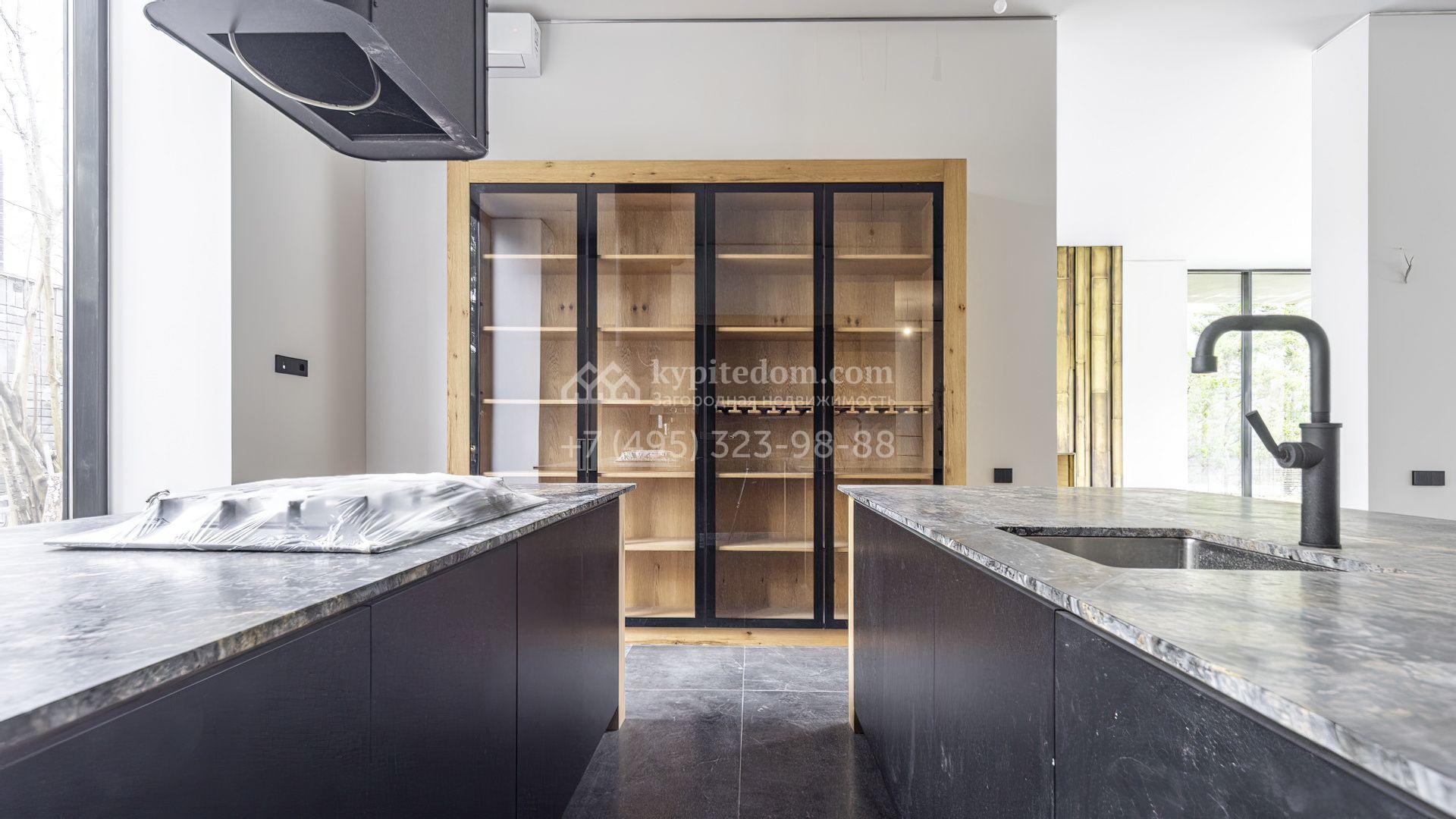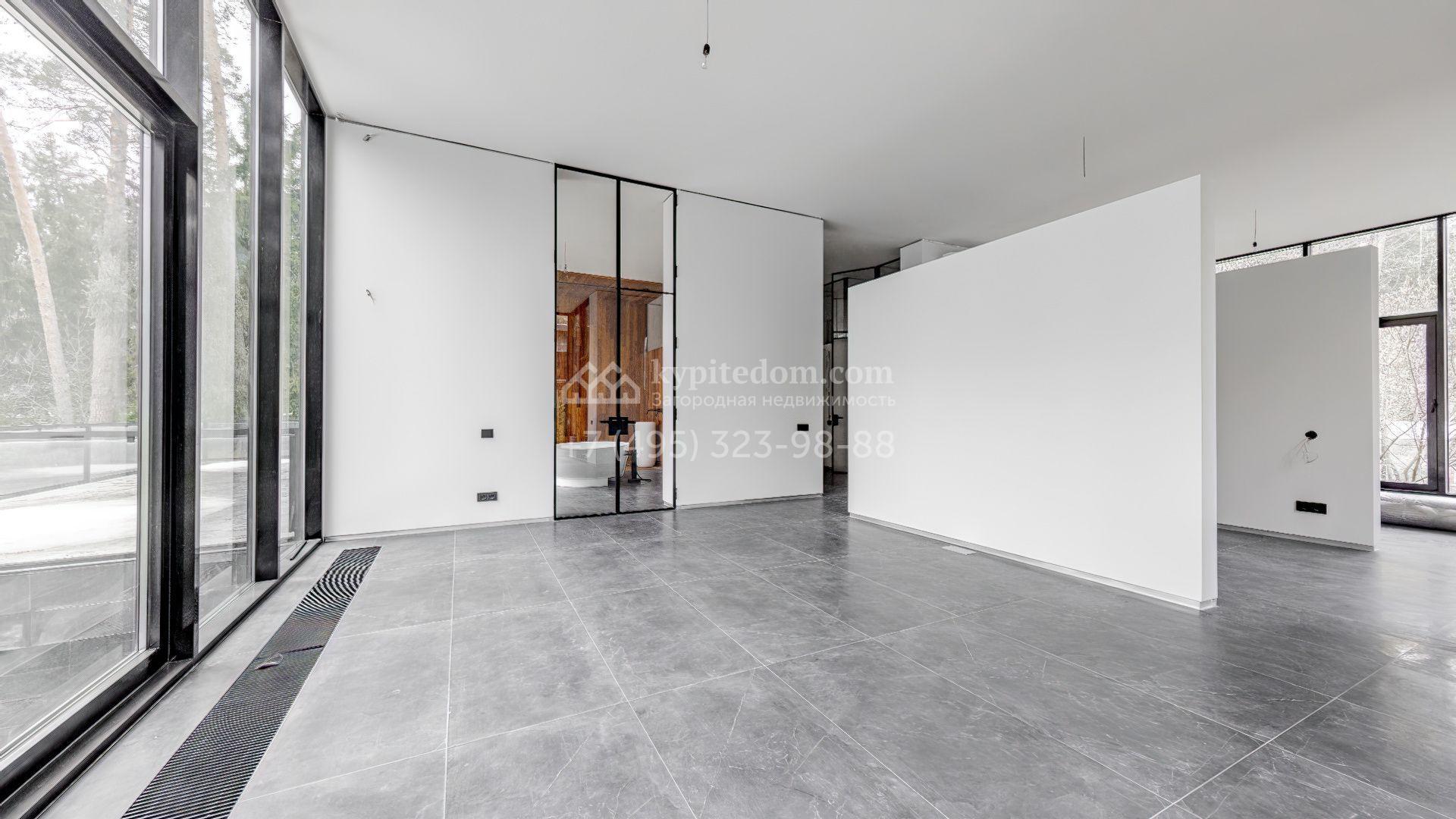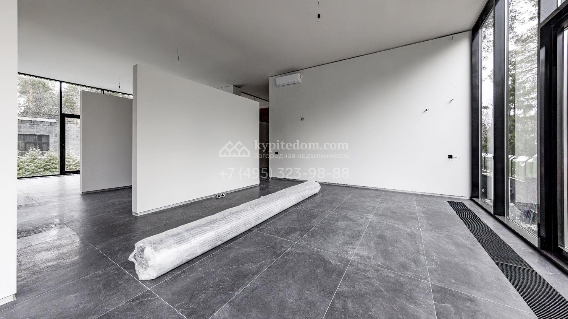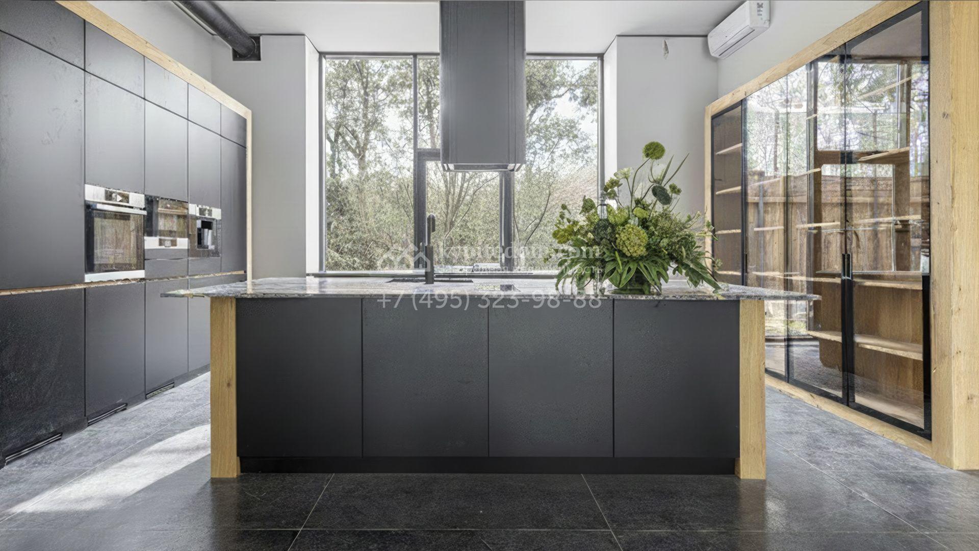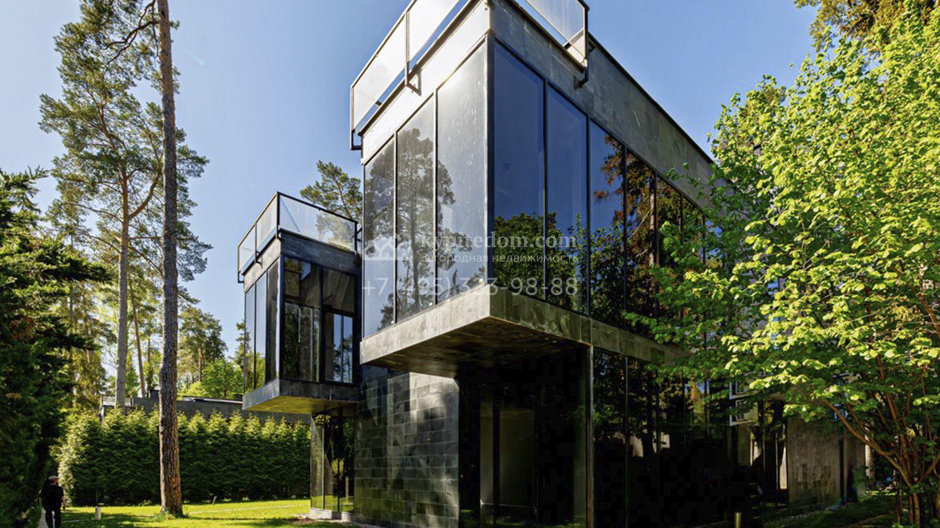 Загородный дом площадью 600 м² построен на просторном участке 25 соток с лесными деревьями. Фасад здания с большими окнами выполнен в современном стиле и облицован под темно-серый камень. В отделке лаконичного интерьера преобладают молочные оттенки. Планировка резиденции включает 4 спальни, гостиную с камином, кухню-столовую и SPA-зону с бассейном и сауной. Из зимнего сада можно попасть на эксплуатируемую кровлю. Рядом расположили дом для персонала, предусмотрены два гаража на 1 и 3 машины. На участке, огороженном высоким забором с шумозащитным экраном, обустроены дорожки и установлено уличное освещение.