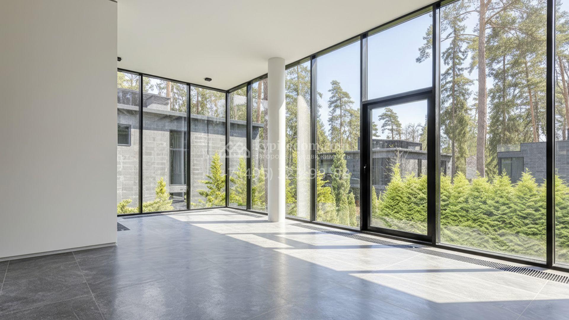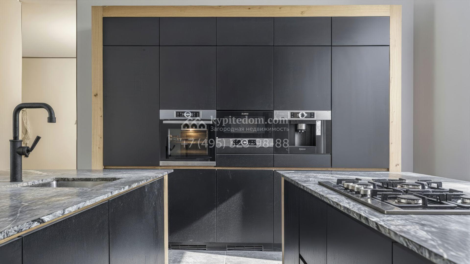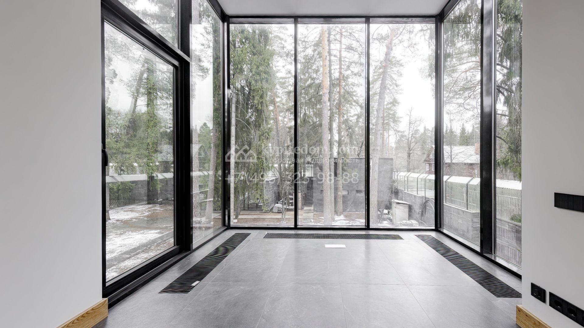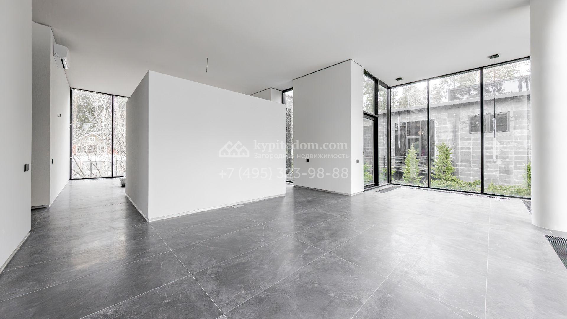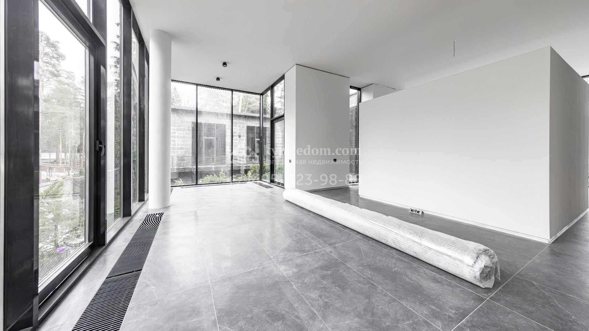 Загородный дом площадью 600 м² построен на просторном участке 25 соток с лесными деревьями. Фасад здания с большими окнами выполнен в современном стиле и облицован под темно-серый камень. В отделке лаконичного интерьера преобладают молочные оттенки. Планировка резиденции включает 4 спальни, гостиную с камином, кухню-столовую и SPA-зону с бассейном и сауной. Из зимнего сада можно попасть на эксплуатируемую кровлю. Рядом расположили дом для персонала, предусмотрены два гаража на 1 и 3 машины. На участке, огороженном высоким забором с шумозащитным экраном, обустроены дорожки и установлено уличное освещение.