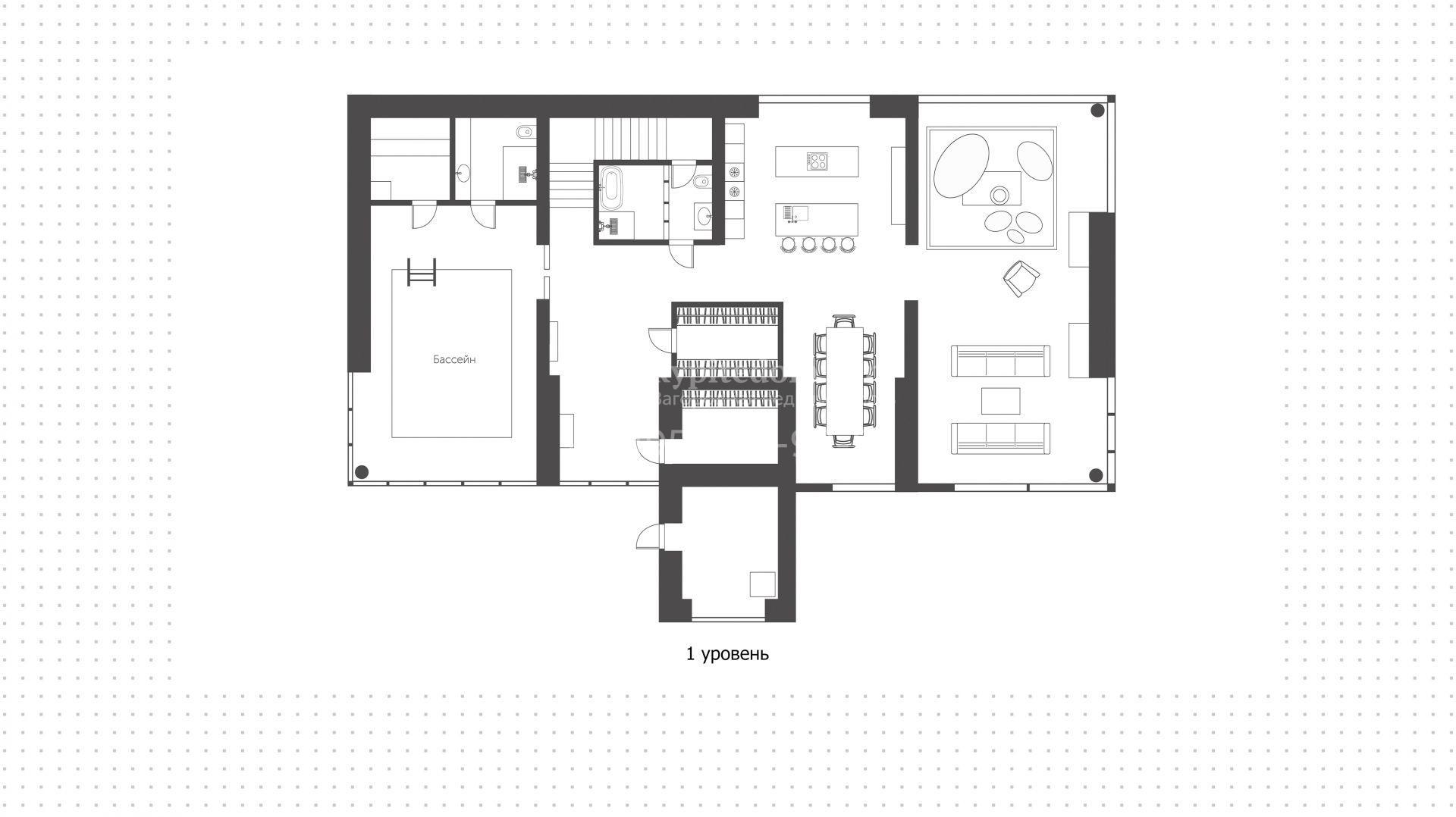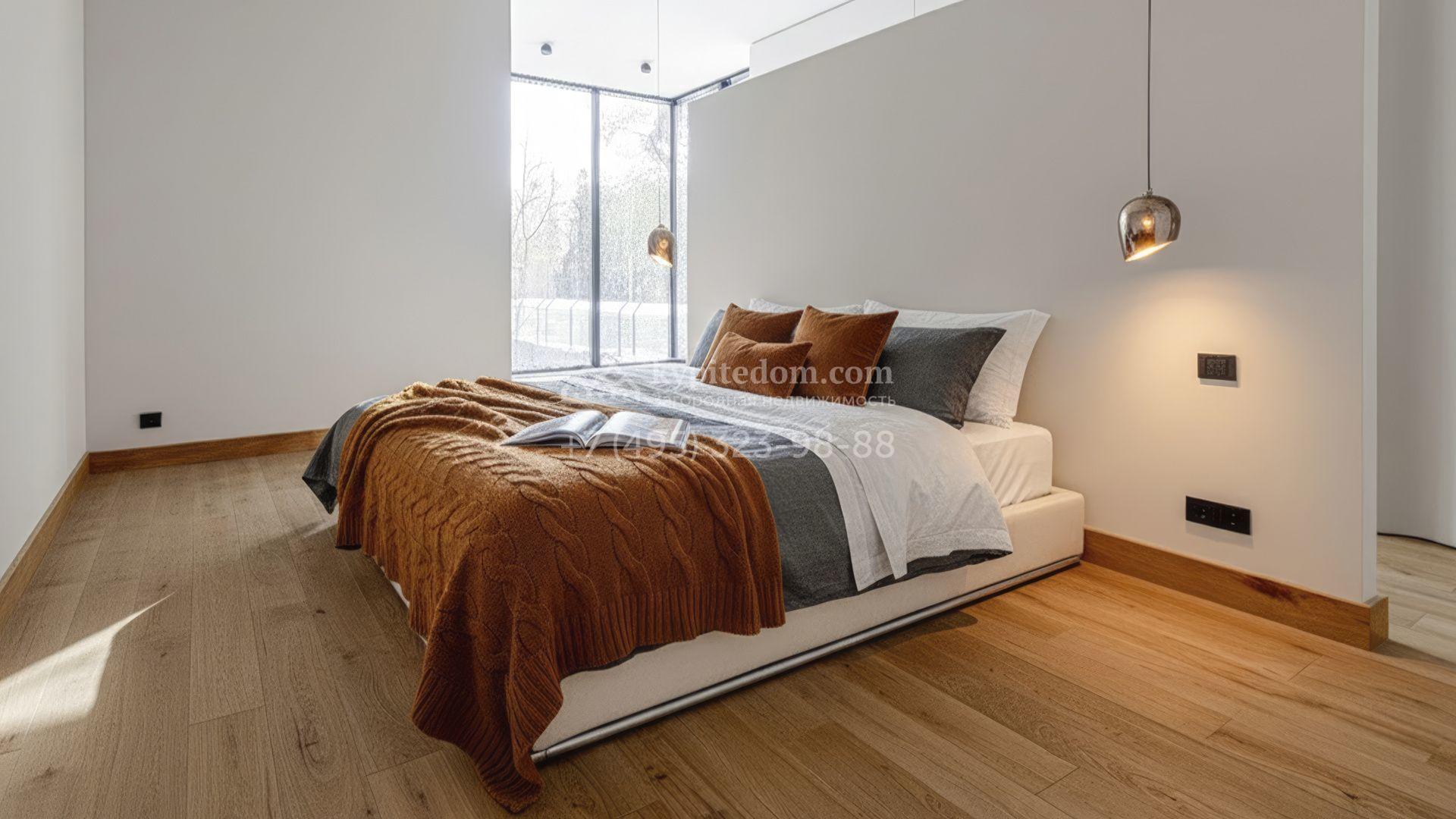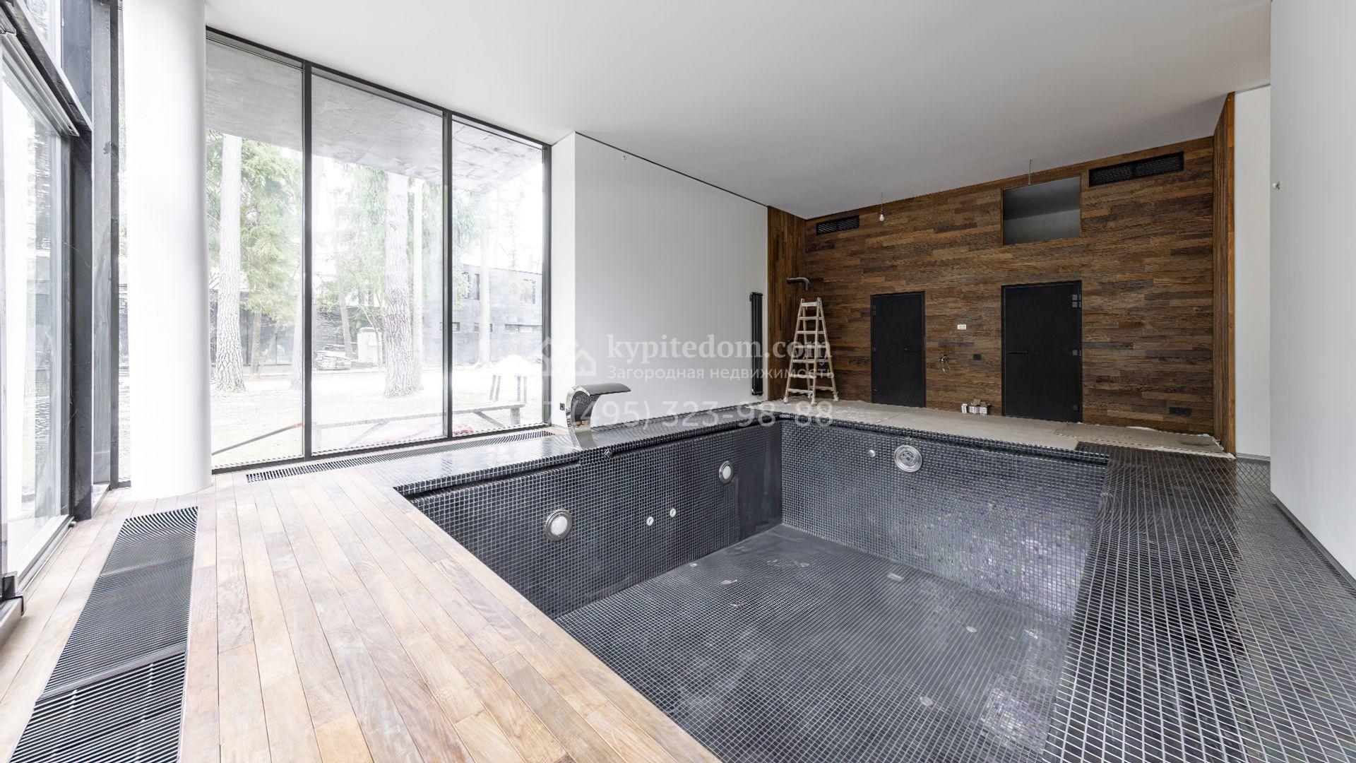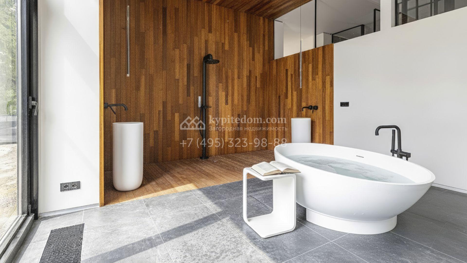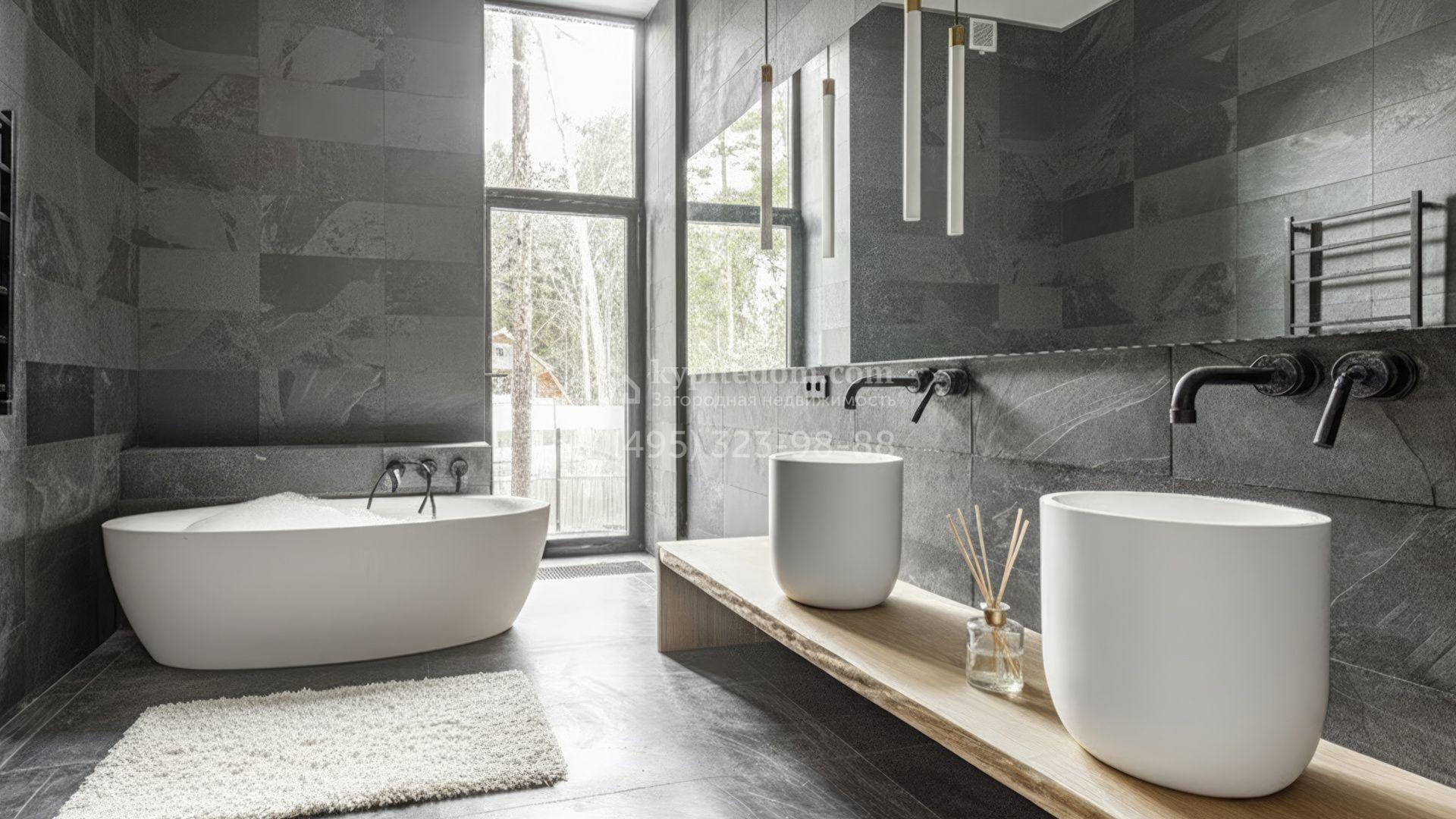 Загородный дом площадью 600 м² построен на просторном участке 25 соток с лесными деревьями. Фасад здания с большими окнами выполнен в современном стиле и облицован под темно-серый камень. В отделке лаконичного интерьера преобладают молочные оттенки. Планировка резиденции включает 4 спальни, гостиную с камином, кухню-столовую и SPA-зону с бассейном и сауной. Из зимнего сада можно попасть на эксплуатируемую кровлю. Рядом расположили дом для персонала, предусмотрены два гаража на 1 и 3 машины. На участке, огороженном высоким забором с шумозащитным экраном, обустроены дорожки и установлено уличное освещение.