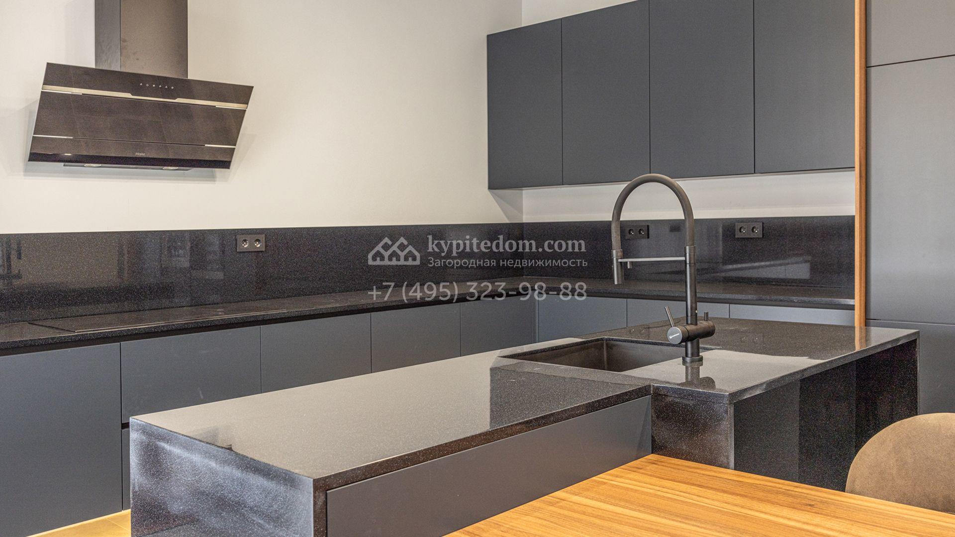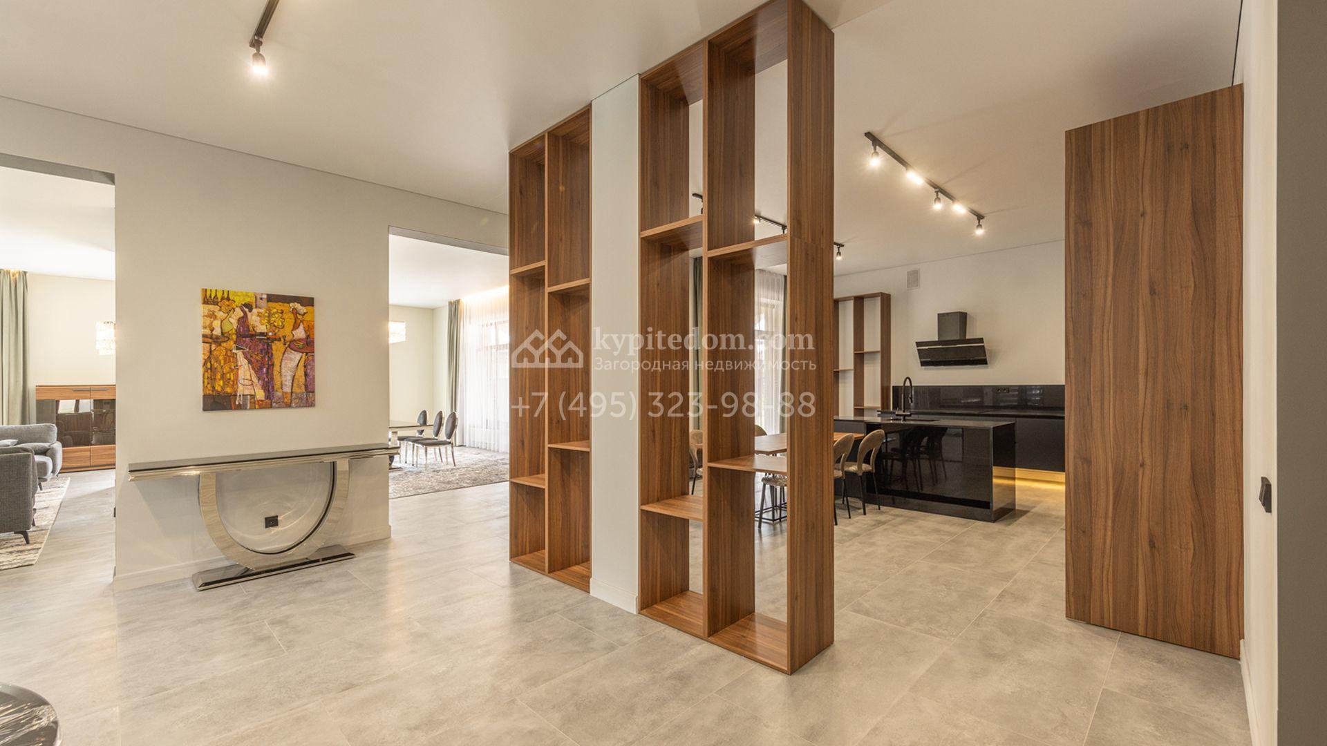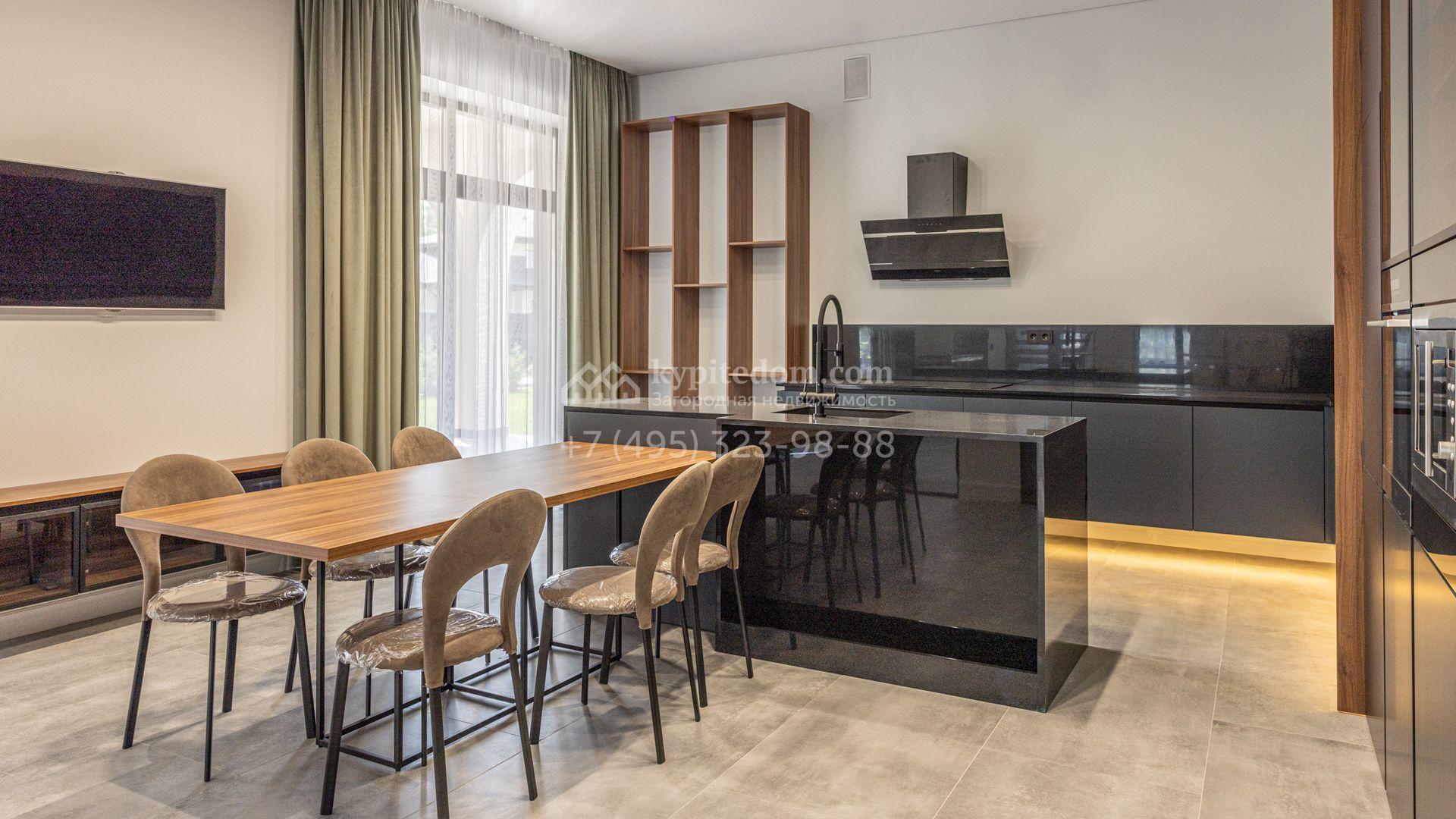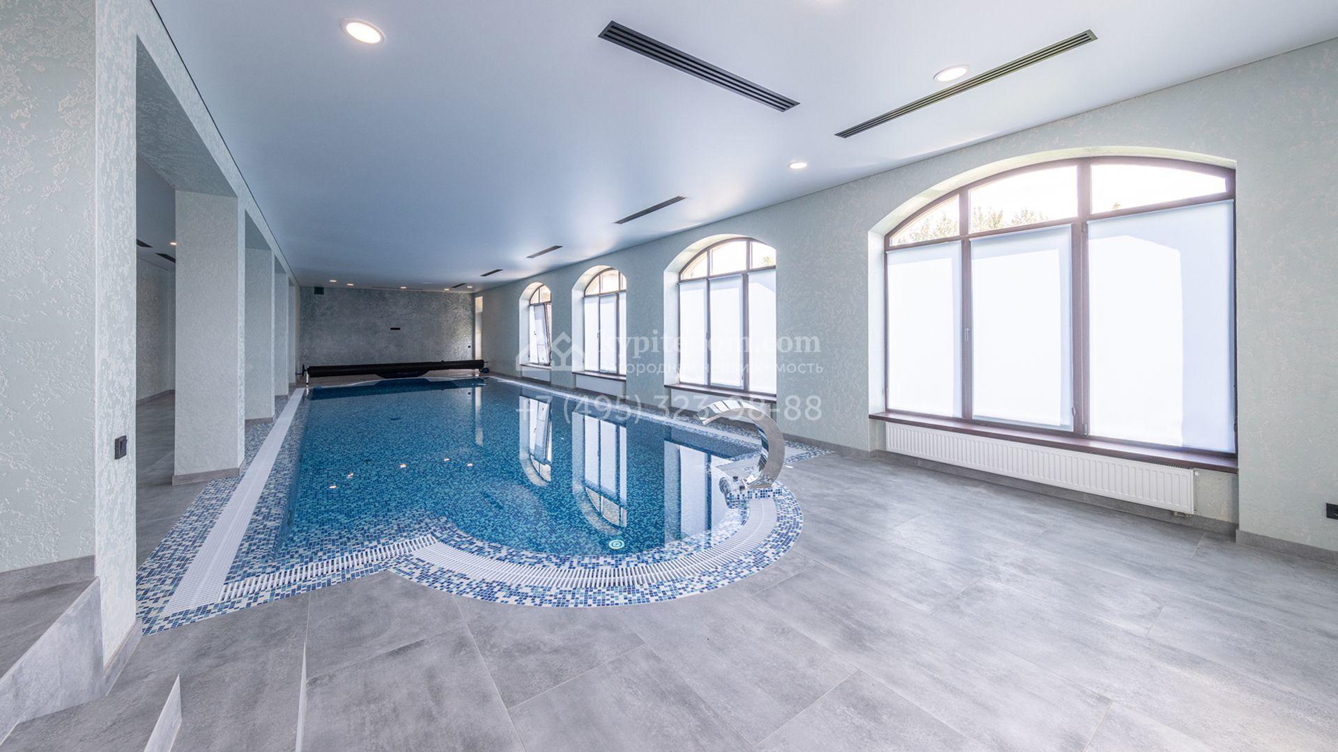 Загородный особняк площадью 1327 м² построен на просторном полевом участке 24 сотки. Фасад здания в итальянском стиле облицован светлой штукатуркой и декорирован колоннами, подсветкой и коваными элементами. В отделке лаконичного интерьера преобладают серые и бежевые оттенки в сочетании с фактурой камня и дерева. Планировка резиденции включает 7 спален, уютную гостиную с камином, открытую кухню, столовую, кабинет, сауну с зоной отдыха, тренажерный зал и переливной бассейн длиной 15 метров. На террасе обустроена зона барбекю. Рядом расположен гараж на 3 машины с мойкой, на втором этаже которого предусмотрена двухкомнатная квартира для персонала. На участке выполнены ландшафтный дизайн и дренажные работы, установлена система автоматического полива, по периметру высажены туи.