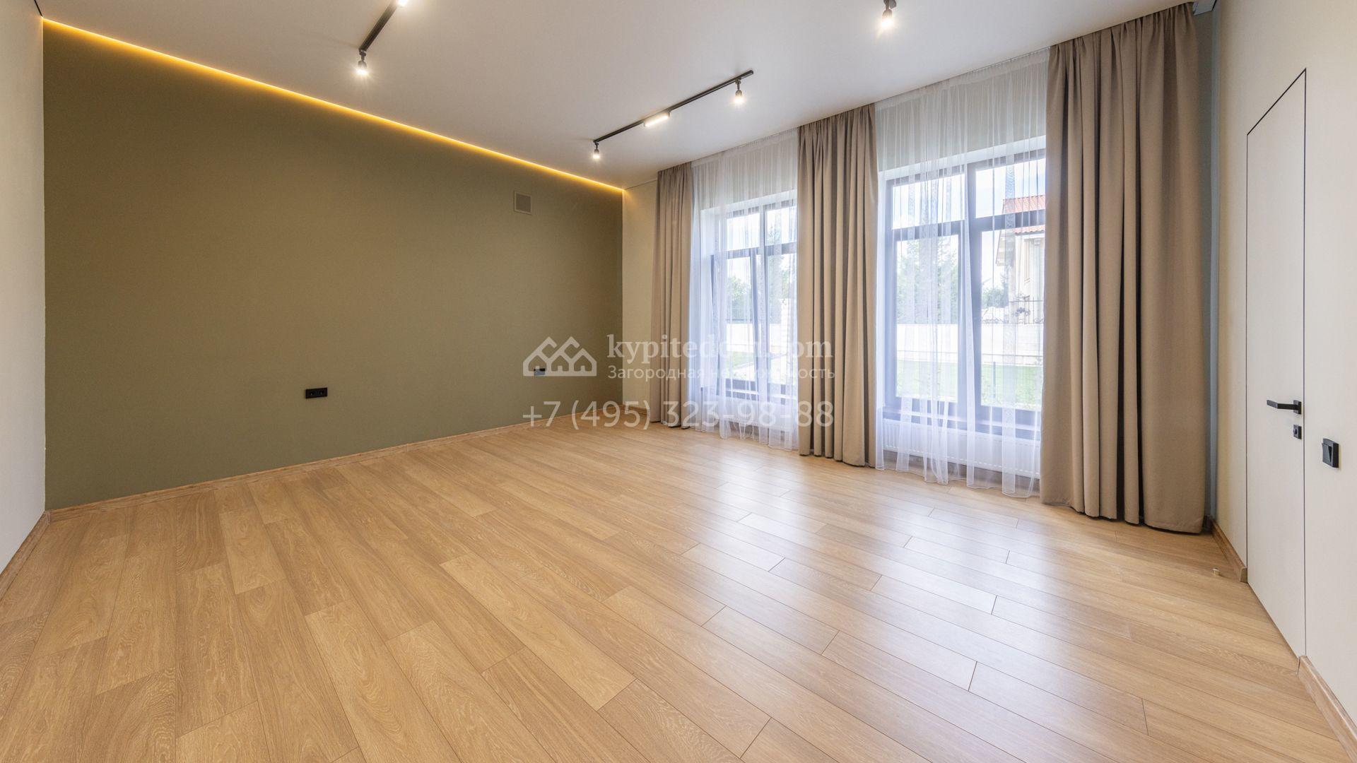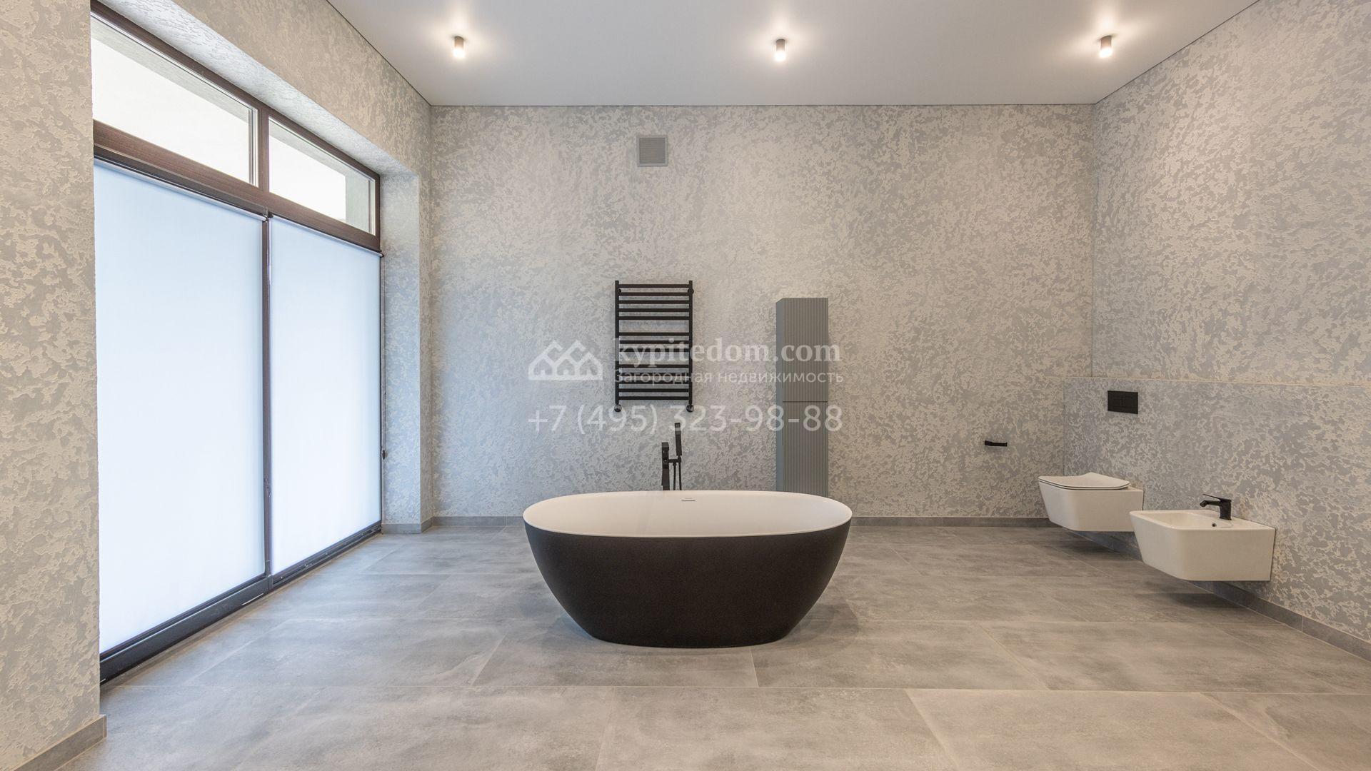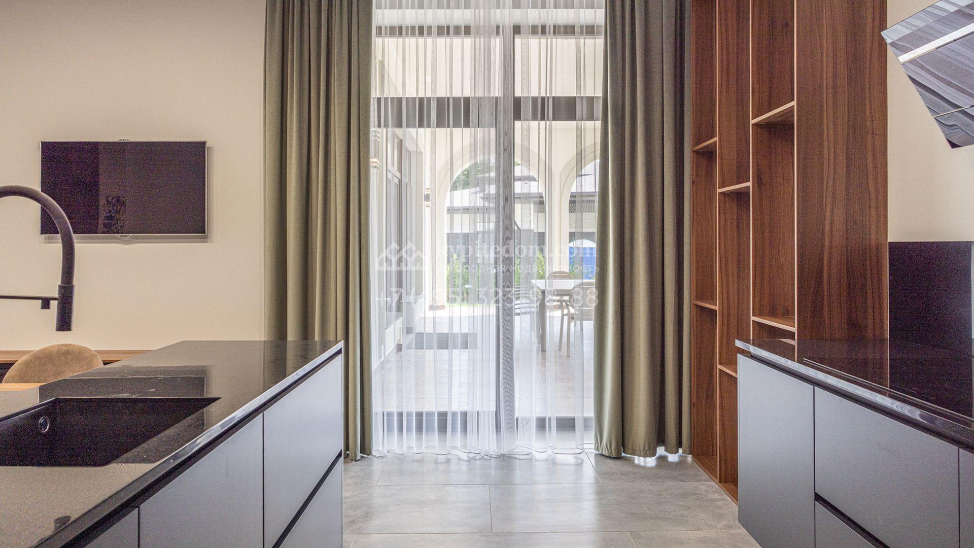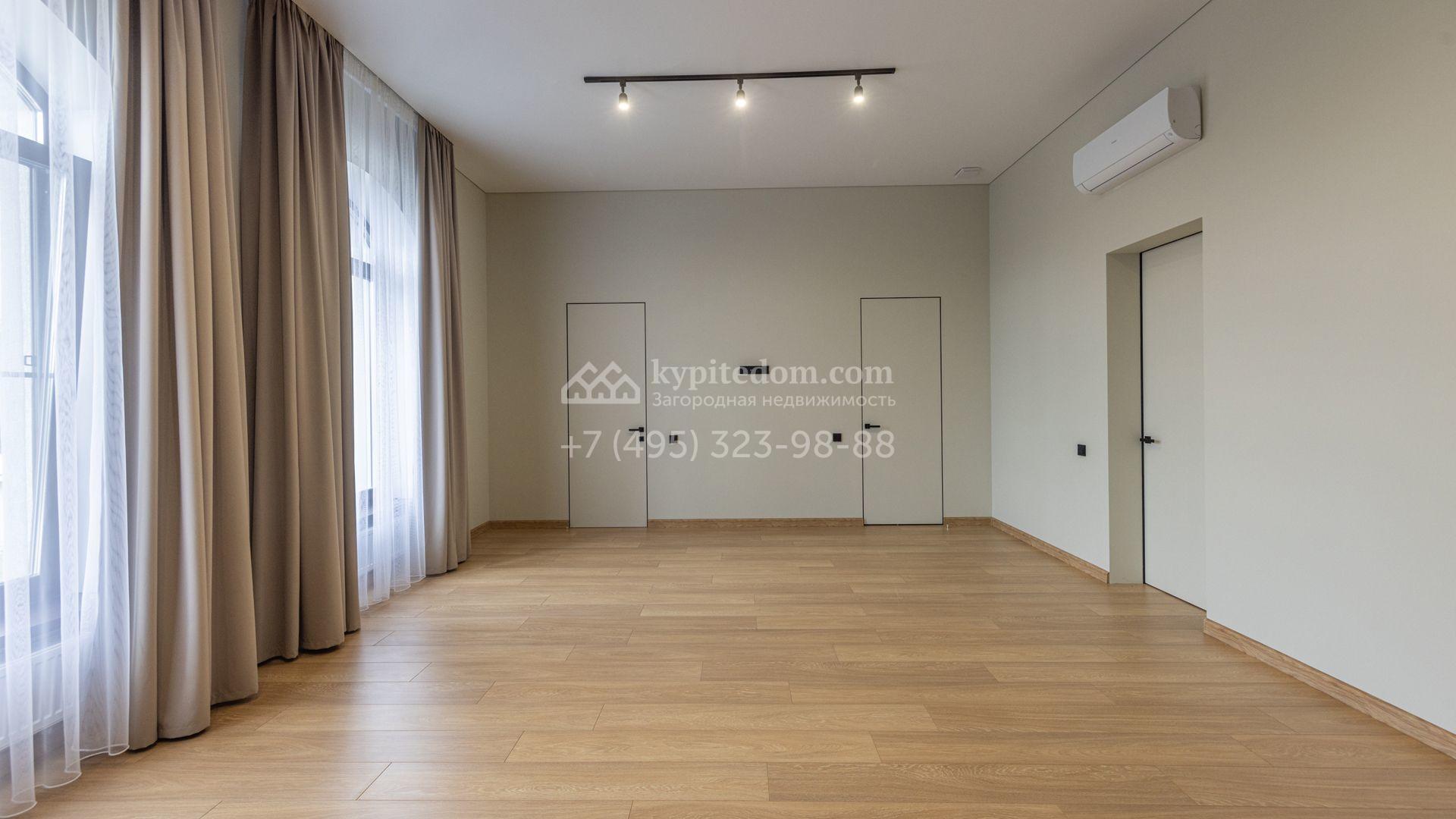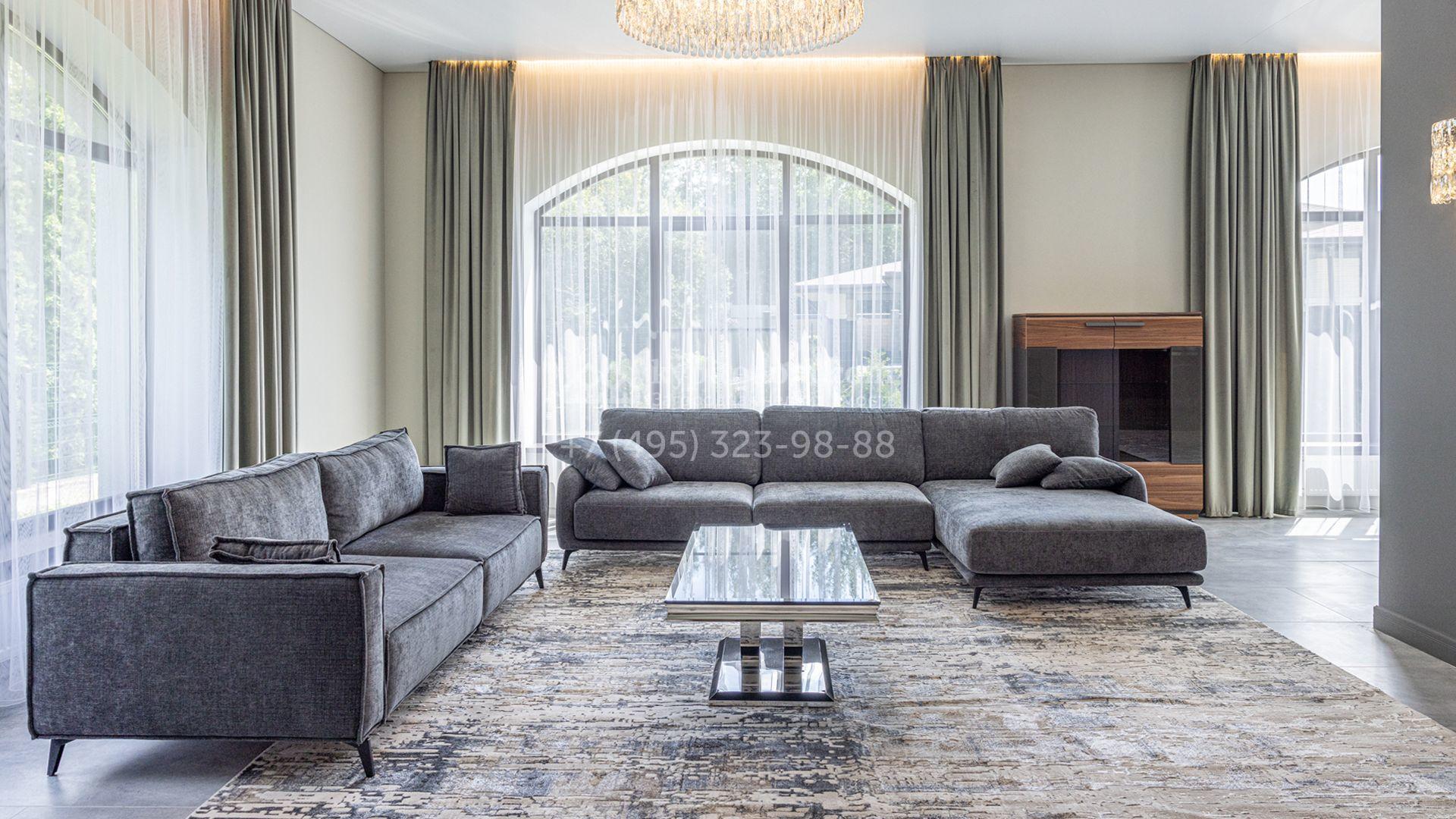 Загородный особняк площадью 1327 м² построен на просторном полевом участке 24 сотки. Фасад здания в итальянском стиле облицован светлой штукатуркой и декорирован колоннами, подсветкой и коваными элементами. В отделке лаконичного интерьера преобладают серые и бежевые оттенки в сочетании с фактурой камня и дерева. Планировка резиденции включает 7 спален, уютную гостиную с камином, открытую кухню, столовую, кабинет, сауну с зоной отдыха, тренажерный зал и переливной бассейн длиной 15 метров. На террасе обустроена зона барбекю. Рядом расположен гараж на 3 машины с мойкой, на втором этаже которого предусмотрена двухкомнатная квартира для персонала. На участке выполнены ландшафтный дизайн и дренажные работы, установлена система автоматического полива, по периметру высажены туи.