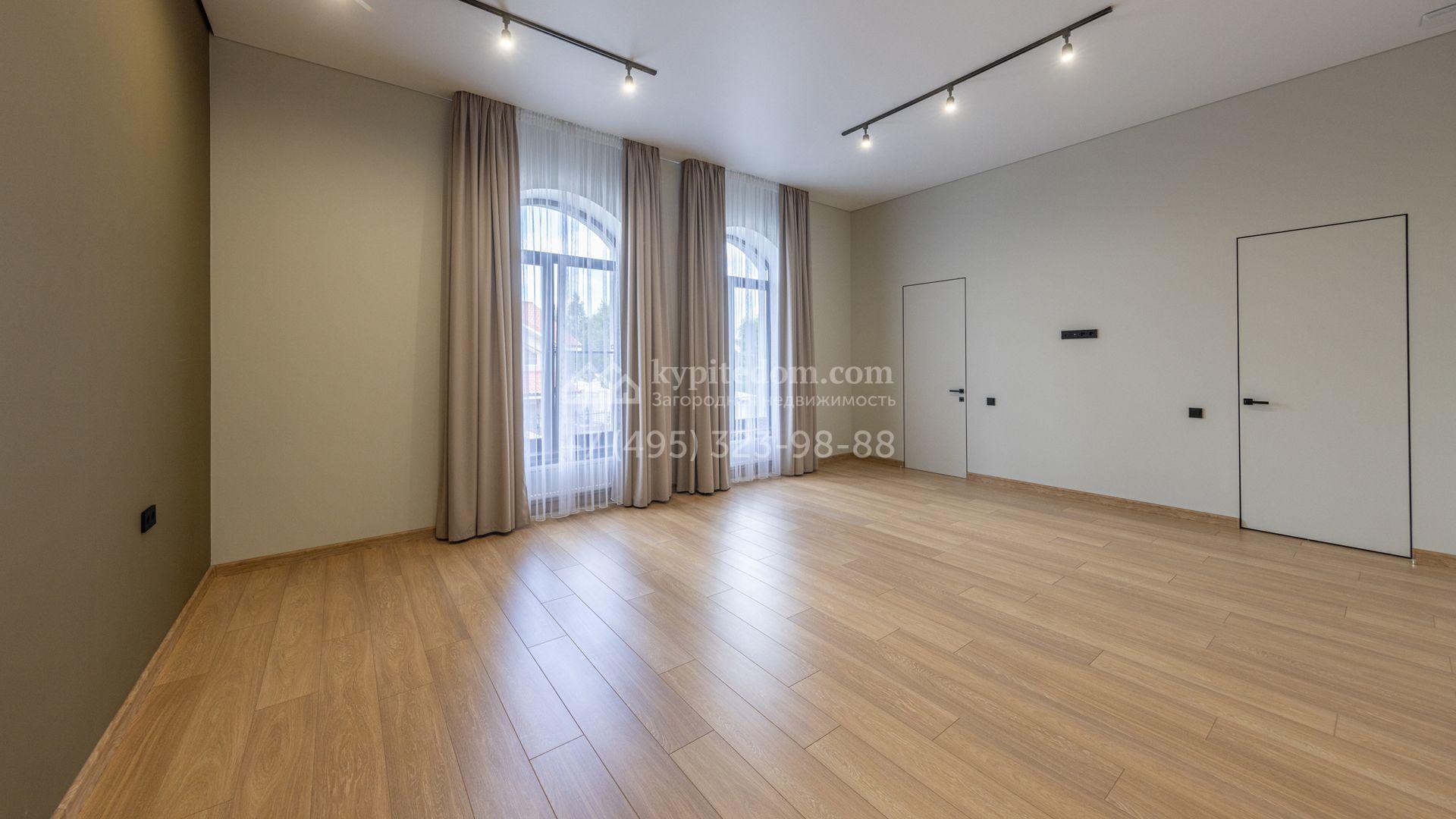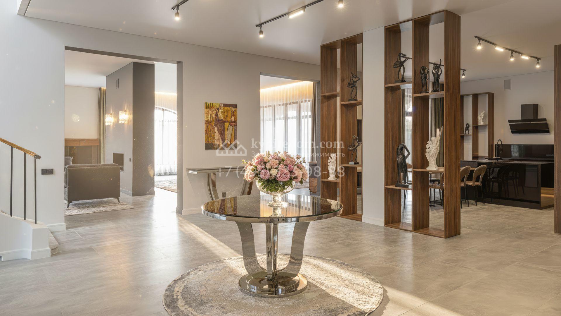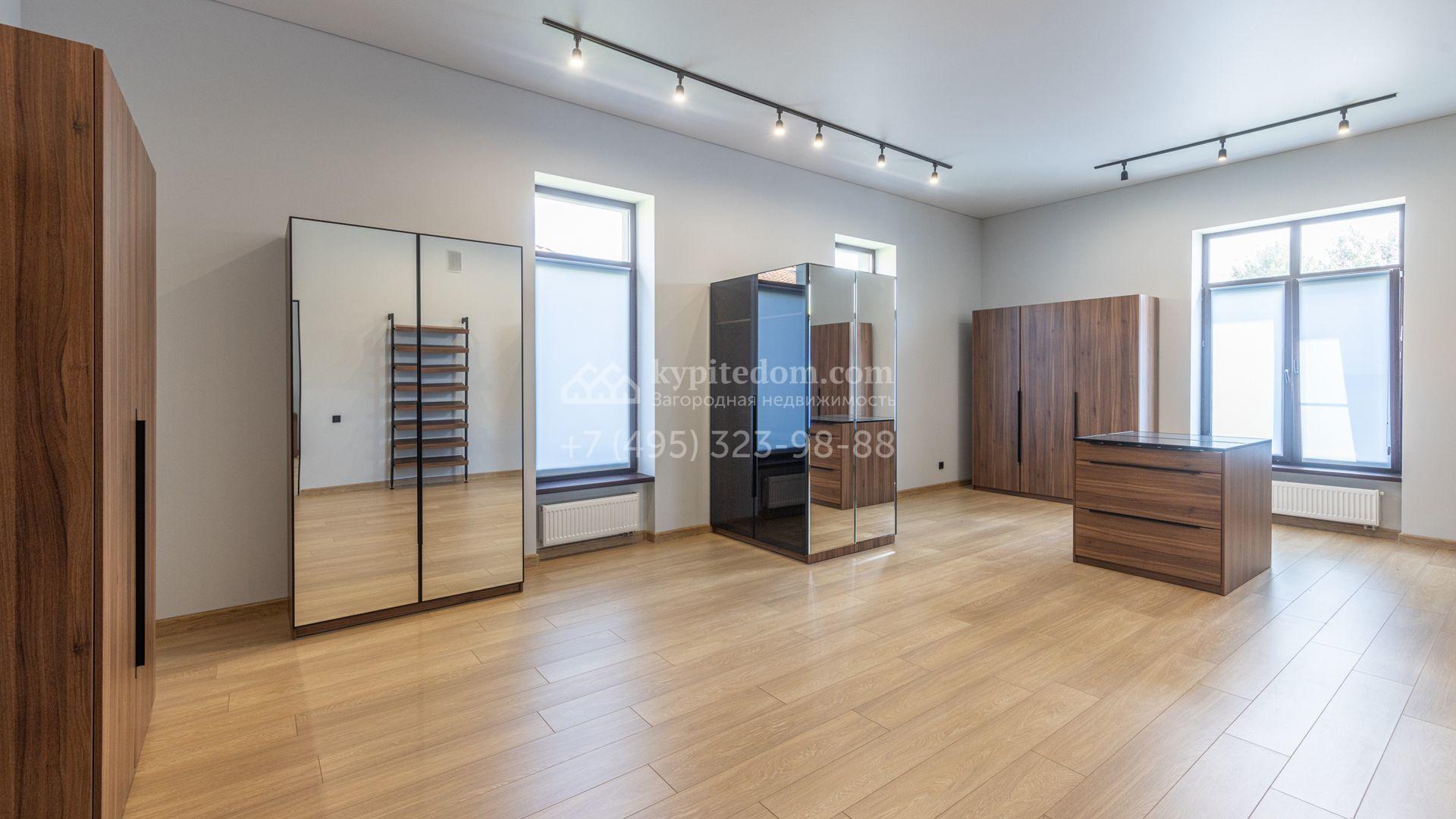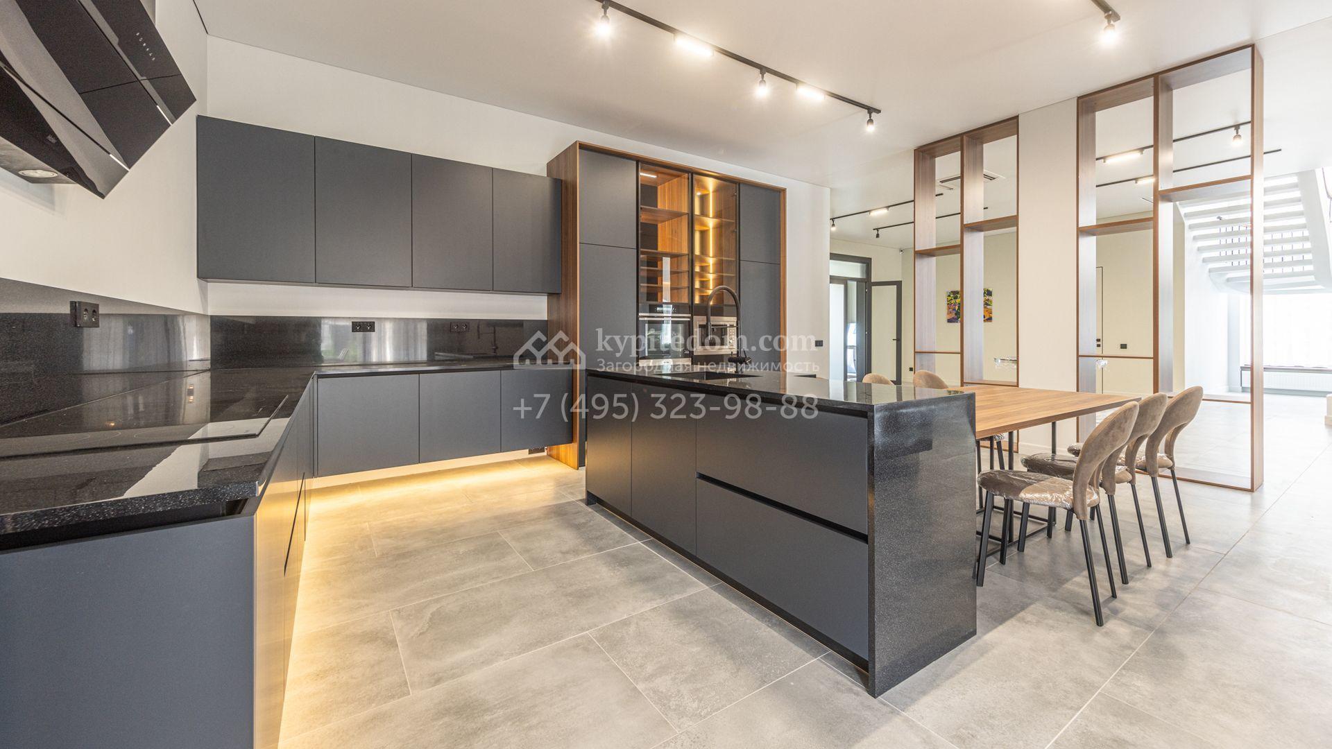 Загородный особняк площадью 1327 м² построен на просторном полевом участке 24 сотки. Фасад здания в итальянском стиле облицован светлой штукатуркой и декорирован колоннами, подсветкой и коваными элементами. В отделке лаконичного интерьера преобладают серые и бежевые оттенки в сочетании с фактурой камня и дерева. Планировка резиденции включает 7 спален, уютную гостиную с камином, открытую кухню, столовую, кабинет, сауну с зоной отдыха, тренажерный зал и переливной бассейн длиной 15 метров. На террасе обустроена зона барбекю. Рядом расположен гараж на 3 машины с мойкой, на втором этаже которого предусмотрена двухкомнатная квартира для персонала. На участке выполнены ландшафтный дизайн и дренажные работы, установлена система автоматического полива, по периметру высажены туи.