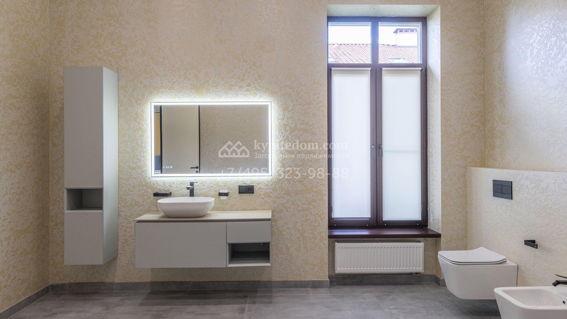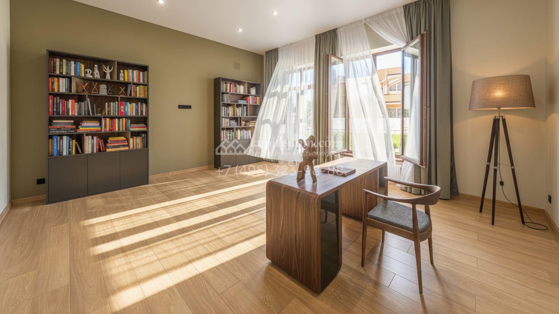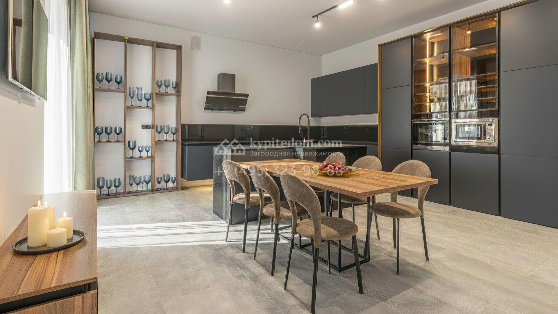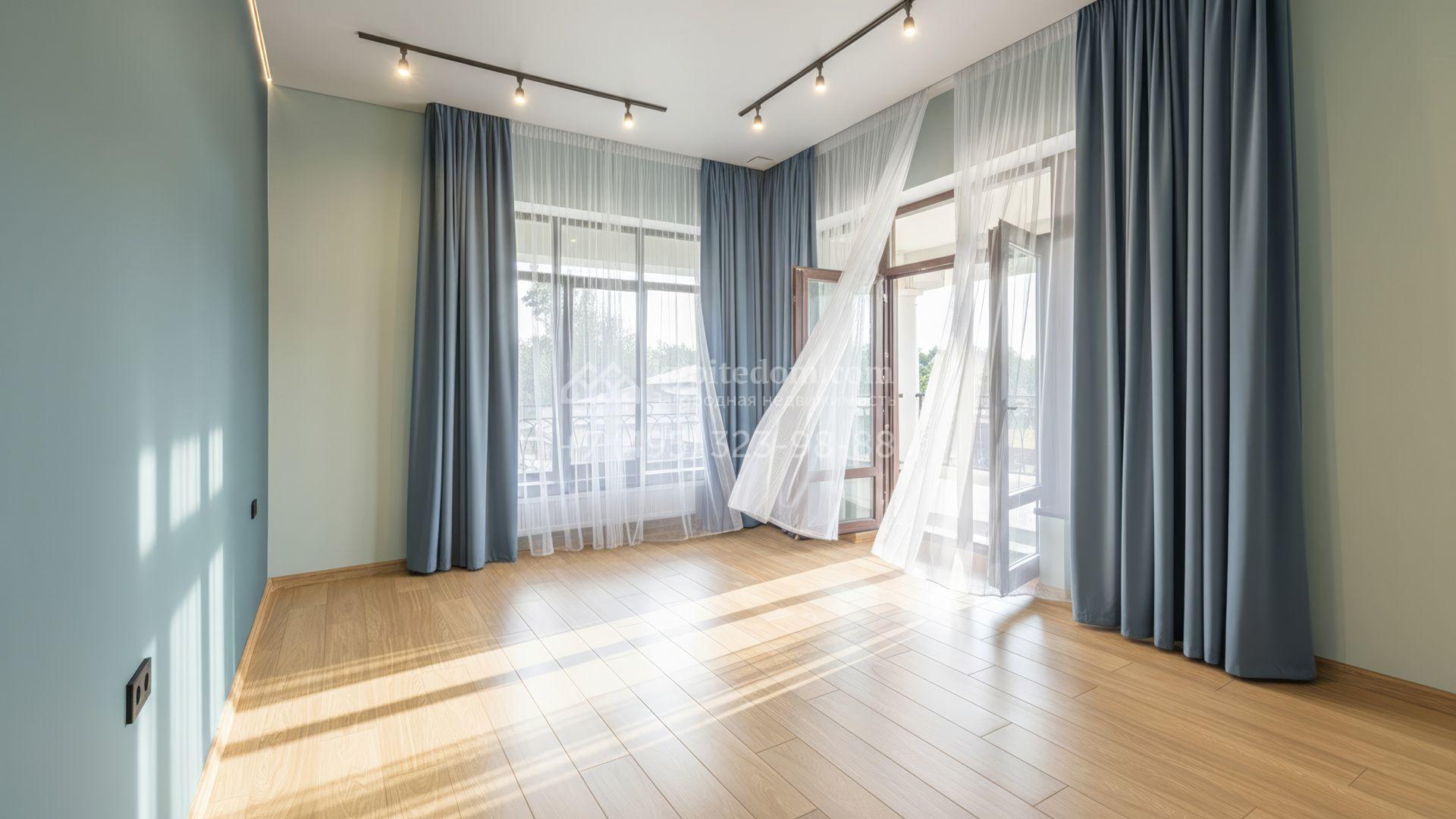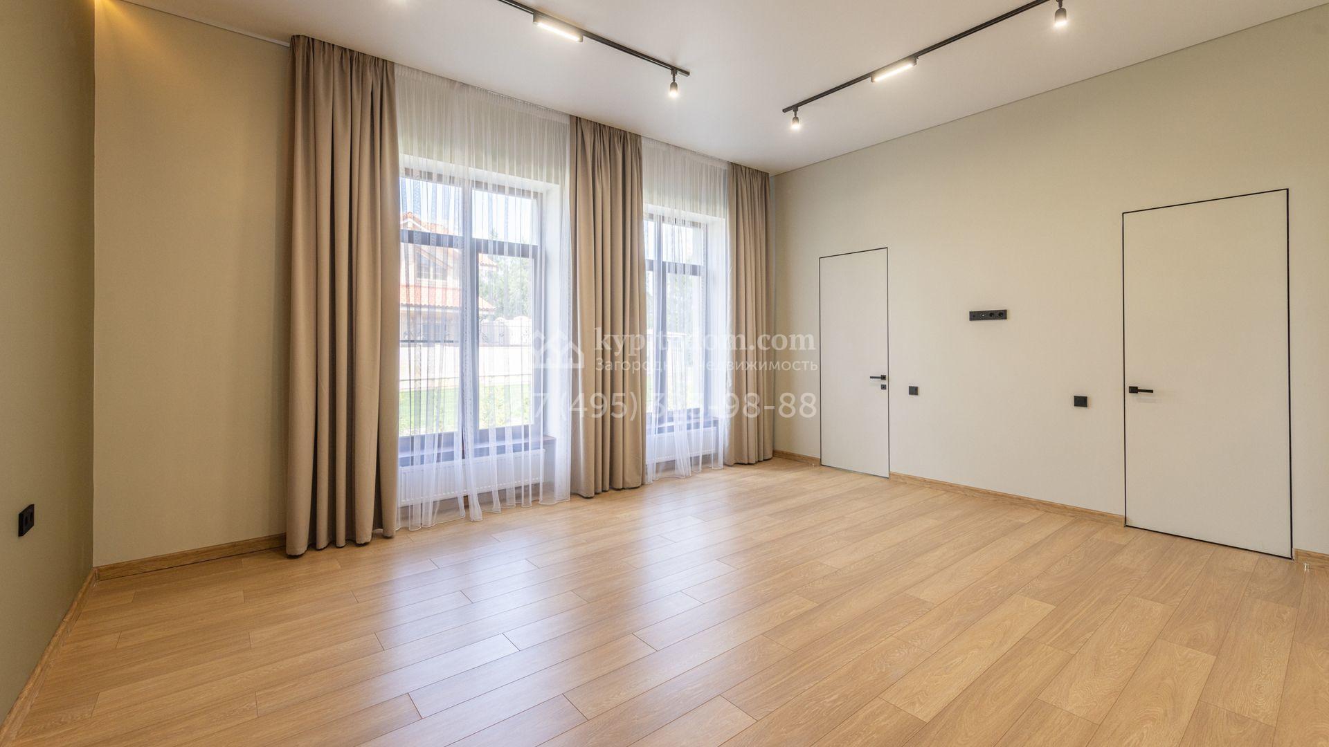 Загородный особняк площадью 1327 м² построен на просторном полевом участке 24 сотки. Фасад здания в итальянском стиле облицован светлой штукатуркой и декорирован колоннами, подсветкой и коваными элементами. В отделке лаконичного интерьера преобладают серые и бежевые оттенки в сочетании с фактурой камня и дерева. Планировка резиденции включает 7 спален, уютную гостиную с камином, открытую кухню, столовую, кабинет, сауну с зоной отдыха, тренажерный зал и переливной бассейн длиной 15 метров. На террасе обустроена зона барбекю. Рядом расположен гараж на 3 машины с мойкой, на втором этаже которого предусмотрена двухкомнатная квартира для персонала. На участке выполнены ландшафтный дизайн и дренажные работы, установлена система автоматического полива, по периметру высажены туи.