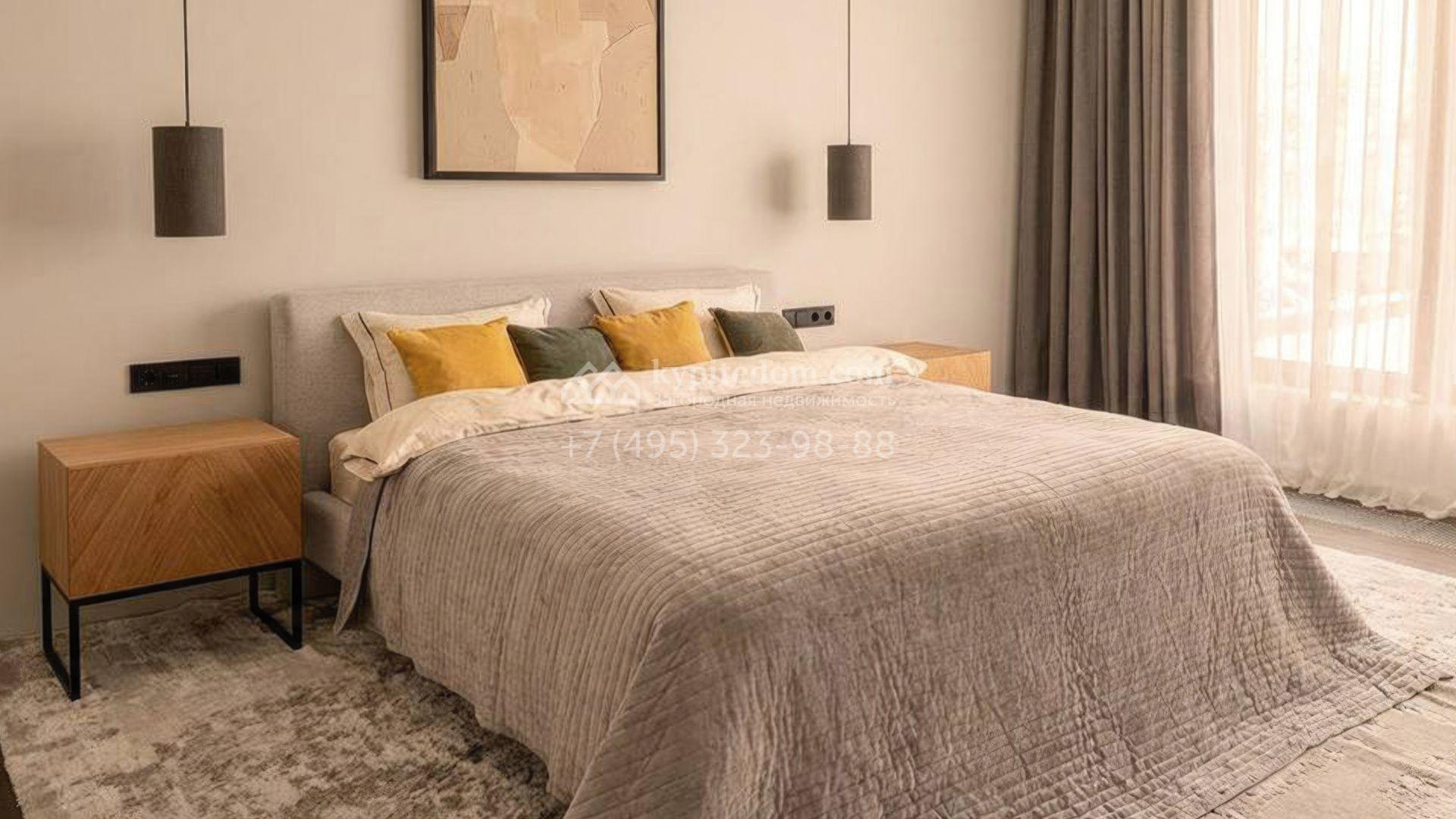 Загородный дом площадью 500 м² расположен на полевом участке 15 соток. Фасад здания с панорамными окнами выполнен в современном стиле, облицован темными панелями и декорирован вертикальными планками. В отделке лаконичного интерьера использованы слэбы из мрамора и гранита, на полу уложена инженерная дубовая доска. Коттедж частично укомплектован мебелью, установлена бытовая техника Miele. Планировка резиденции включает 5 спален, одна из которых с небольшой кухней для гостей, кухню-столовую-гостиную с камином и выходом на террасу, где расположен бассейн длиной 10 метров, сауну, хаммам и комнату для персонала. К дому пристроен навес на две машины с выводом зарядки для электроавтомобиля. На участке с газоном можно выполнить ландшафтный дизайн и обустроить беседку с зоной барбекю.