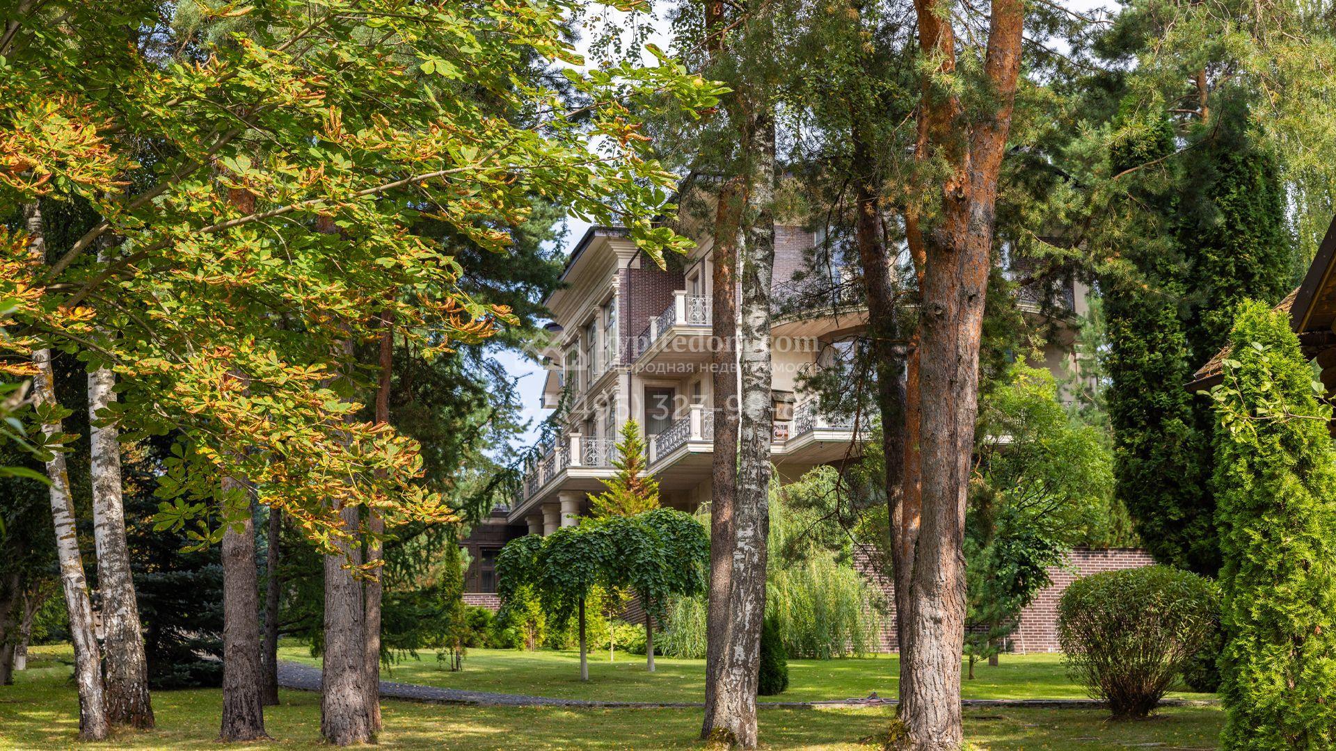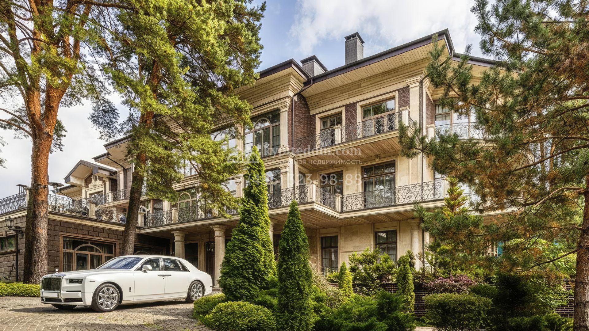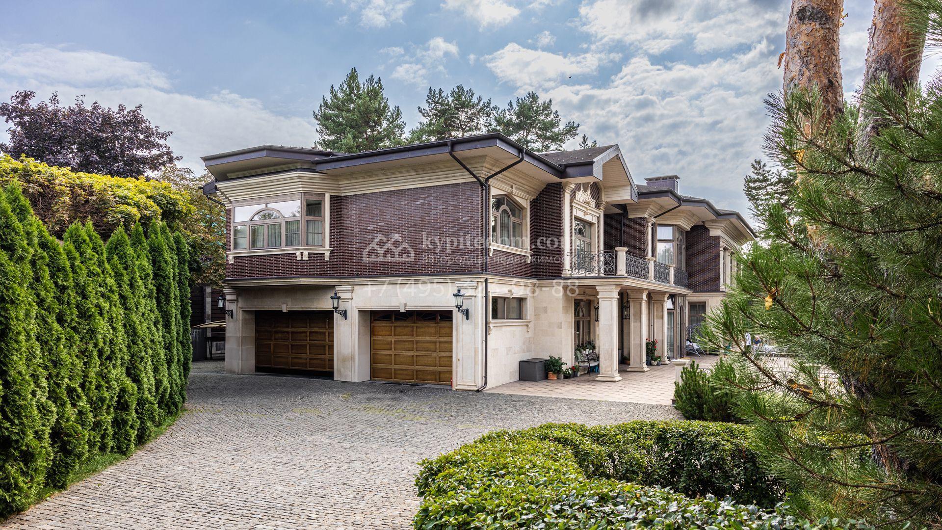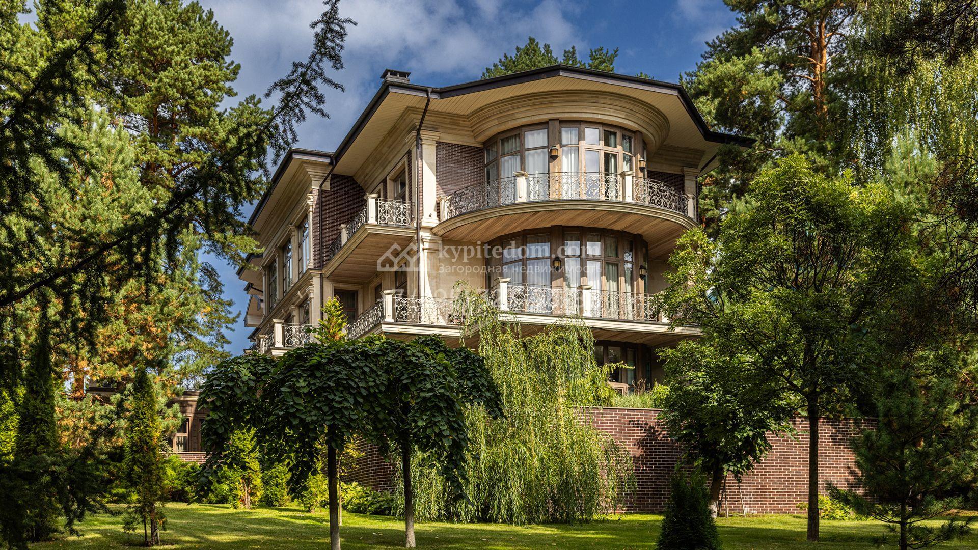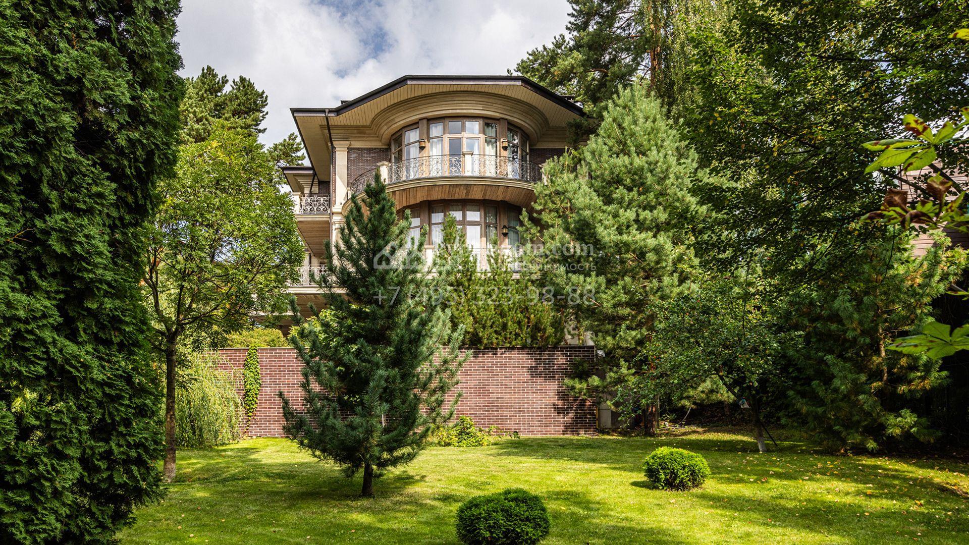 Загородный особняк площадью 2500 м² построен на просторном участке 42,5 сотки на возвышенности в закрытом камерном поселке на 6 домовладений. Фасад здания в стиле «эклектика», спроектированный архитектурным бюро Domoff Group, облицован итальянским мрамором и клинкерной плиткой шоколадного оттенка, а также декорирован колоннами, пилястрами и резными фронтонами над окнами. Ключевая особенность интерьера — сочетание чёрного цвета со светло-бежевым, серым и белым. Во внутренней отделке использованы мрамор, паркет, деревянные буазери, гипсовая лепнина, мозаичное панно, установлены кухонный гарнитур Aster Cucine, бытовая техника Wolf, Sub-Zero и сантехника Devon&Devon. В резиденции разместили 7 спален, гостиную, каминную, столовую со вторым светом, кухню, 2 кабинета и SPA-зону с бассейном и сауной. В контуре дома предусмотрен гараж на 3 машины. На участке с выходом к реке и в окружении вековых сосен выполнен ландшафтный дизайн с учетом перепада высот, вымощены дорожки.