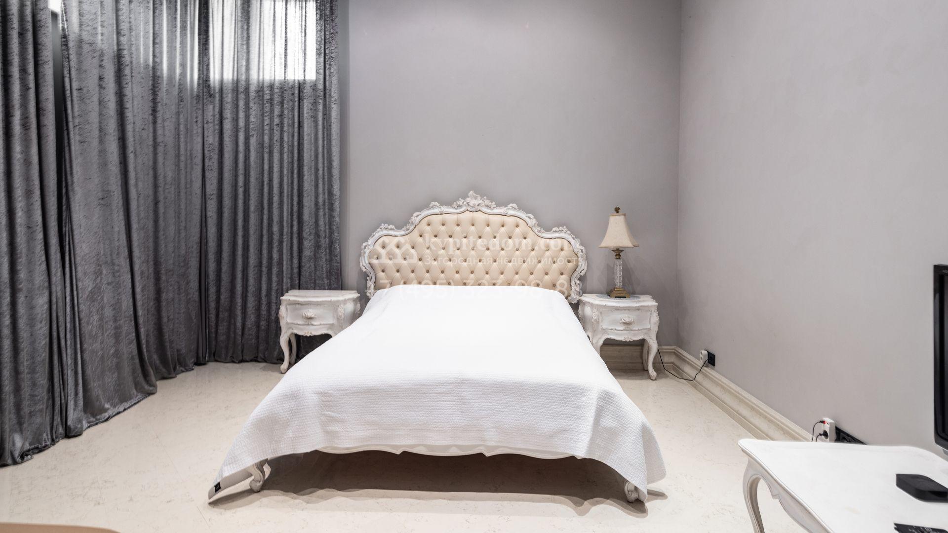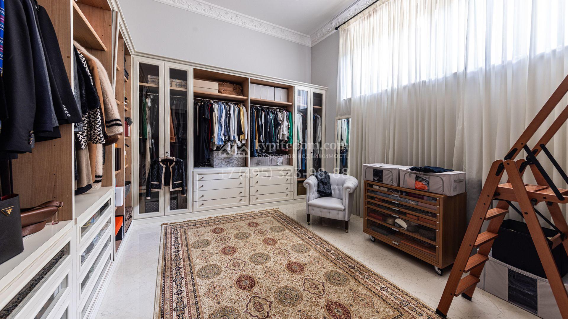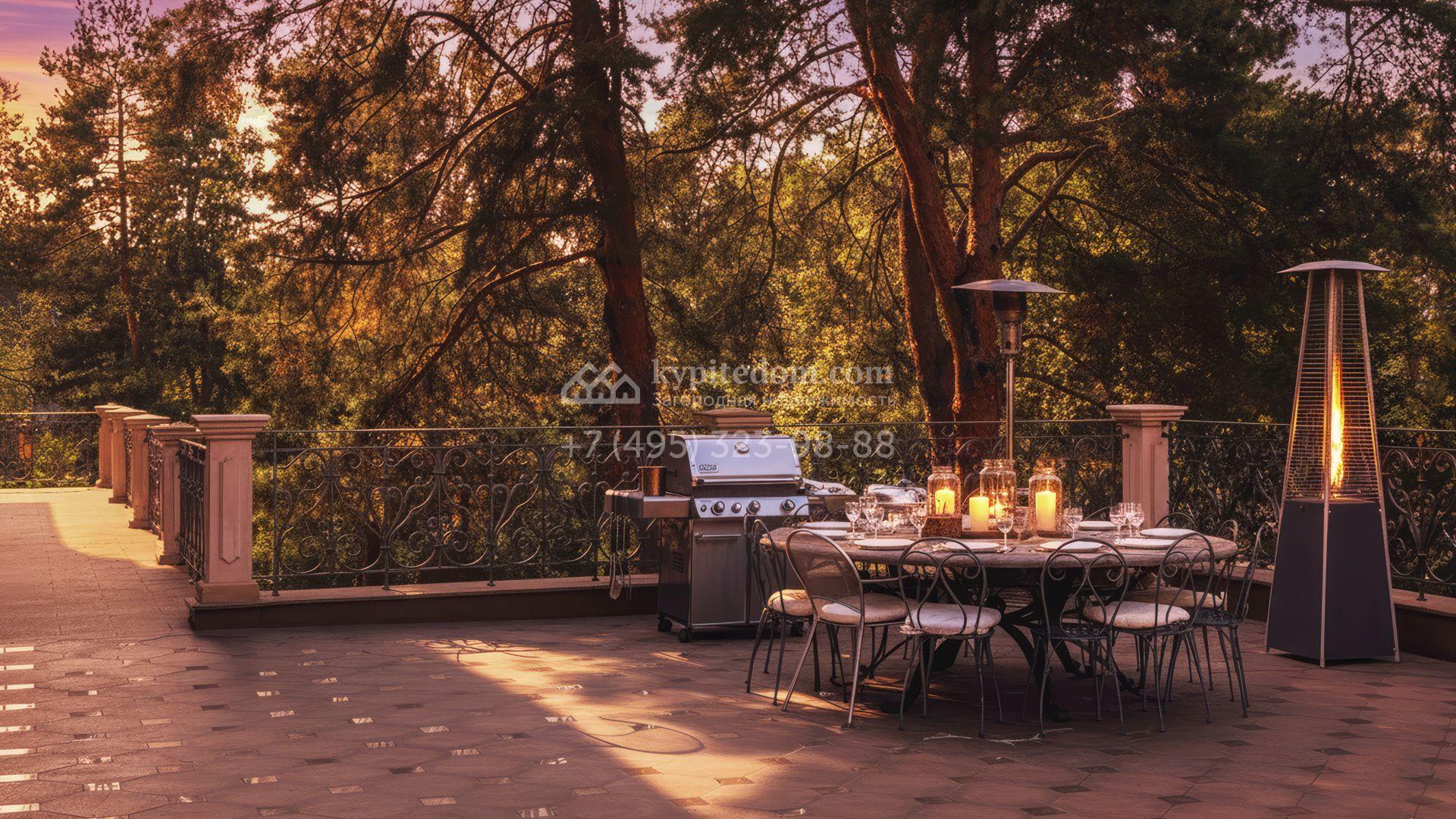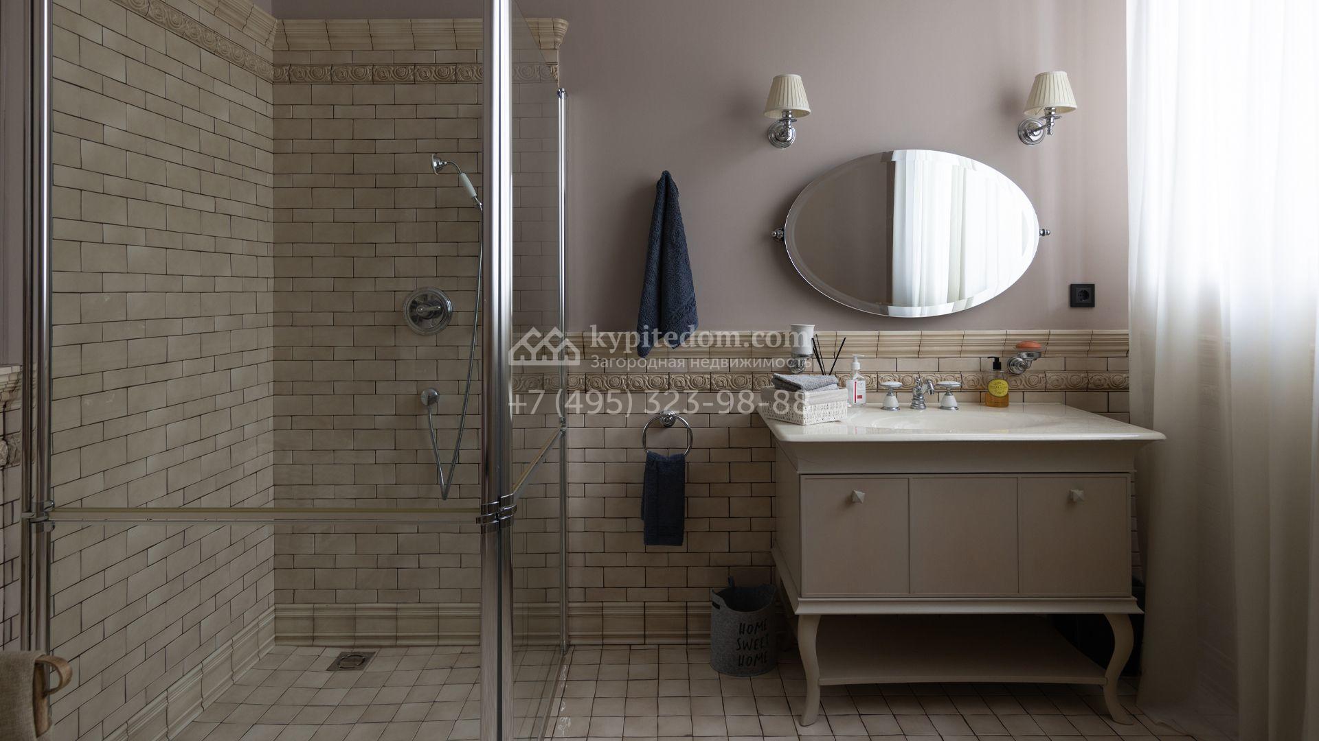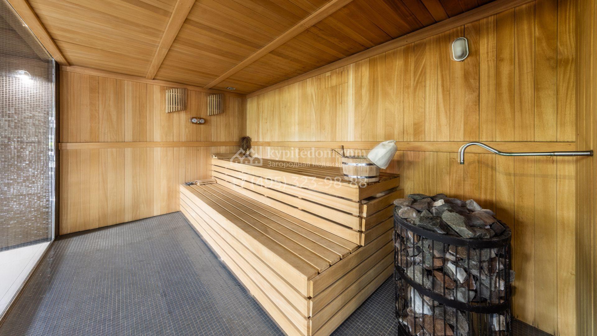 Загородный особняк площадью 2500 м² построен на просторном участке 42,5 сотки на возвышенности в закрытом камерном поселке на 6 домовладений. Фасад здания в стиле «эклектика», спроектированный архитектурным бюро Domoff Group, облицован итальянским мрамором и клинкерной плиткой шоколадного оттенка, а также декорирован колоннами, пилястрами и резными фронтонами над окнами. Ключевая особенность интерьера — сочетание чёрного цвета со светло-бежевым, серым и белым. Во внутренней отделке использованы мрамор, паркет, деревянные буазери, гипсовая лепнина, мозаичное панно, установлены кухонный гарнитур Aster Cucine, бытовая техника Wolf, Sub-Zero и сантехника Devon&Devon. В резиденции разместили 7 спален, гостиную, каминную, столовую со вторым светом, кухню, 2 кабинета и SPA-зону с бассейном и сауной. В контуре дома предусмотрен гараж на 3 машины. На участке с выходом к реке и в окружении вековых сосен выполнен ландшафтный дизайн с учетом перепада высот, вымощены дорожки.