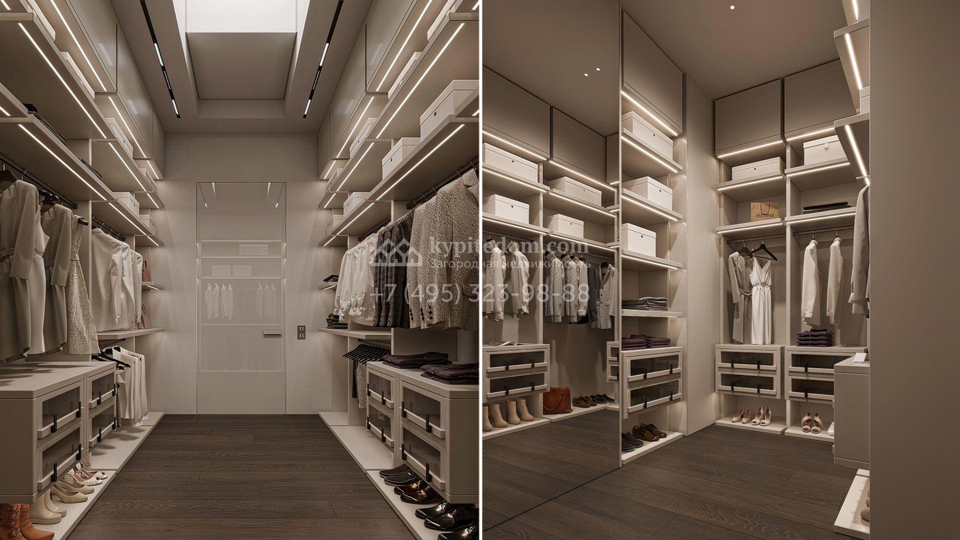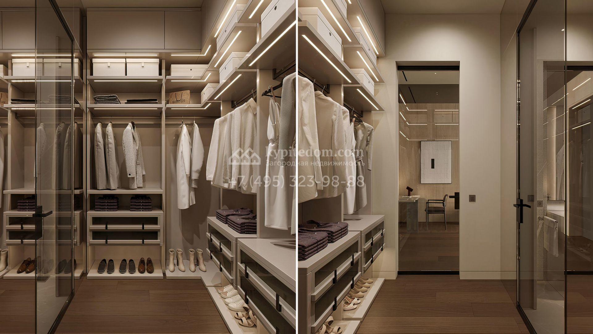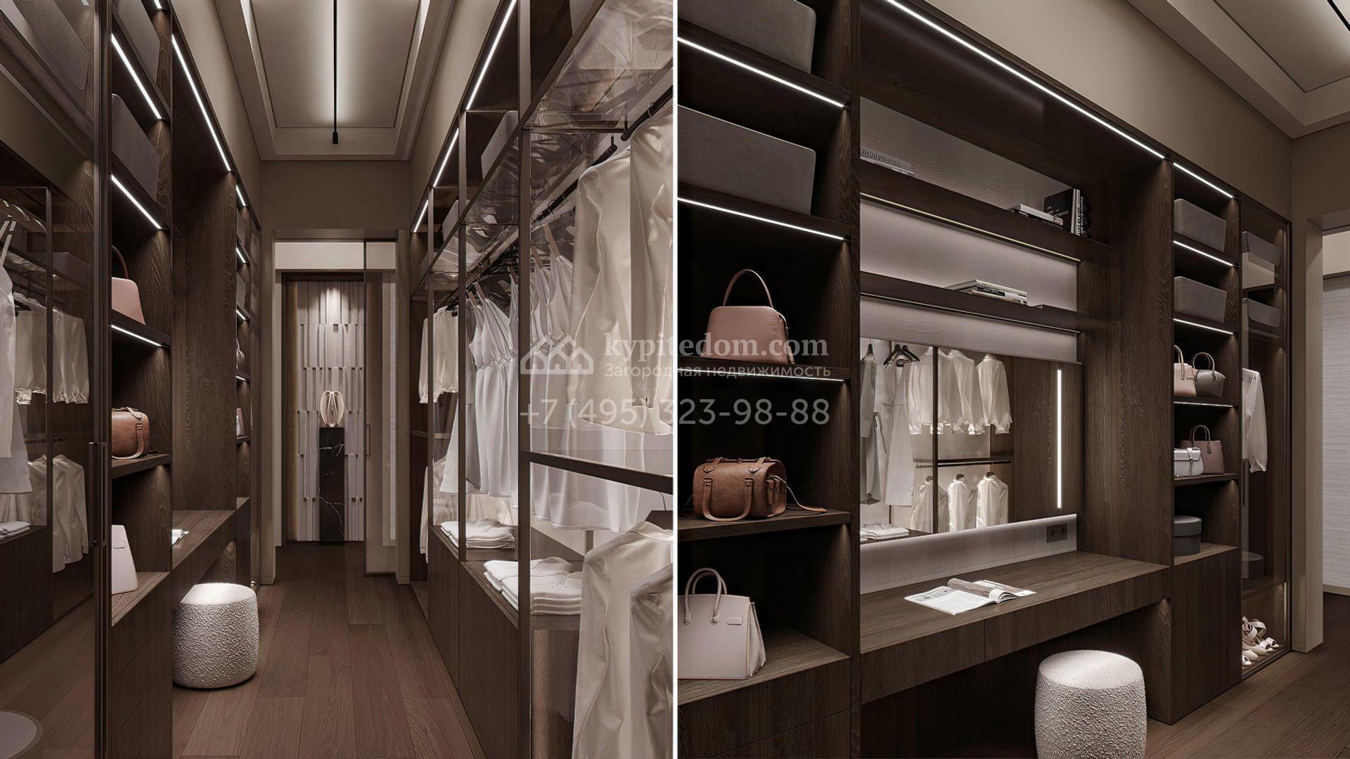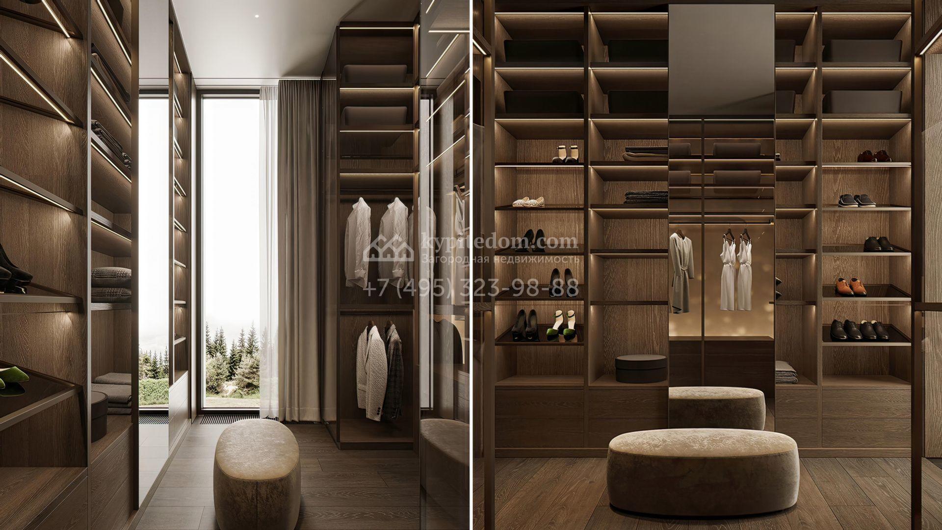 Планировка включает просторную кухню-гостиную-столовую, кабинет, 5 спален с гардеробными, 4 из которых имеют выход на индивидуальные террасы, SPA-зону с бассейном, сауной и хаммамом, а также квартиру для персонала и гараж на 2 машины. На эксплуатируемой крыше можно разместить ротанговую мебель и спроектировать уютное место для отдыха с барбекю.