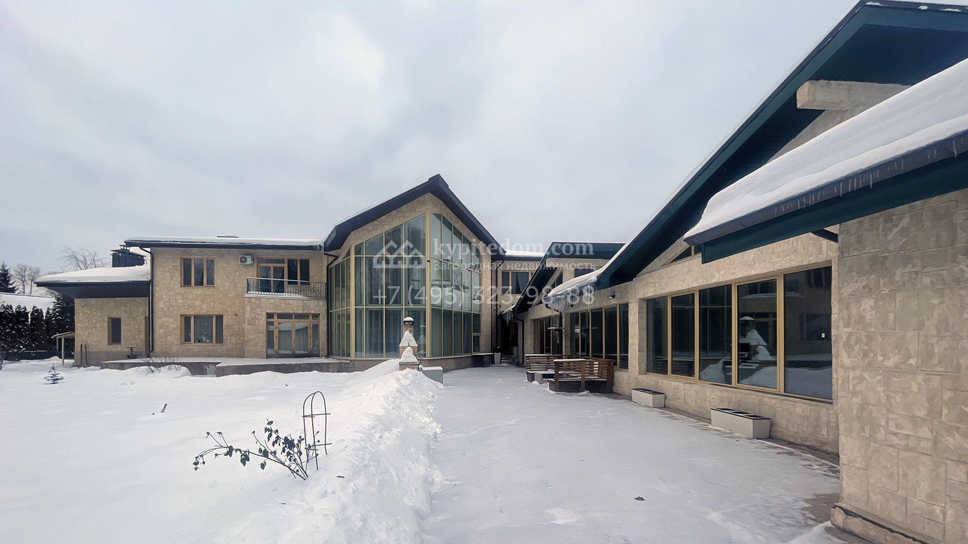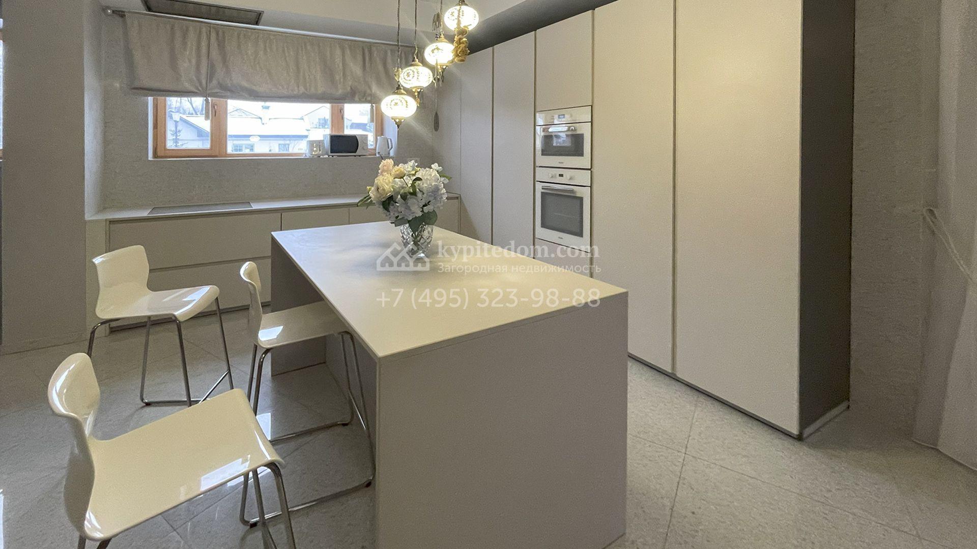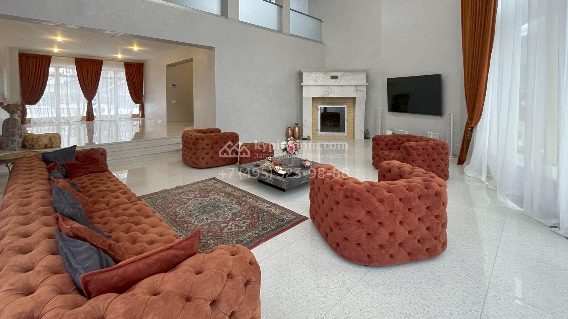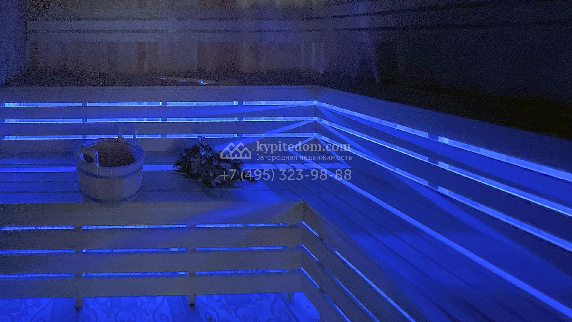 В трехуровневом особняке спланировали просторную гостиную с камином, 5 спален, оборудованную кухню, спа-зону с сауной, мануальной зоной и бассейном площадью 60 м² и глубиной 1,8 метра. Также в контуре дома предусмотрен гараж. На огороженном участке засеян газон, растут хвойные и лиственные деревья, оборудованы места для отдыха.