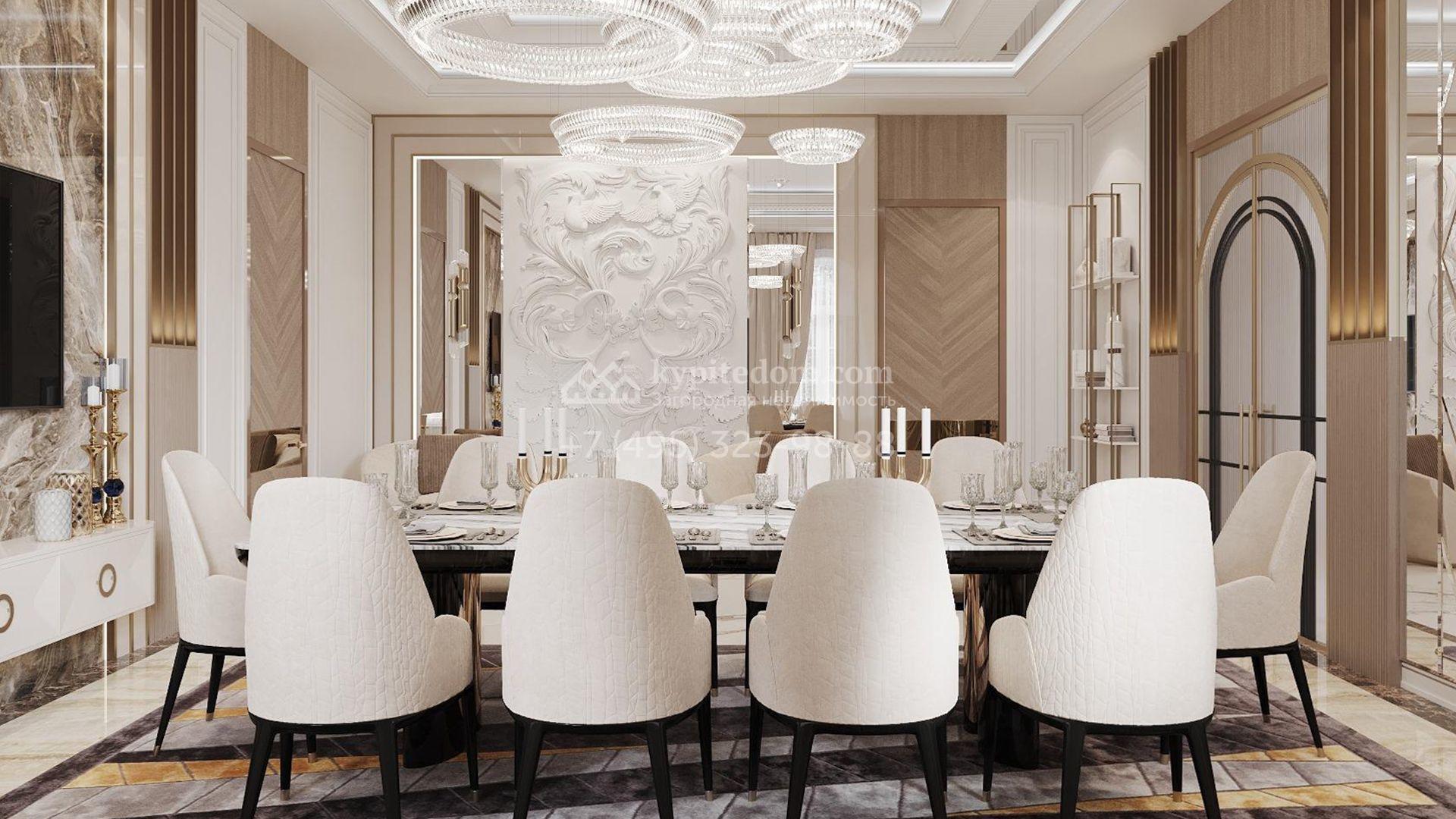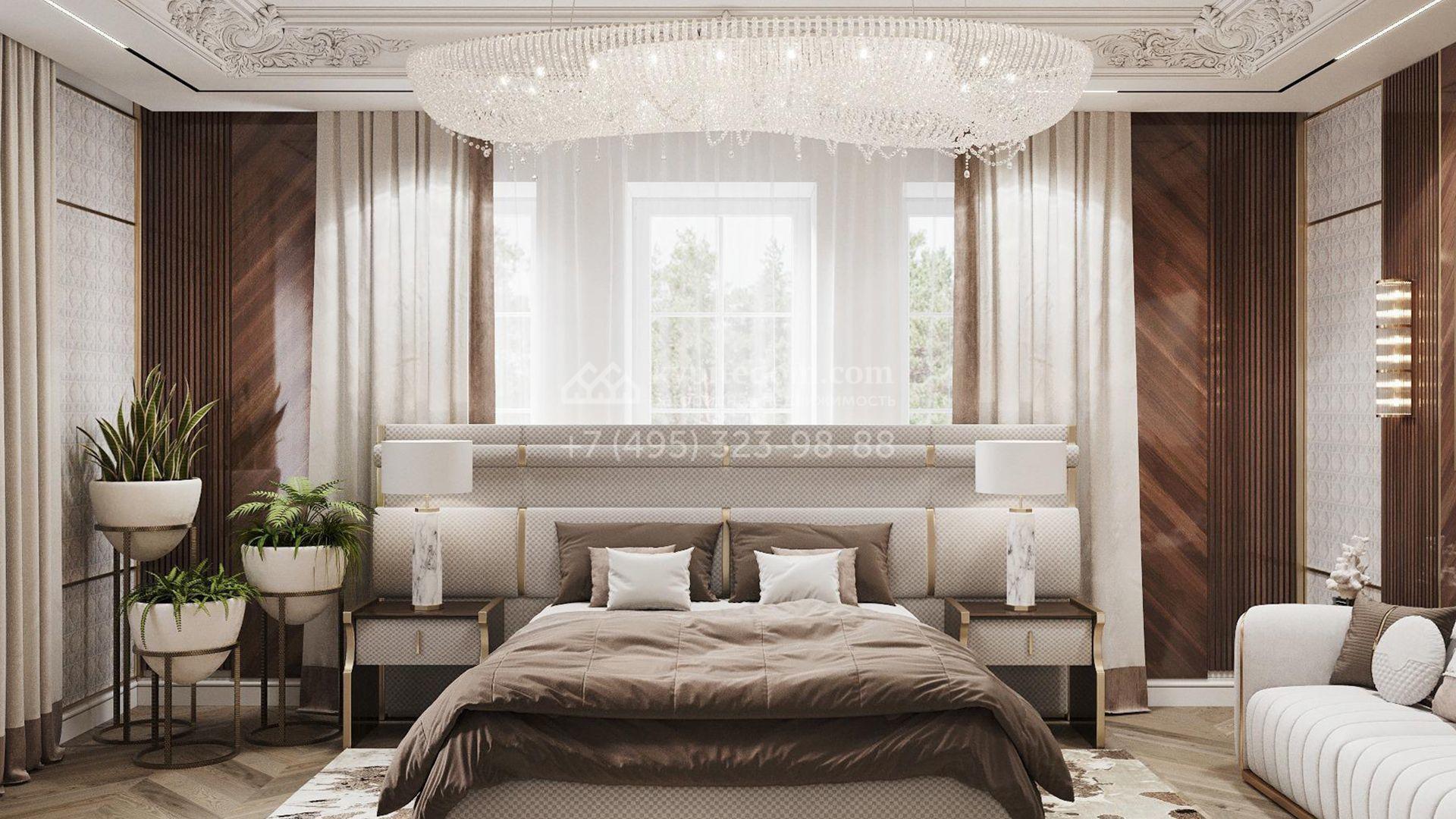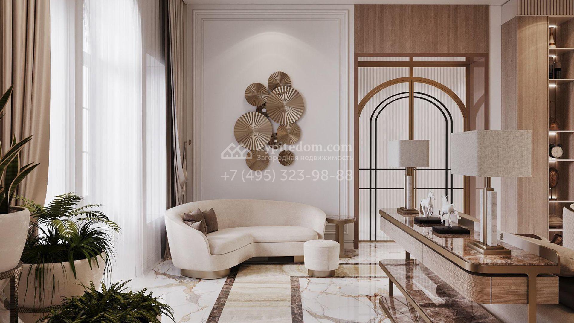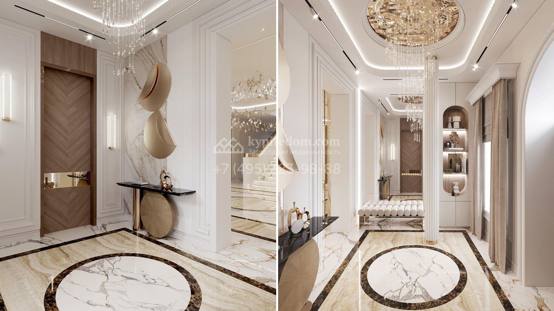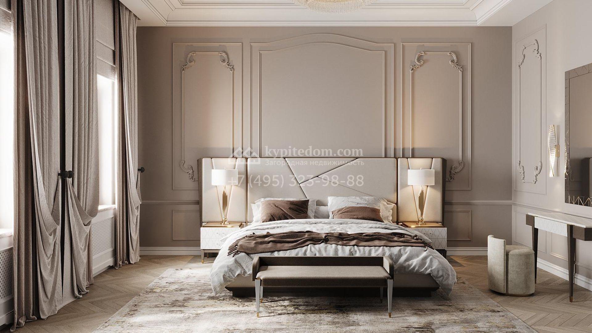 Загородная резиденция площадью 1411 м² расположена на живописном лесном участке 30 соток. Симметричный фасад построен в элегантном классическом стиле и дополнен колоннами — его можно облицевать белоснежной штукатуркой и украсить лепниной, молдингами и балясинами. Отсутствие отделки позволяет будущим владельцам оформить интерьеры на свой вкус или же воспользоваться готовым дизайн-проектом от архитектурного бюро Dempire.