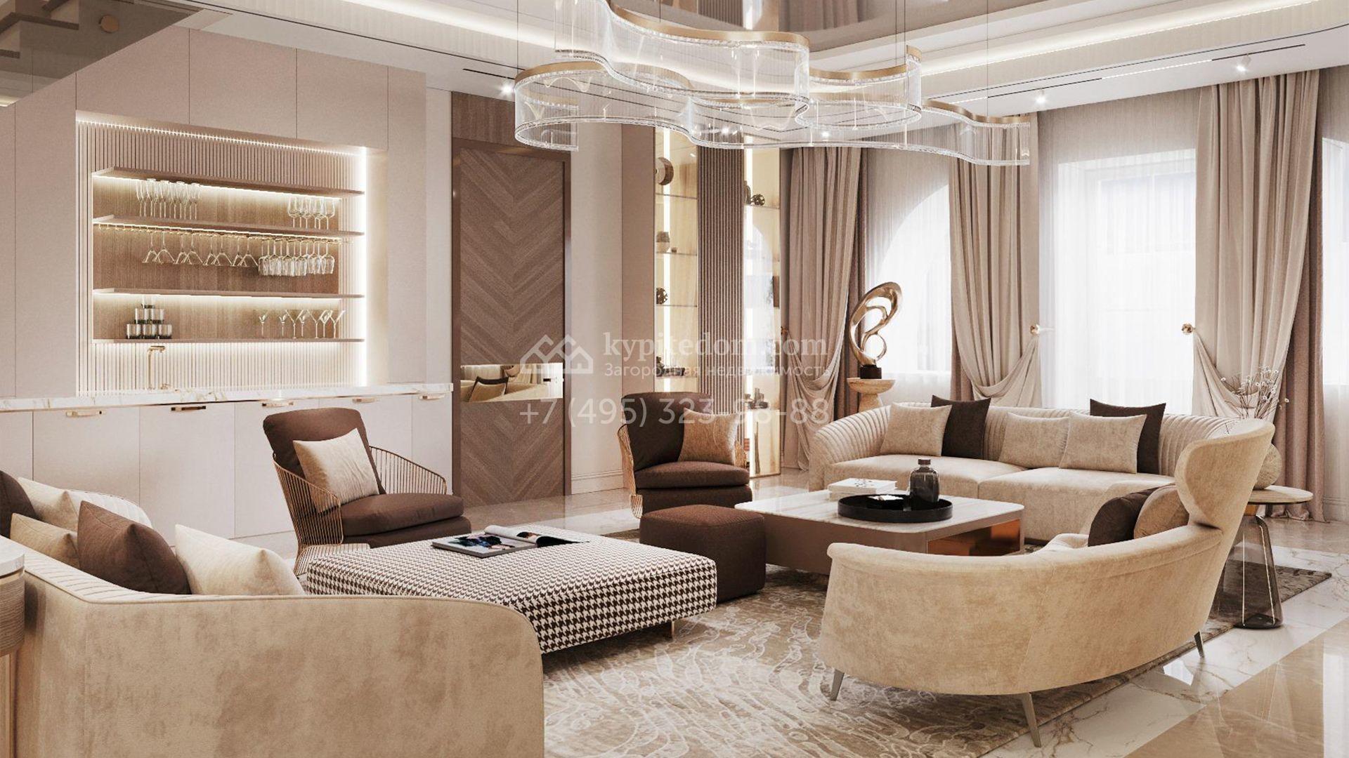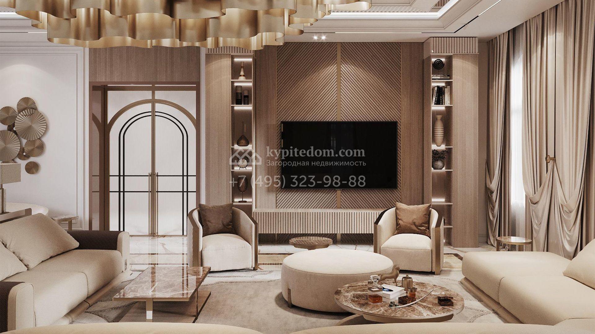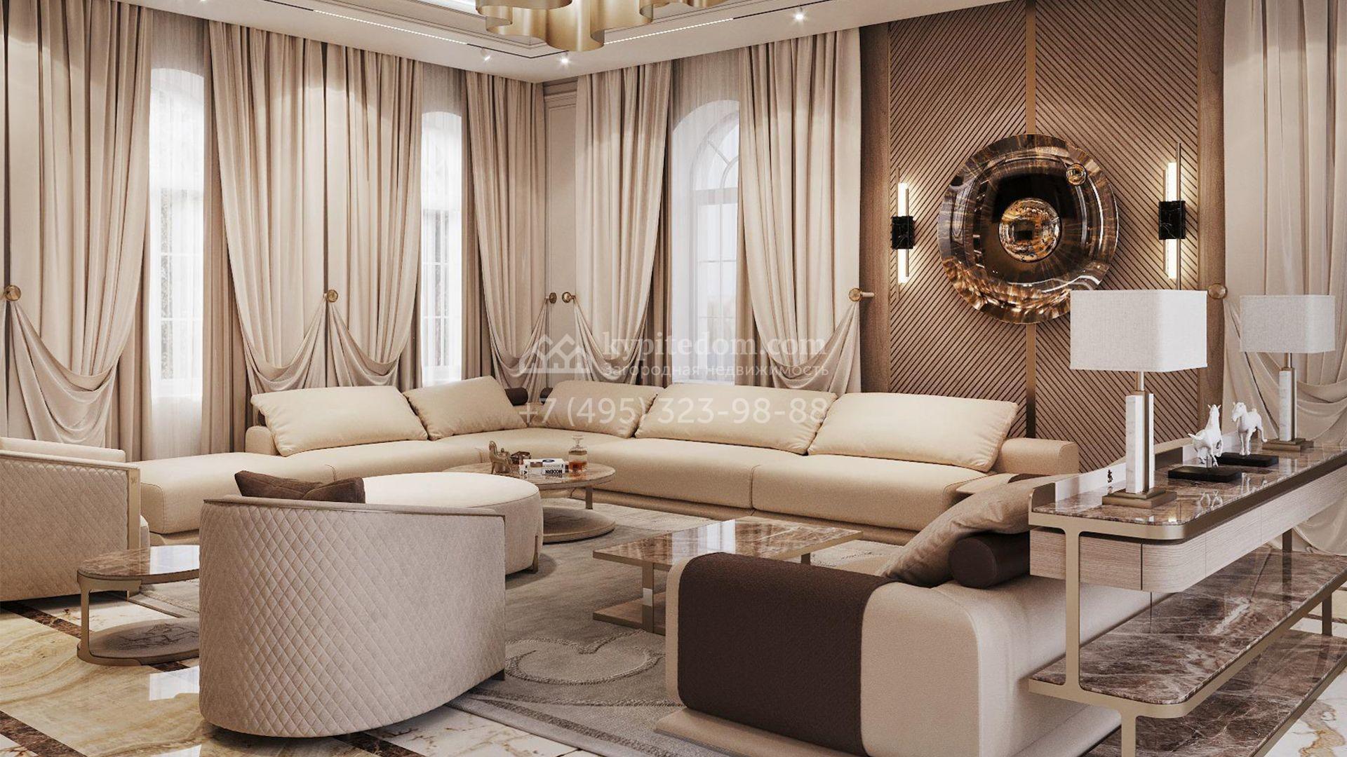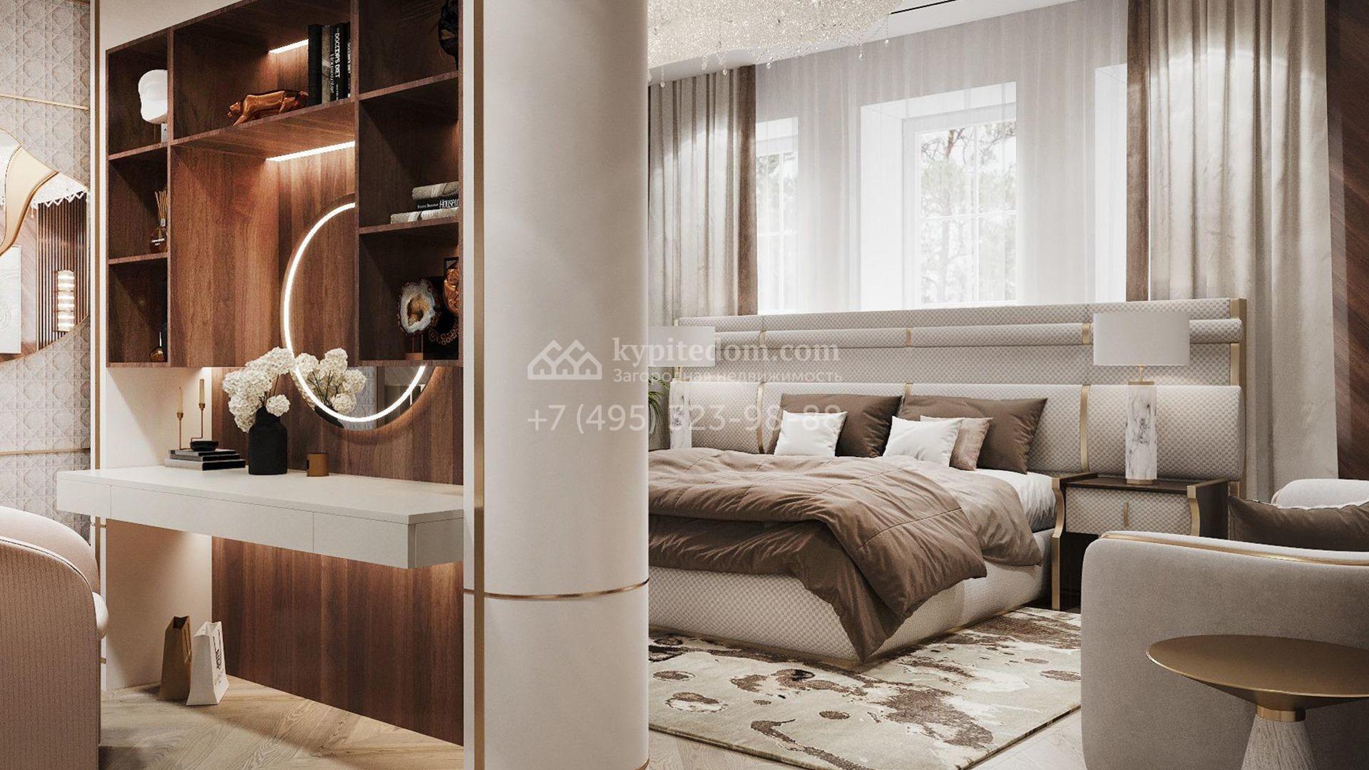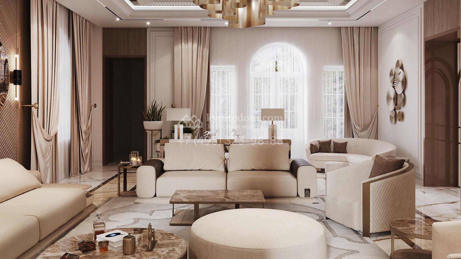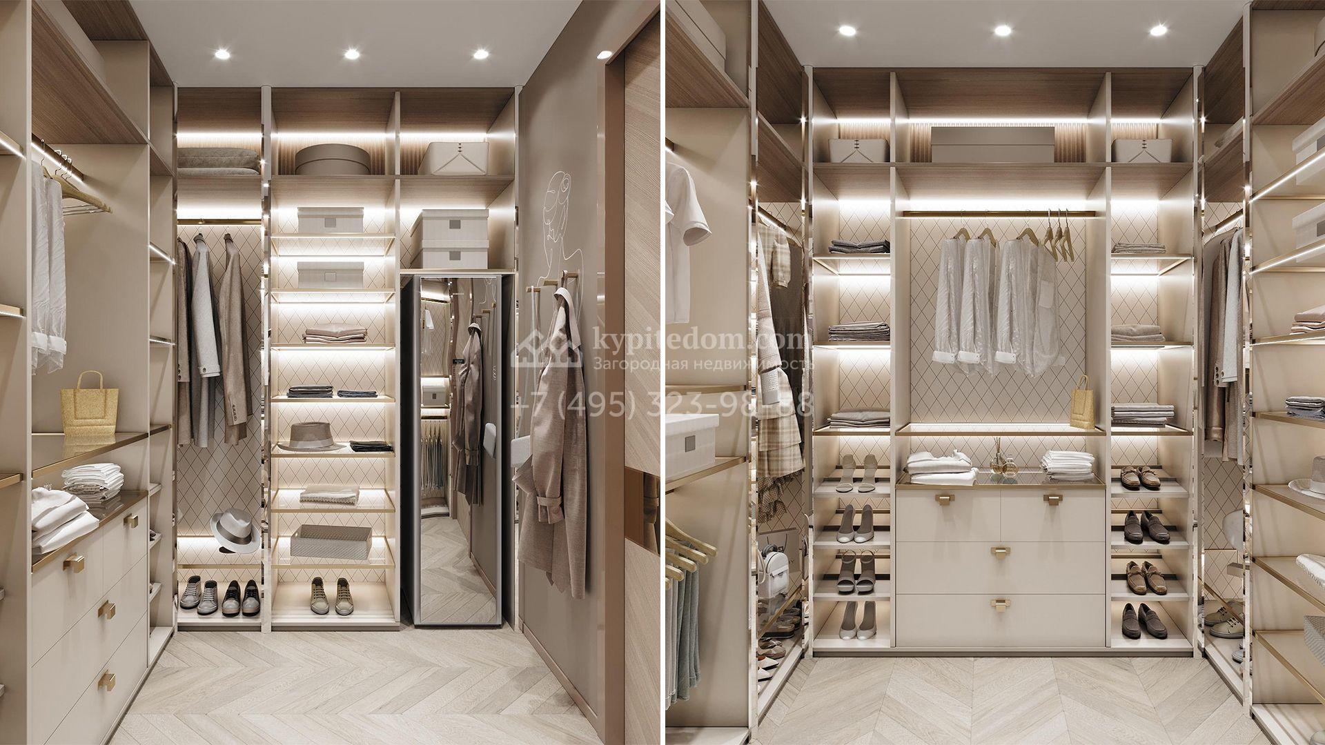 Загородная резиденция площадью 1411 м² расположена на живописном лесном участке 30 соток. Симметричный фасад построен в элегантном классическом стиле и дополнен колоннами — его можно облицевать белоснежной штукатуркой и украсить лепниной, молдингами и балясинами. Отсутствие отделки позволяет будущим владельцам оформить интерьеры на свой вкус или же воспользоваться готовым дизайн-проектом от архитектурного бюро Dempire.