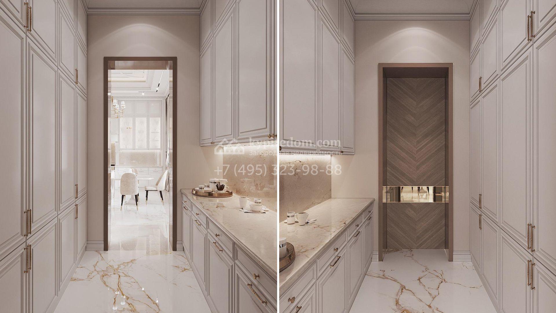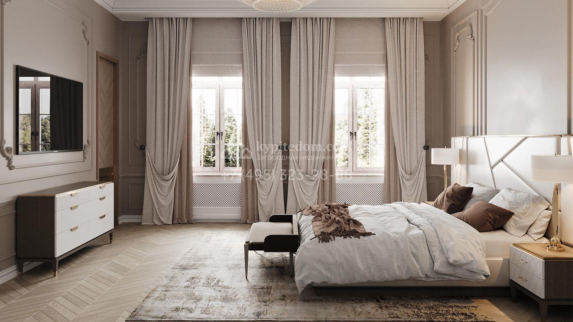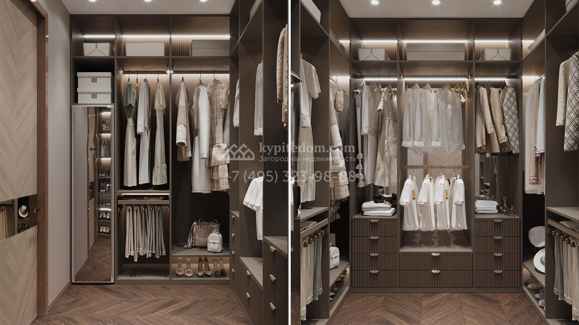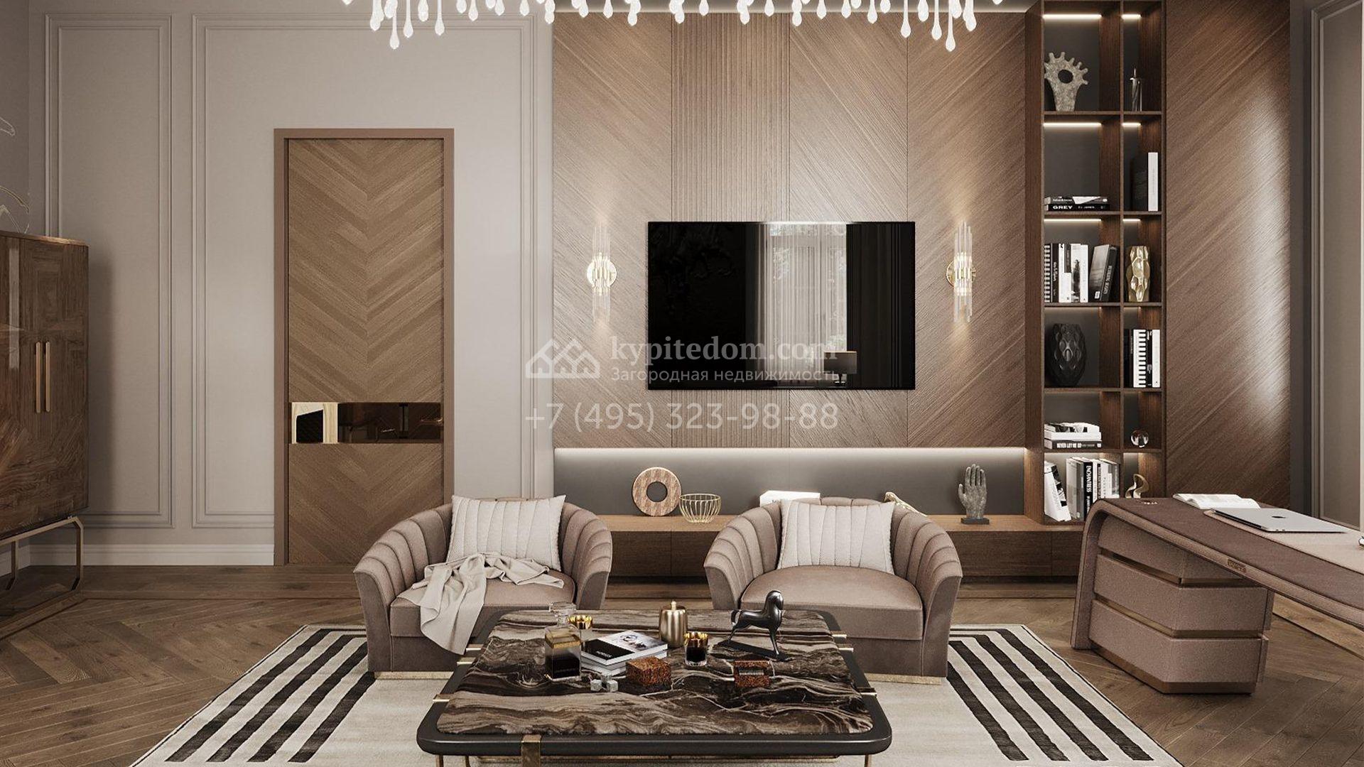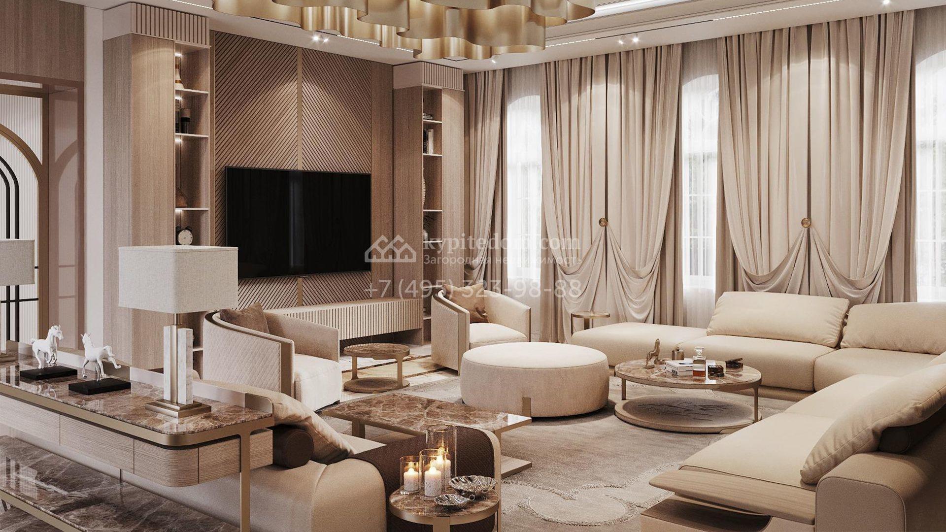 Загородная резиденция площадью 1411 м² расположена на живописном лесном участке 30 соток. Симметричный фасад построен в элегантном классическом стиле и дополнен колоннами — его можно облицевать белоснежной штукатуркой и украсить лепниной, молдингами и балясинами. Отсутствие отделки позволяет будущим владельцам оформить интерьеры на свой вкус или же воспользоваться готовым дизайн-проектом от архитектурного бюро Dempire.