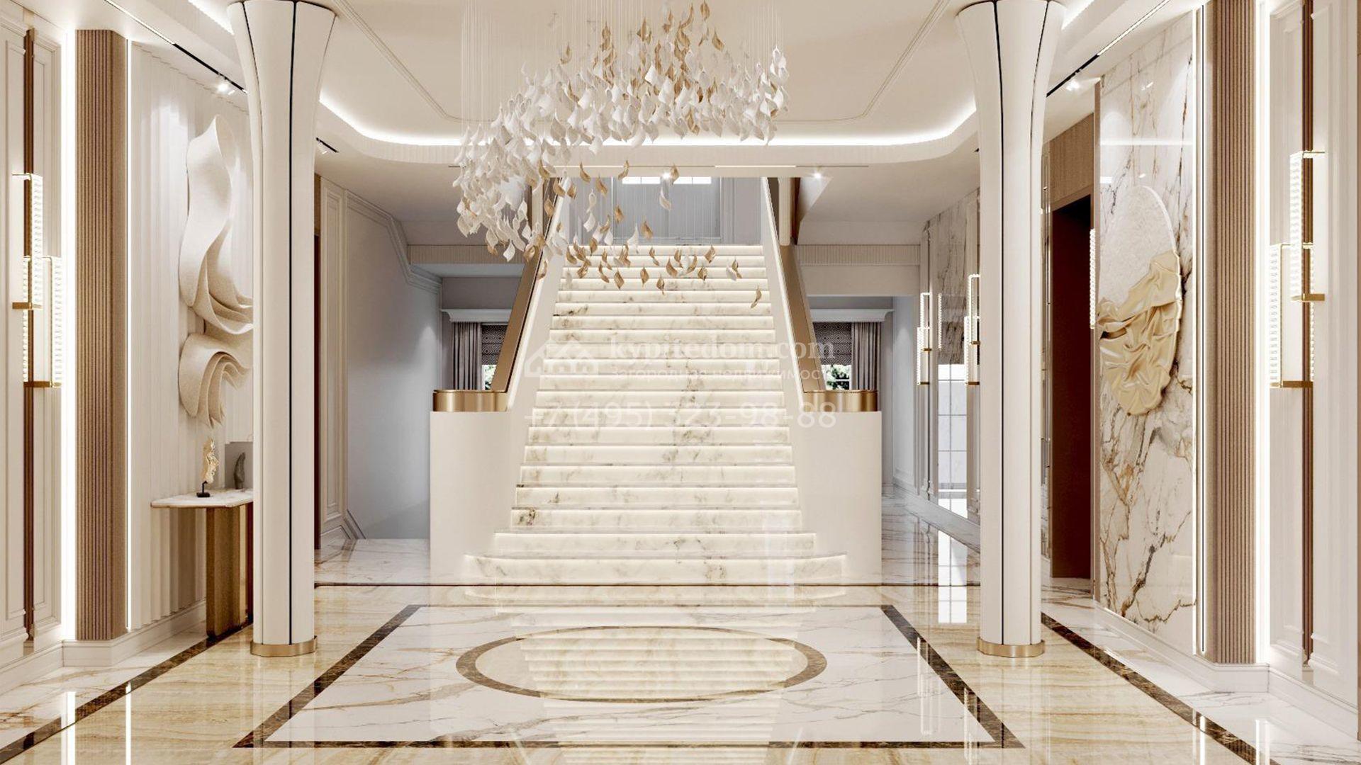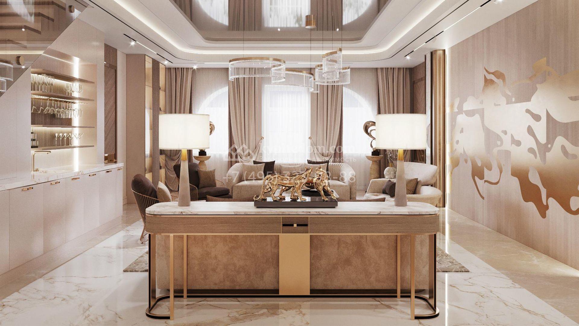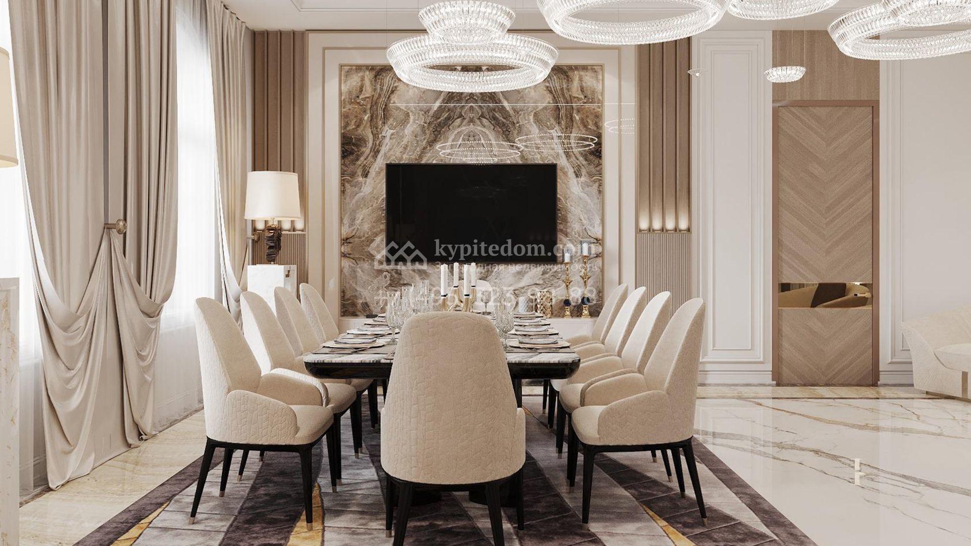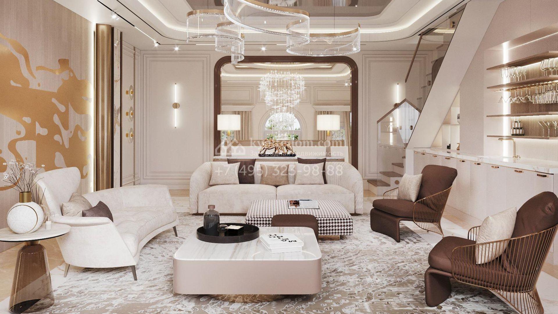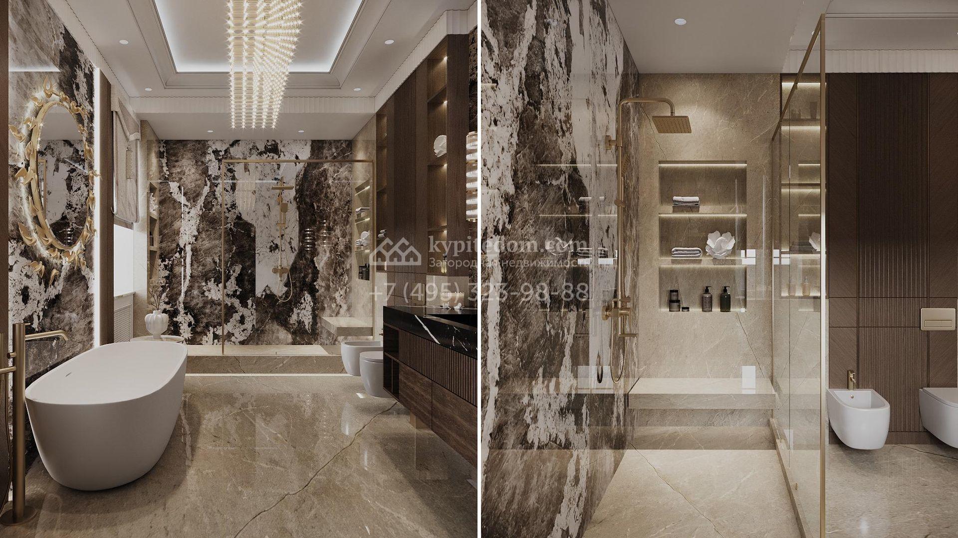 Загородная резиденция площадью 1411 м² расположена на живописном лесном участке 30 соток. Симметричный фасад построен в элегантном классическом стиле и дополнен колоннами — его можно облицевать белоснежной штукатуркой и украсить лепниной, молдингами и балясинами. Отсутствие отделки позволяет будущим владельцам оформить интерьеры на свой вкус или же воспользоваться готовым дизайн-проектом от архитектурного бюро Dempire.