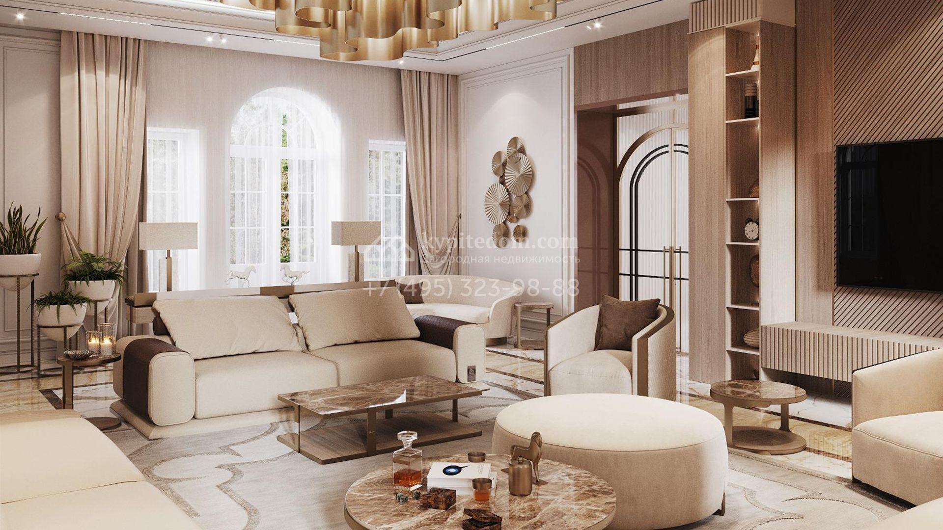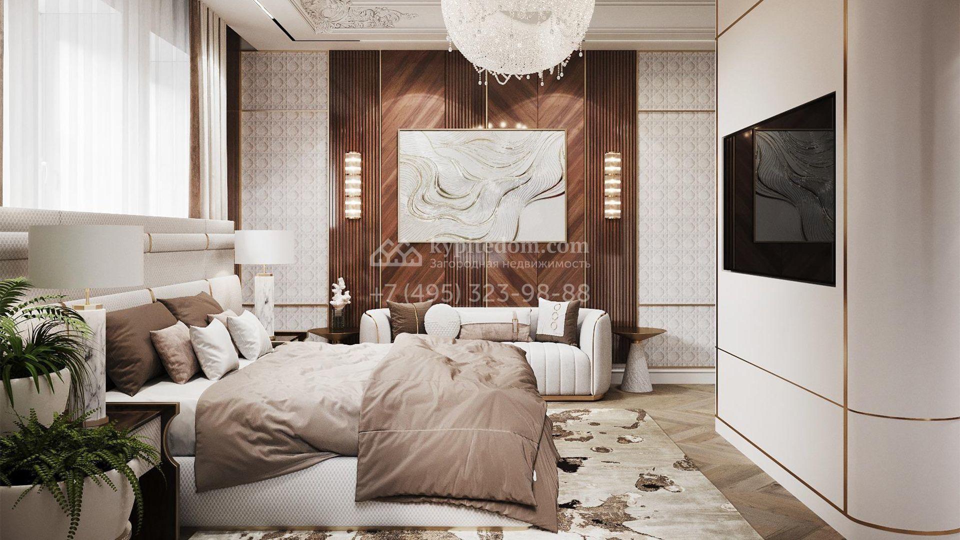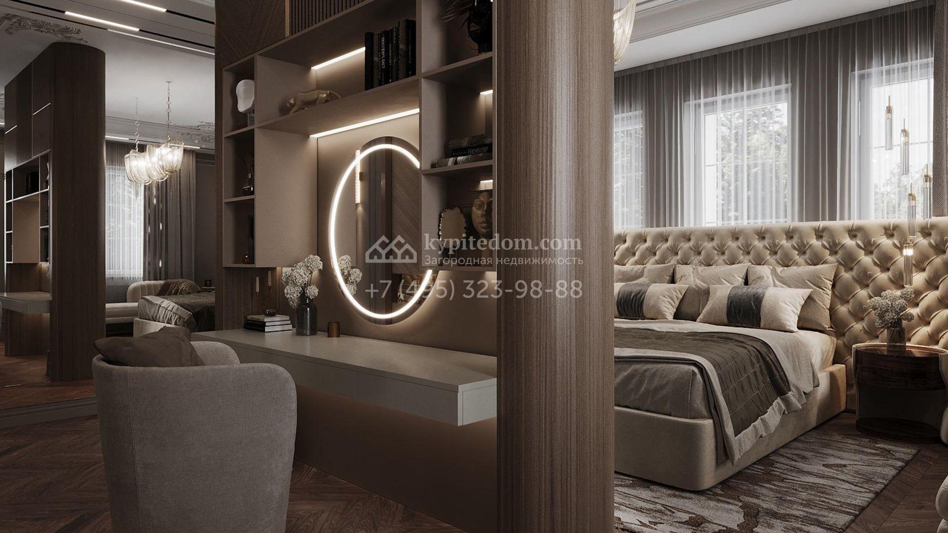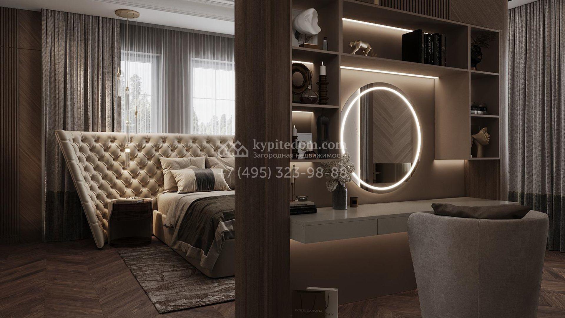 В особняке можно разместить просторный холл с большой парадной лестницей, уютную гостиную, функциональную кухню с островом, столовую, кабинет с камином, 5 спален, комнату отдыха, вместительные гардеробные и спа-зону с бассейном, хаммамом и сауной. Для автомобилей предусмотрен отдельностоящий гараж. На территории уже возведены изящный фонтан, ротонда и крытая беседка для барбекю в тёплом кругу семьи и друзей. Вековые сосны, декоративные кустарники, вымощенные дорожки и уличное освещение создают атмосферу уюта и гармонии — осталось только засеять аккуратный газон, чтобы завершить образ идеального имения.