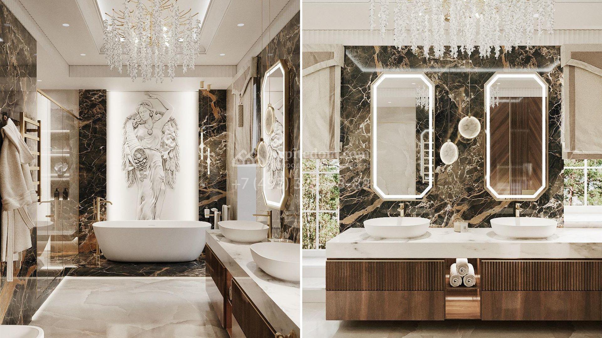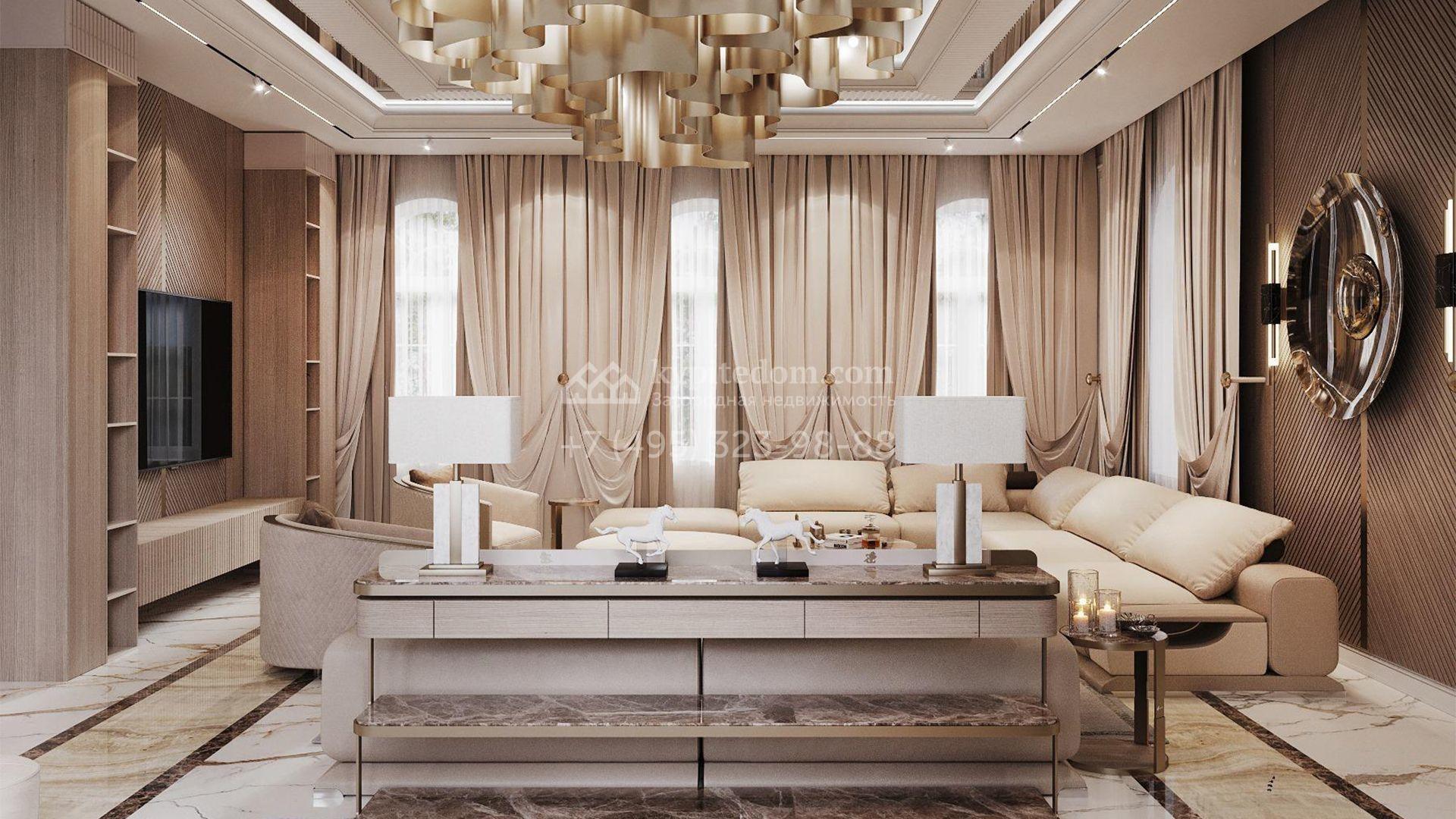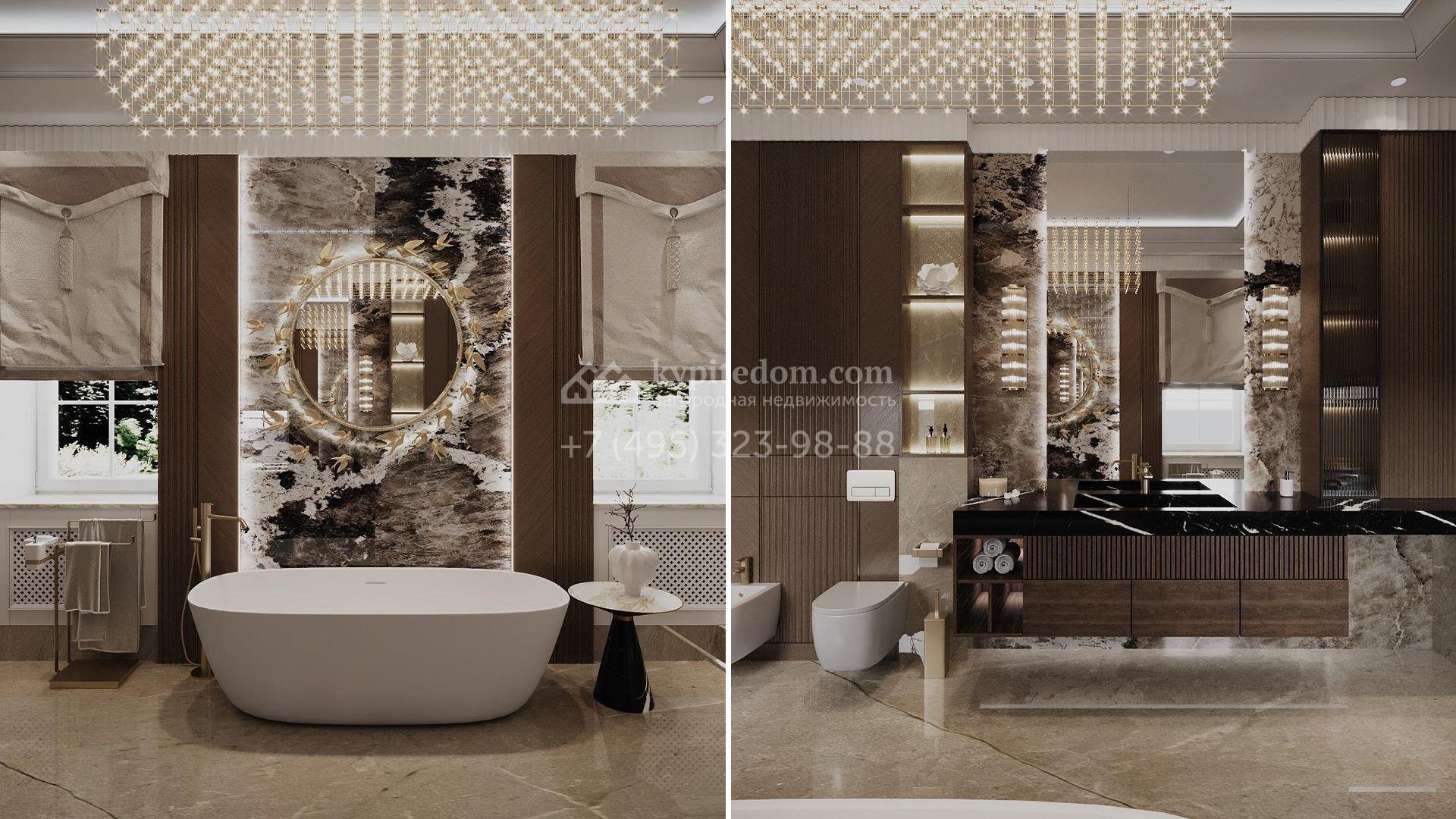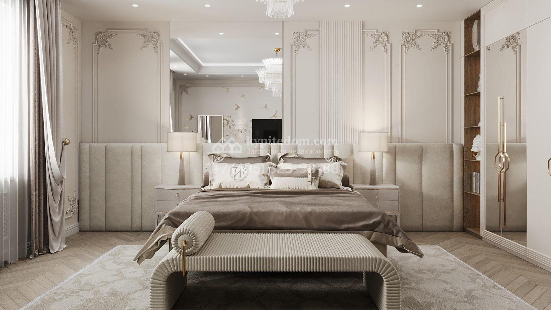 В особняке можно разместить просторный холл с большой парадной лестницей, уютную гостиную, функциональную кухню с островом, столовую, кабинет с камином, 5 спален, комнату отдыха, вместительные гардеробные и спа-зону с бассейном, хаммамом и сауной. Для автомобилей предусмотрен отдельностоящий гараж. На территории уже возведены изящный фонтан, ротонда и крытая беседка для барбекю в тёплом кругу семьи и друзей. Вековые сосны, декоративные кустарники, вымощенные дорожки и уличное освещение создают атмосферу уюта и гармонии — осталось только засеять аккуратный газон, чтобы завершить образ идеального имения.