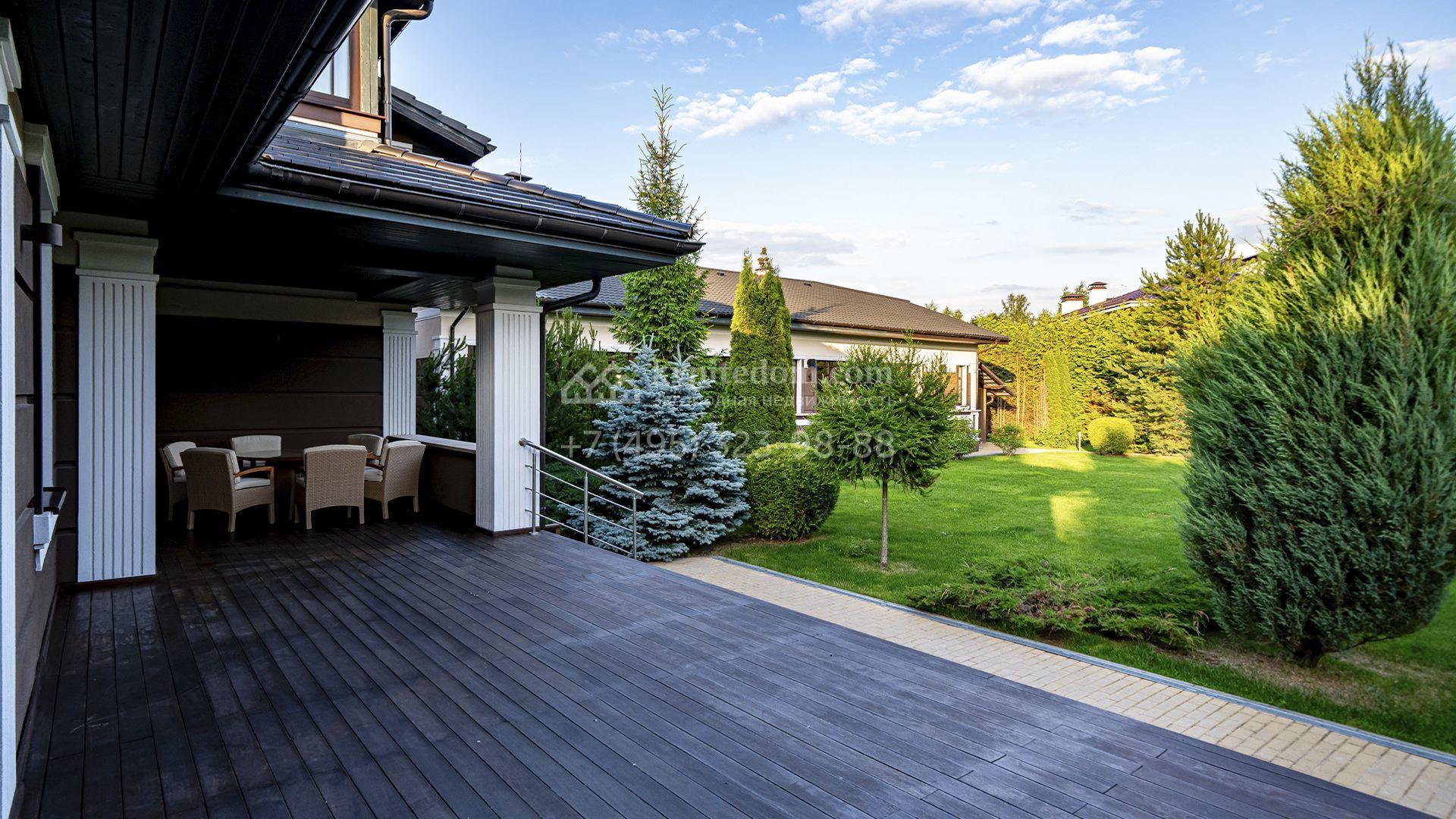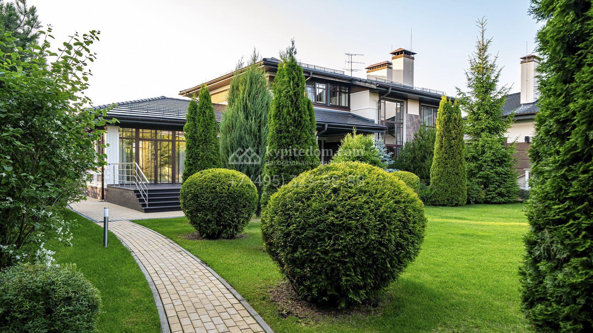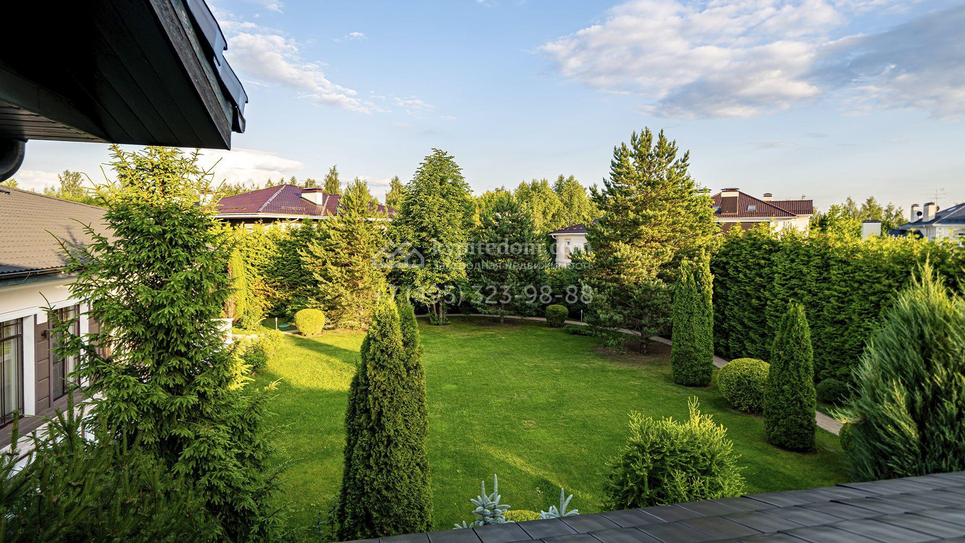 Для машин предусмотрен встроенный двухместный гараж и парковка, рассчитанная на шесть автомобилей. На участке вдохните запах свежескошенной травы, прогуливаясь по мощёным дорожкам в тени высоких деревьев, и любуйтесь декоративными кустарниками и цветами у дома. Вечером можно собраться с близкими в уютном домике-барбекю с мангалом, казаном и большим обеденным столом, наслаждаясь тёплой атмосферой под мягкой уличной подсветкой.