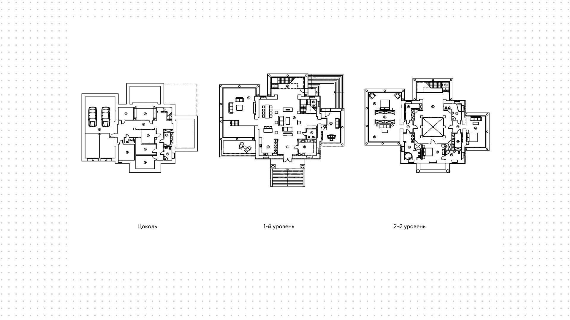 2-й уровень: спальня с будуаром, 2-мя гардеробными и санузлом, спальня с гардеробной, санузлом и выходом на балкон, спальня с гардеробной и санузлом.