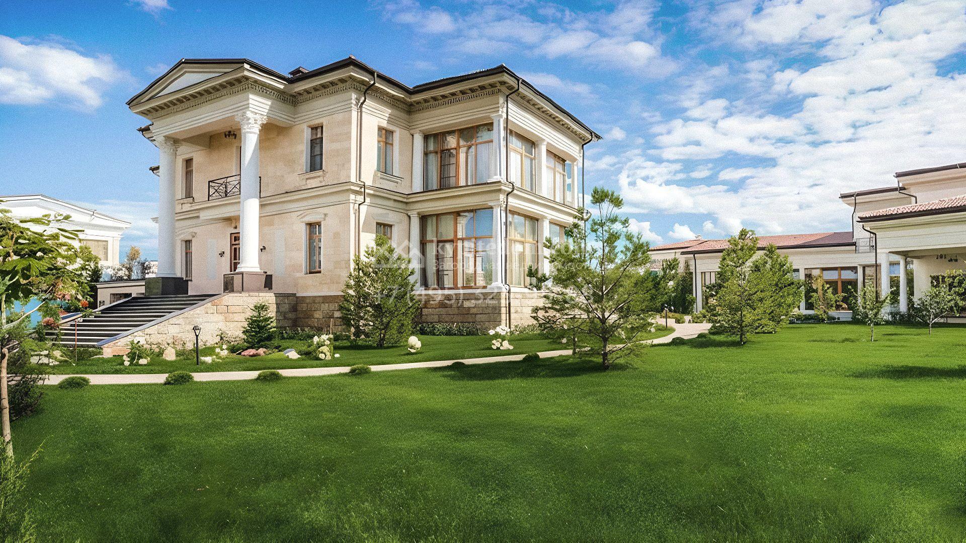 Главный дом, цоколь: кухня, 2 спальни, 2 санузла, винный погреб, постирочная, котельная, гараж на 4 машины.