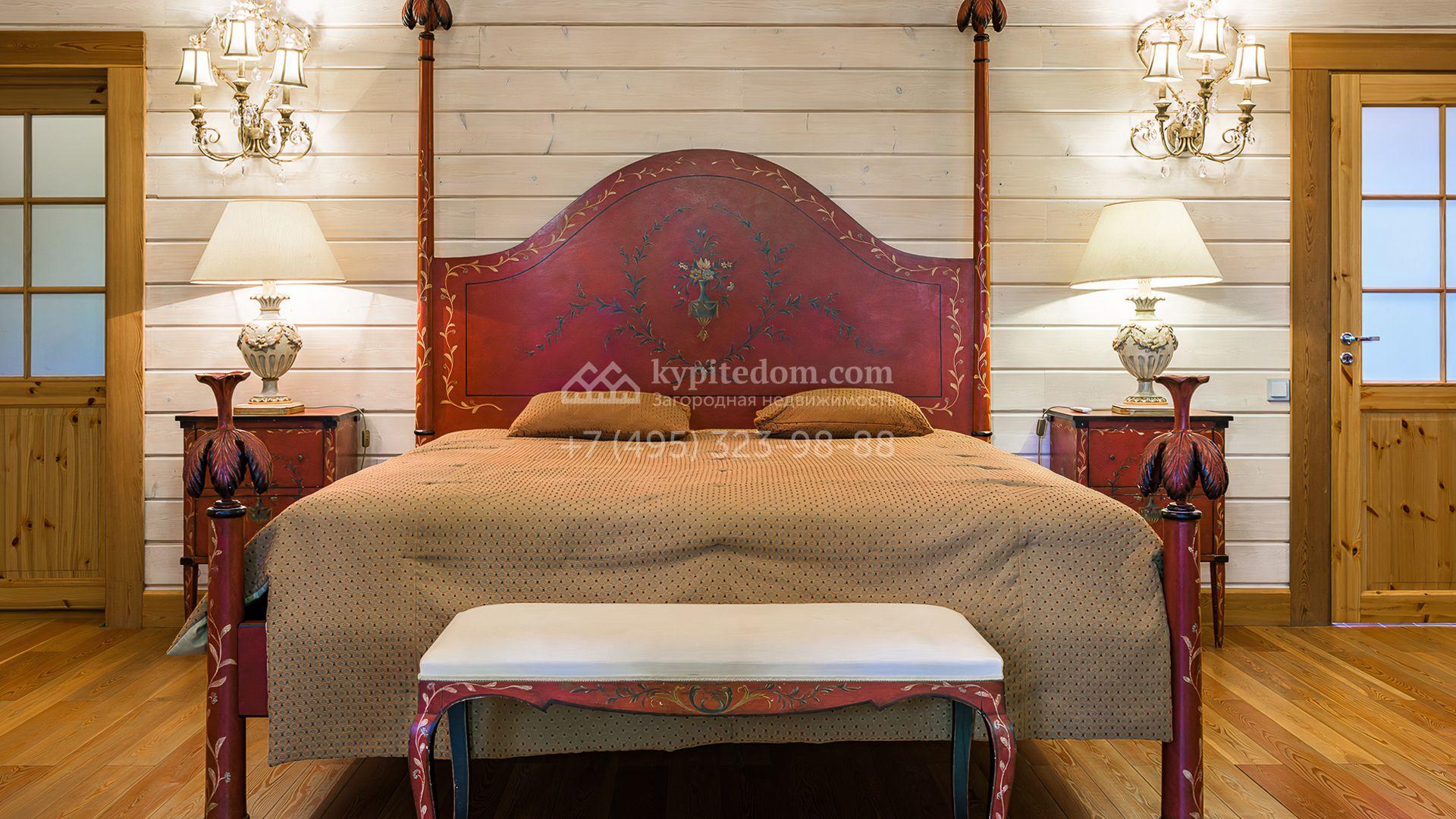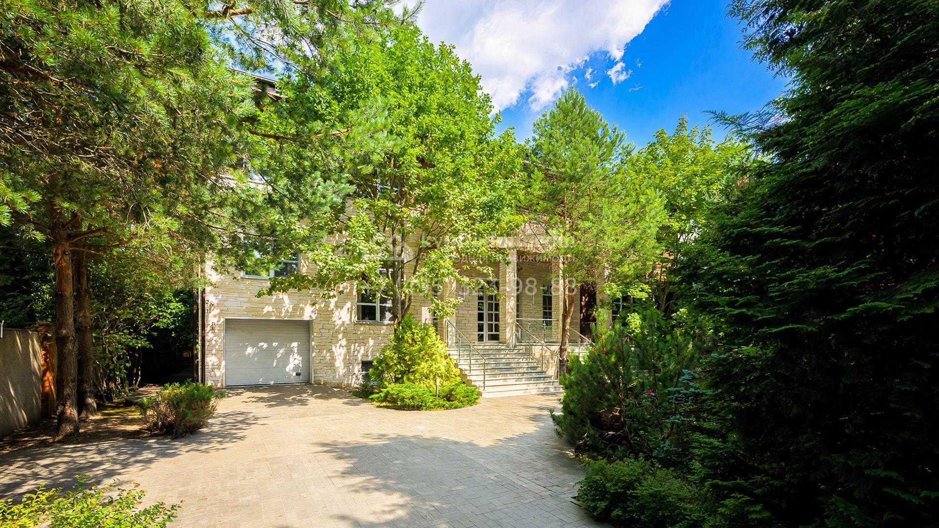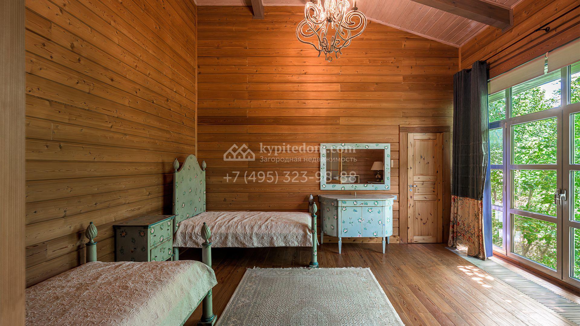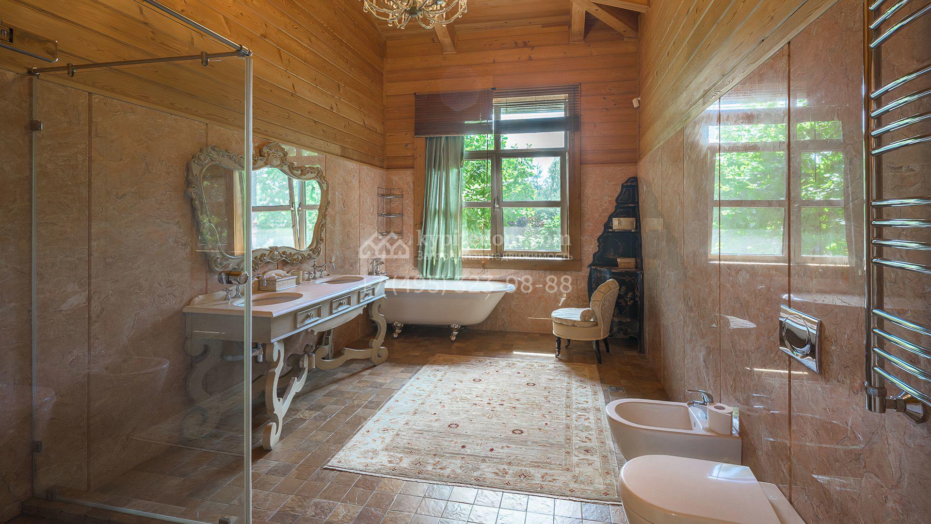 Загородный дом площадью 940 м² расположен на просторном участке 30 соток с собственным выходом к озеру. Фасад выполнен в современном американском стиле и облицован плиткой, имитирующей каменную кладку, и деревом. В отделке интерьра использованы теплые оттенки и натуральные материалы — канадский кедр, гранит, мрамор. Из больших окон открывается вид на живописный участок с березами, соснами, каштанами, цветущими декоративными кустарниками и цветниками. Центр притяжения коттеджа — уютная гостиная-столовая с камином, над которым висит зеркало ручной работы в резной раме. В резиденции разместили 4 спальни, кухню с выходом на террасу, кинотеатр, гараж на 2 машины и блок для персонала с отдельным входом. Расслабиться можно в SPA-зоне с бассейном, сауной и массажным кабинетом. На участке выполнен ландшафтный дизайн и обустроен собственный пирс.