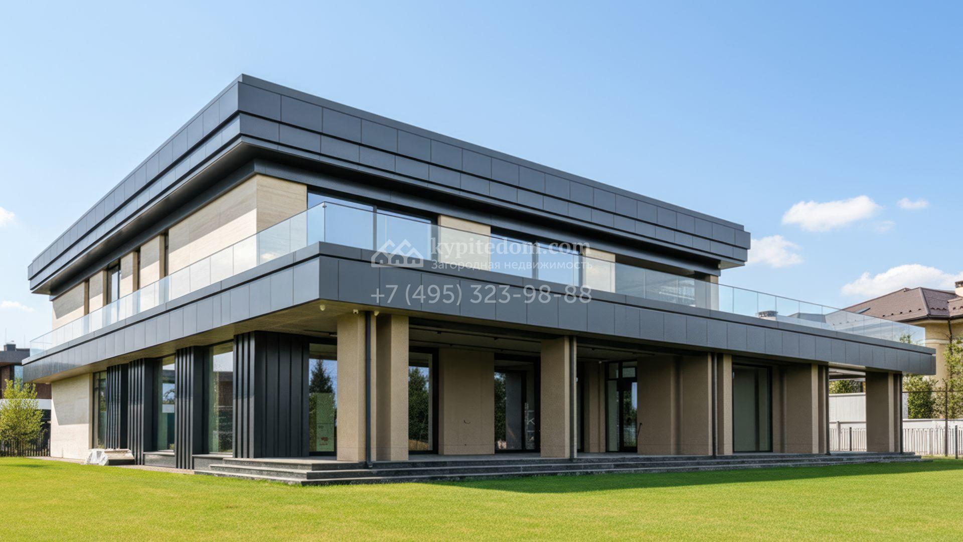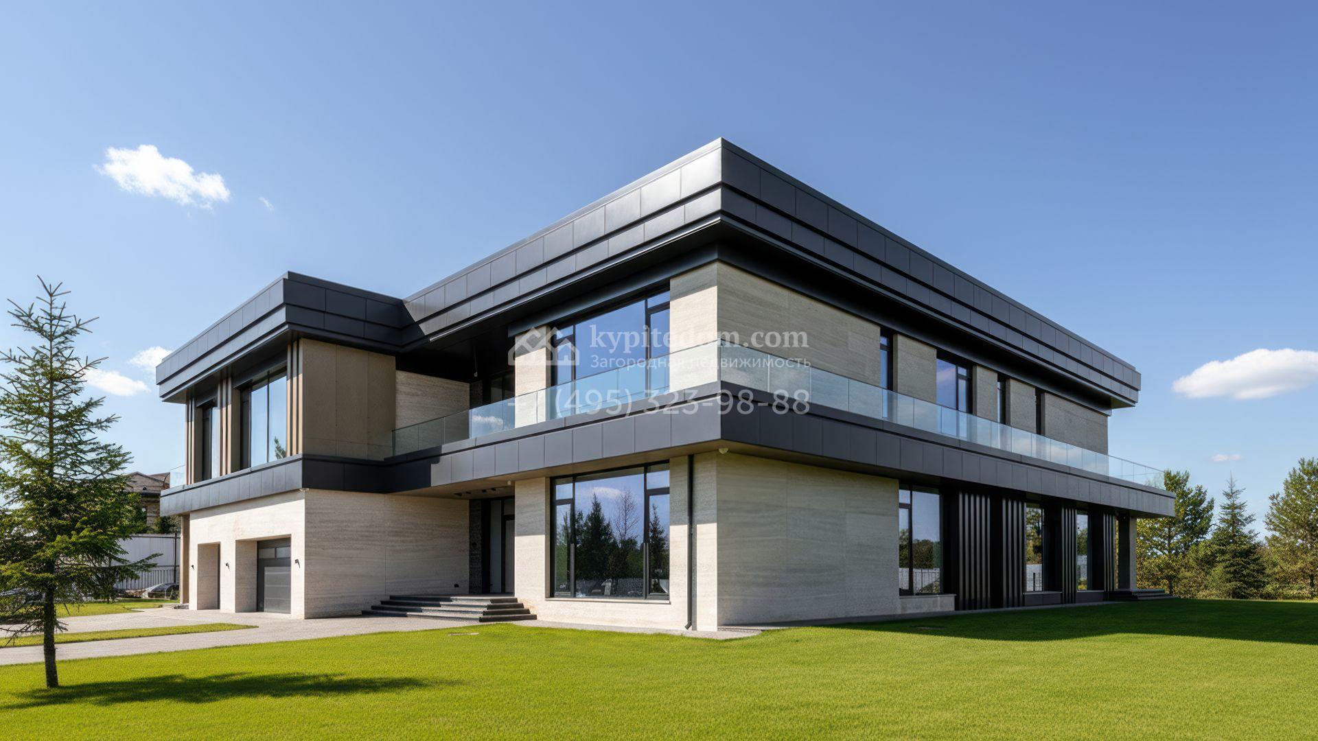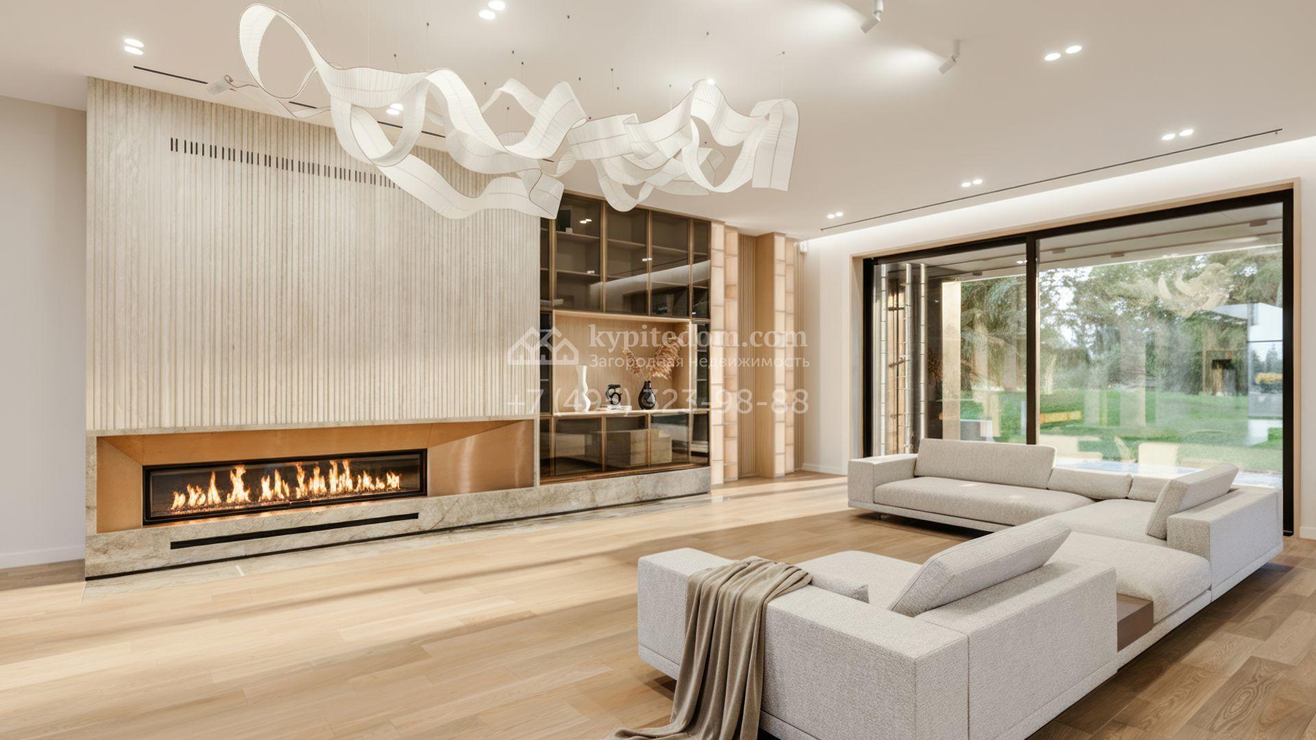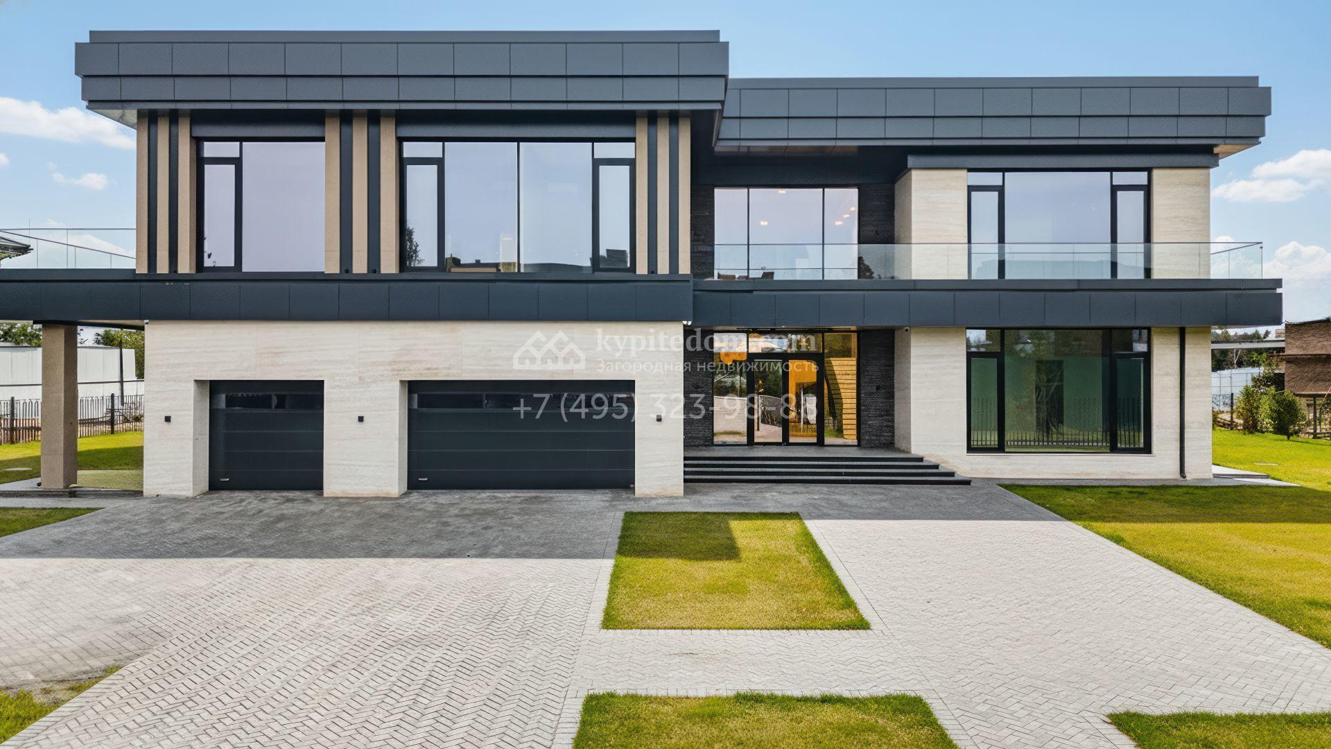 Загородная резиденция в современном стиле площадью 1900 м² расположена на полевом участке 35,6 соток. Фасад сочетает светлый камень и тёплую древесную отделку, подчеркивая архитектурный ритм и геометрию объёмов. Чёткие вертикали, вытянутый карниз с подсветкой и крупные оконные проёмы формируют выразительный и цельный образ, наполняя интерьеры светом и создавая ощущение открытого пространства.