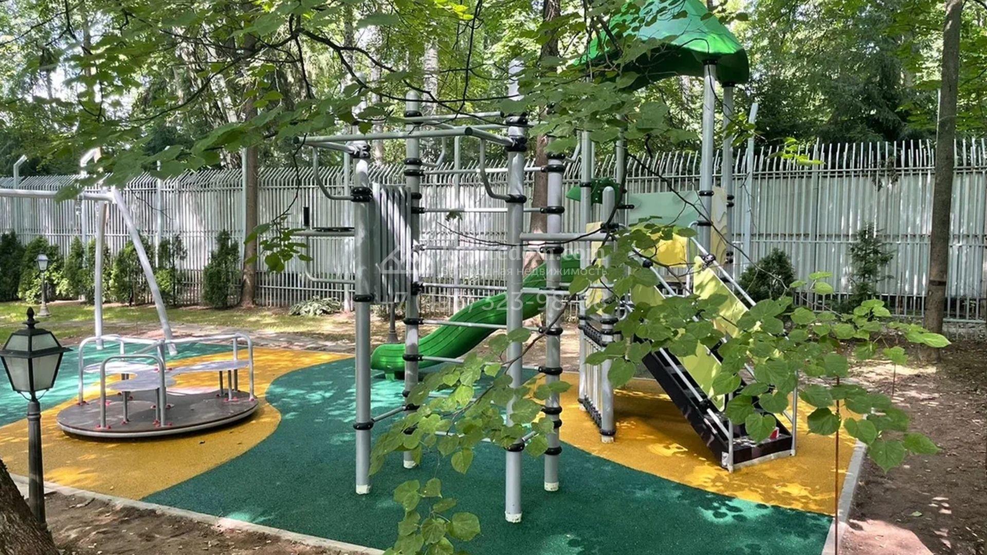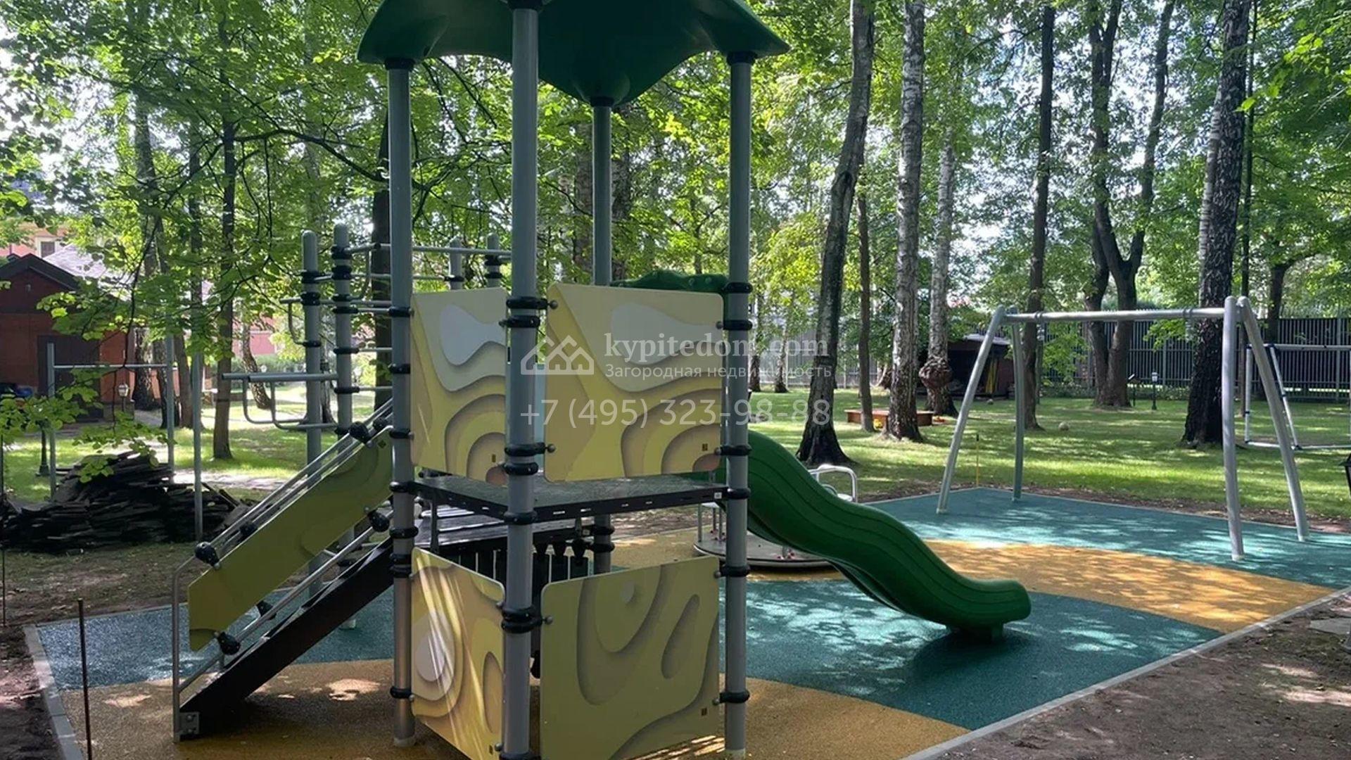Флигели соединены зоной для отдыха с бассейном, сауной и тренажерным залом. На втором этаже бильярдная с камином и выход на крышу в летнее патио. Предусмотрены служебные помещения и комнаты персонала, а также гараж на 4 автомобиля. На охраняемой территории со смешанным лесом разместили детскую площадку и зону отдыха.