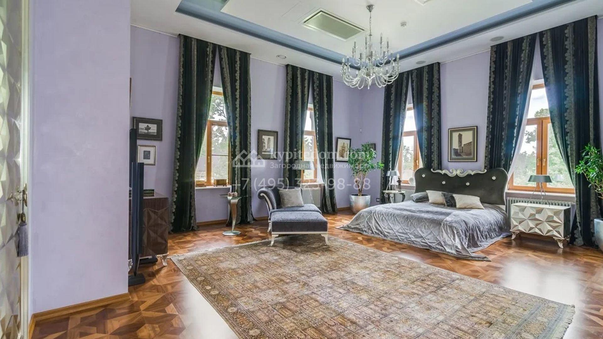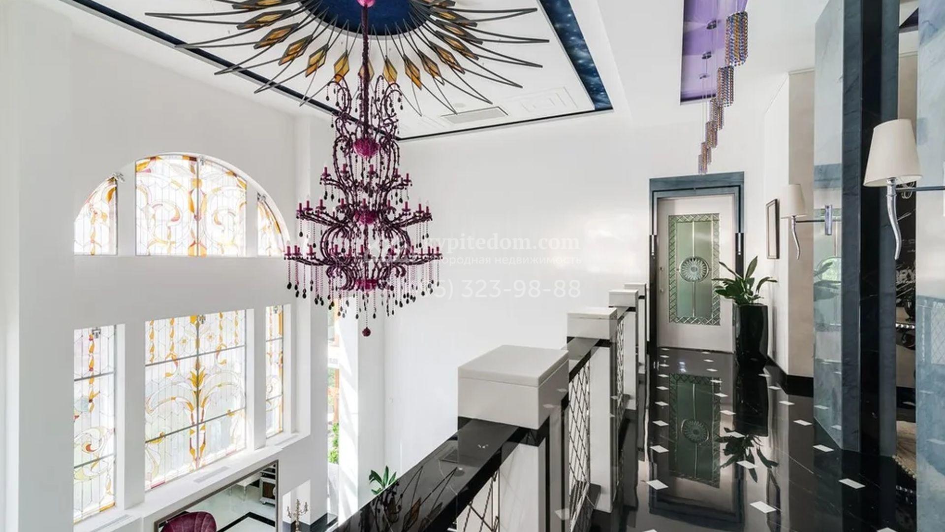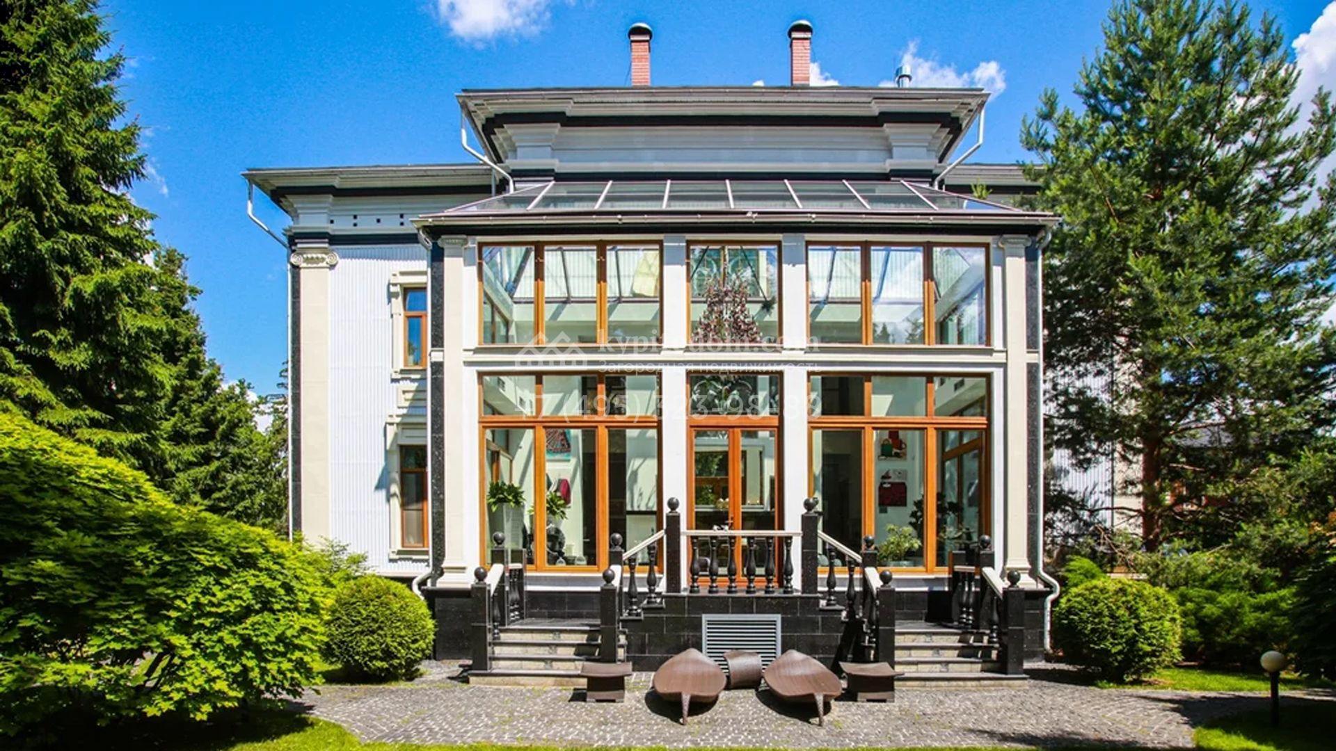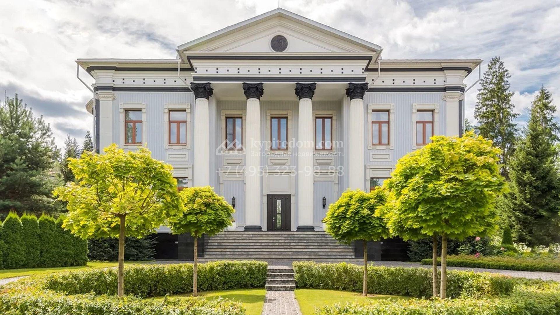 Представительная резиденция в классическом стиле площадью 930 м² расположен на участке 32 сотки с лесными деревьями. Фасад дома украшен античным портиком и колоннами, со стороны участка к дому примыкает остекленный зимний сад. Интерьер резиденции оформлен в неоклассическом стиле с использованием дорогих натуральных материалов. Центр притяжения дома — двухсветная гостиная с бордовой яркой люстрой. Цокольный этаж отведен под SPA-зону с крио-сауной и хамамом, кинозал и блок для персонала. На втором этаже 4 спальни в разных стилях с приватными санузлами и гардеробными комнатами. На участке дорожки вымощены брусчаткой, устроена зона барбекю, проведена подсветка. Перед домом посадили декоративные кустарники и шаровидные клены.