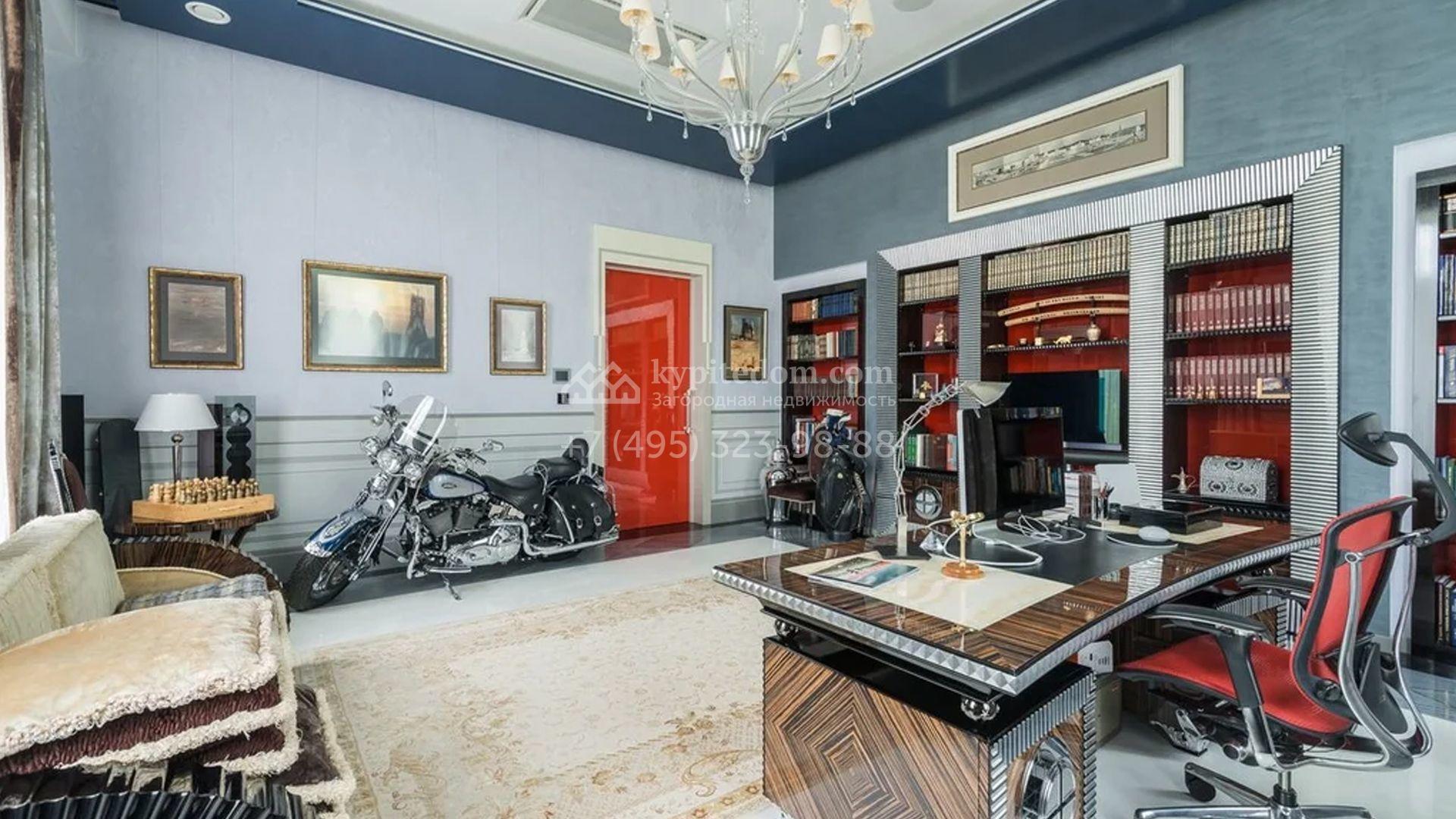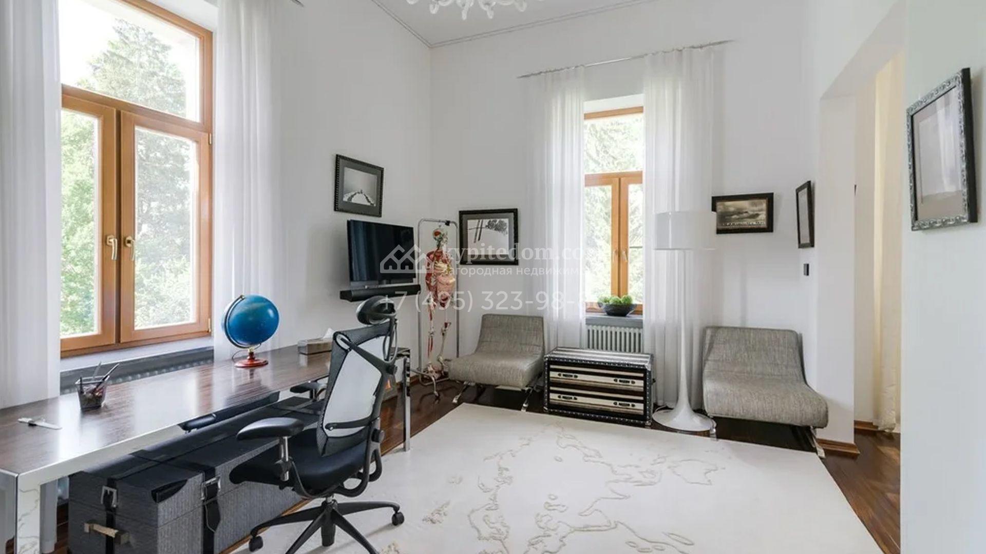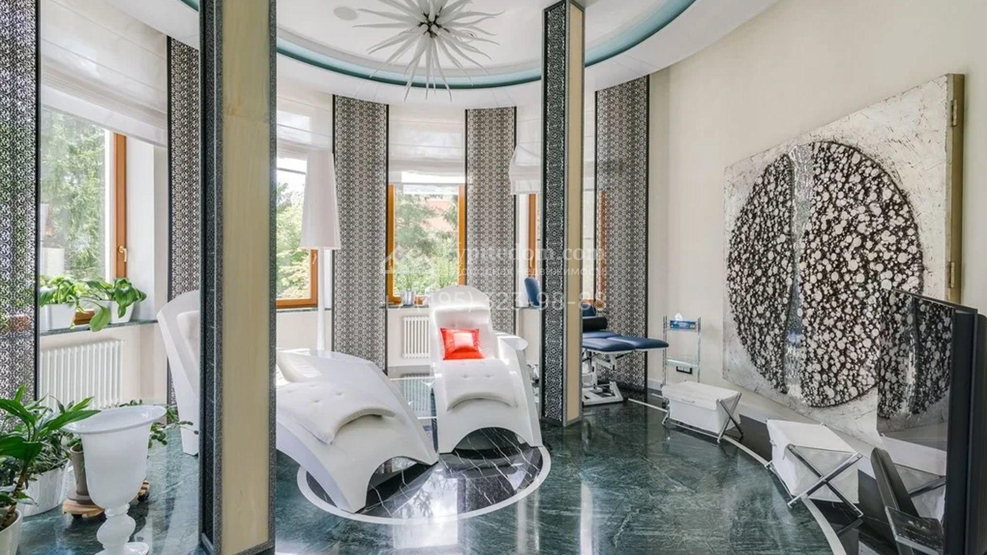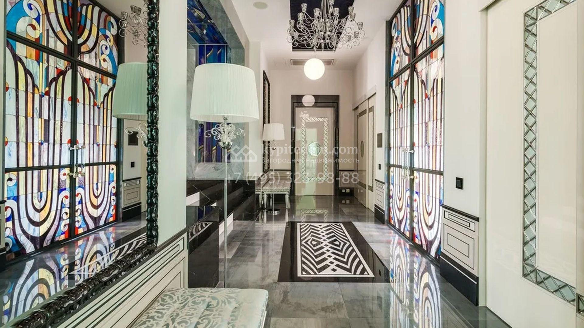 Представительная резиденция в классическом стиле площадью 930 м² расположен на участке 32 сотки с лесными деревьями. Фасад дома украшен античным портиком и колоннами, со стороны участка к дому примыкает остекленный зимний сад. Интерьер резиденции оформлен в неоклассическом стиле с использованием дорогих натуральных материалов. Центр притяжения дома — двухсветная гостиная с бордовой яркой люстрой. Цокольный этаж отведен под SPA-зону с крио-сауной и хамамом, кинозал и блок для персонала. На втором этаже 4 спальни в разных стилях с приватными санузлами и гардеробными комнатами. На участке дорожки вымощены брусчаткой, устроена зона барбекю, проведена подсветка. Перед домом посадили декоративные кустарники и шаровидные клены.