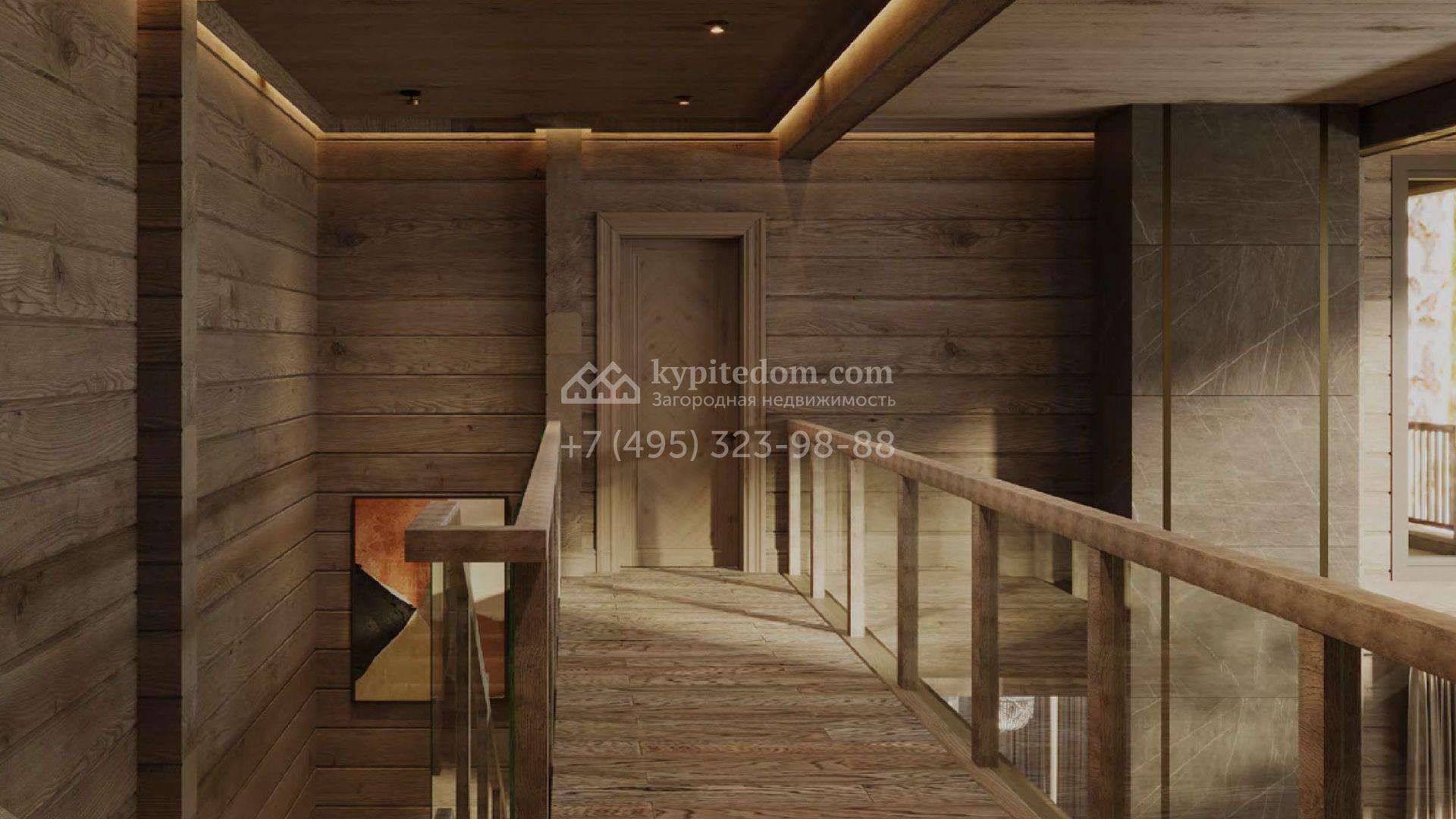 Загородный дом по проекту «Весна» площадью 550 м² расположен на участке 21 сотка в реликтовом лесу. Фасад здания с большими панорамными окнами выполнен из клееного бруса увеличенного размера и декорирован подсветкой. В отделке современного интерьера сохранена фактура дерева, создающая домашний уют. Резиденция включает 4 спальни, просторную гостиную с камином и вторым светом, кухню-столовую и террасу, на которой можно обустроить зону барбекю. На участке выполнен ландшафтный дизайн в стиле английского сада.