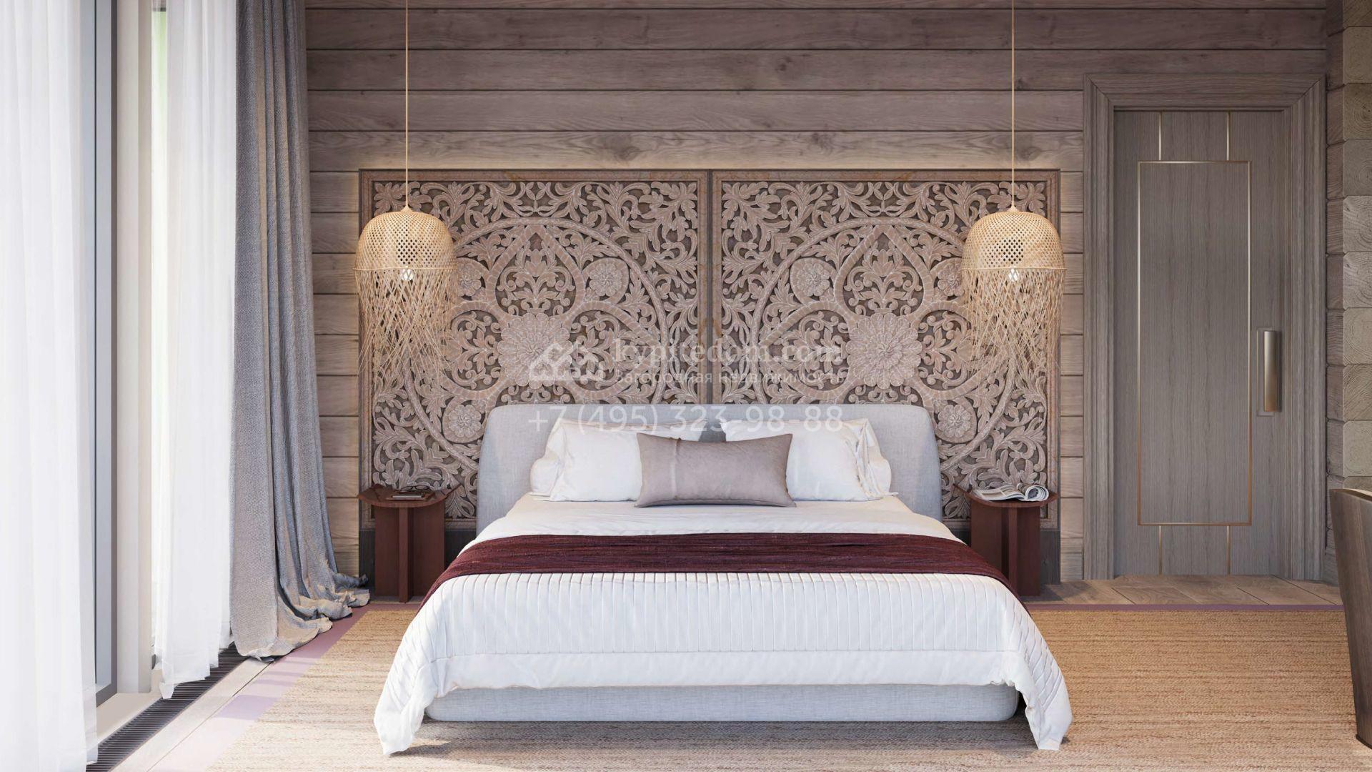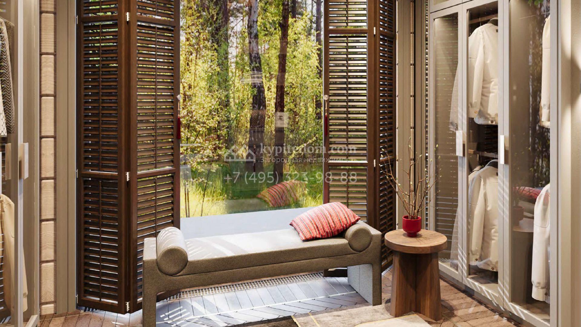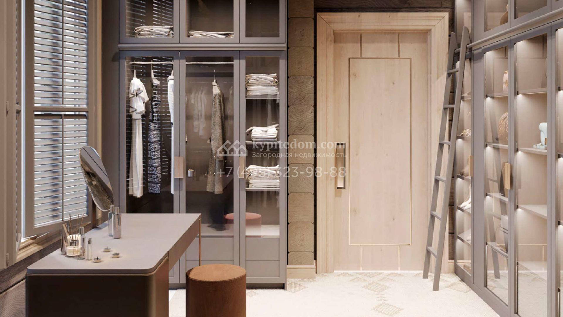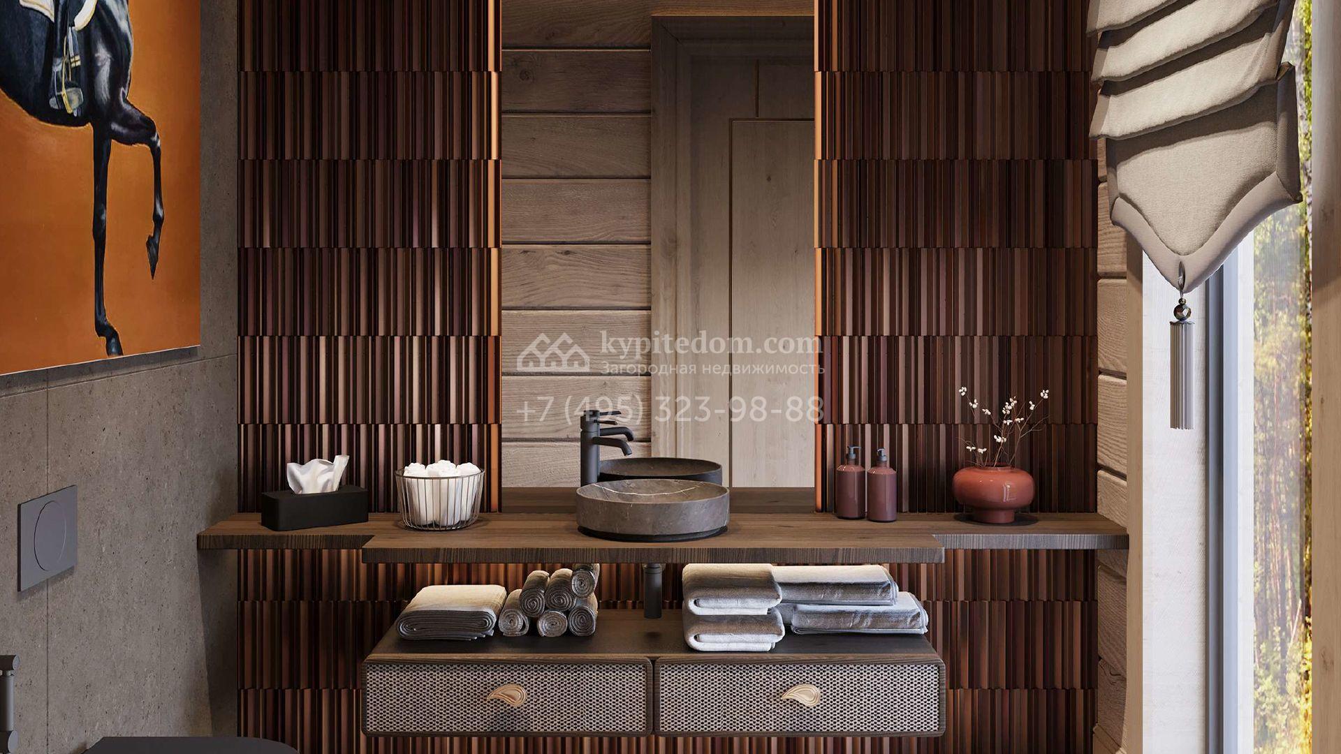 Загородный дом по проекту «Весна» площадью 550 м² расположен на участке 29 соток в реликтовом лесу. Фасад здания с большими панорамными окнами выполнен из клееного бруса увеличенного размера и декорирован подсветкой. В отделке современного интерьера сохранена фактура дерева, создающая домашний уют. Резиденция включает 5 спален, просторную гостиную с камином и вторым светом, кухню-столовую и террасу, на которой можно обустроить зону барбекю. На участке выполнен ландшафтный дизайн в стиле английского сада.