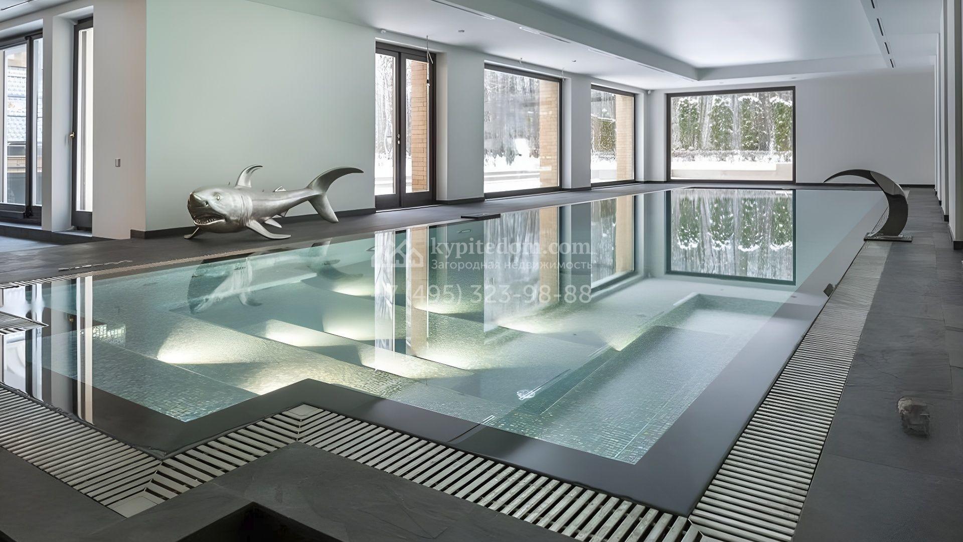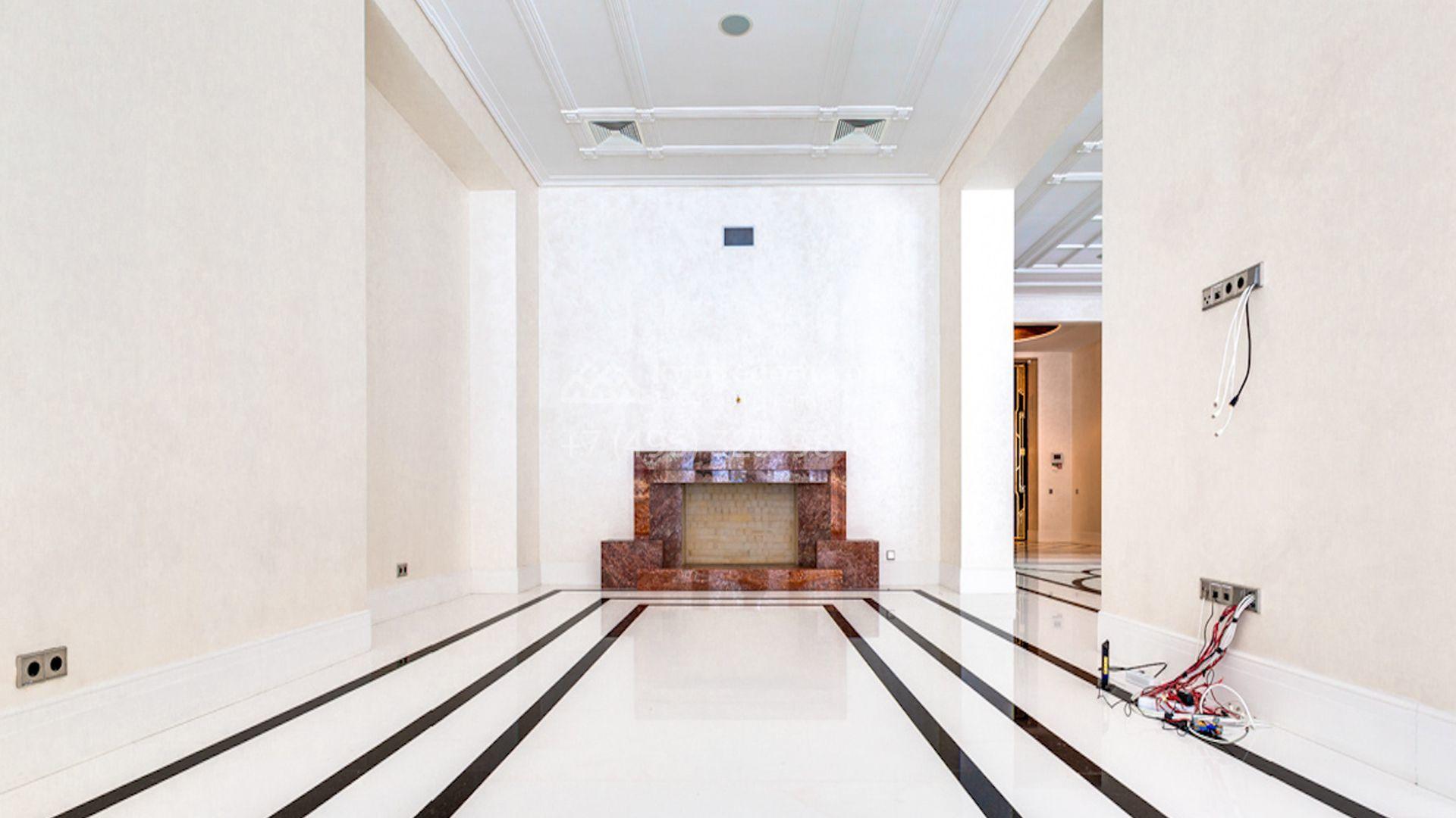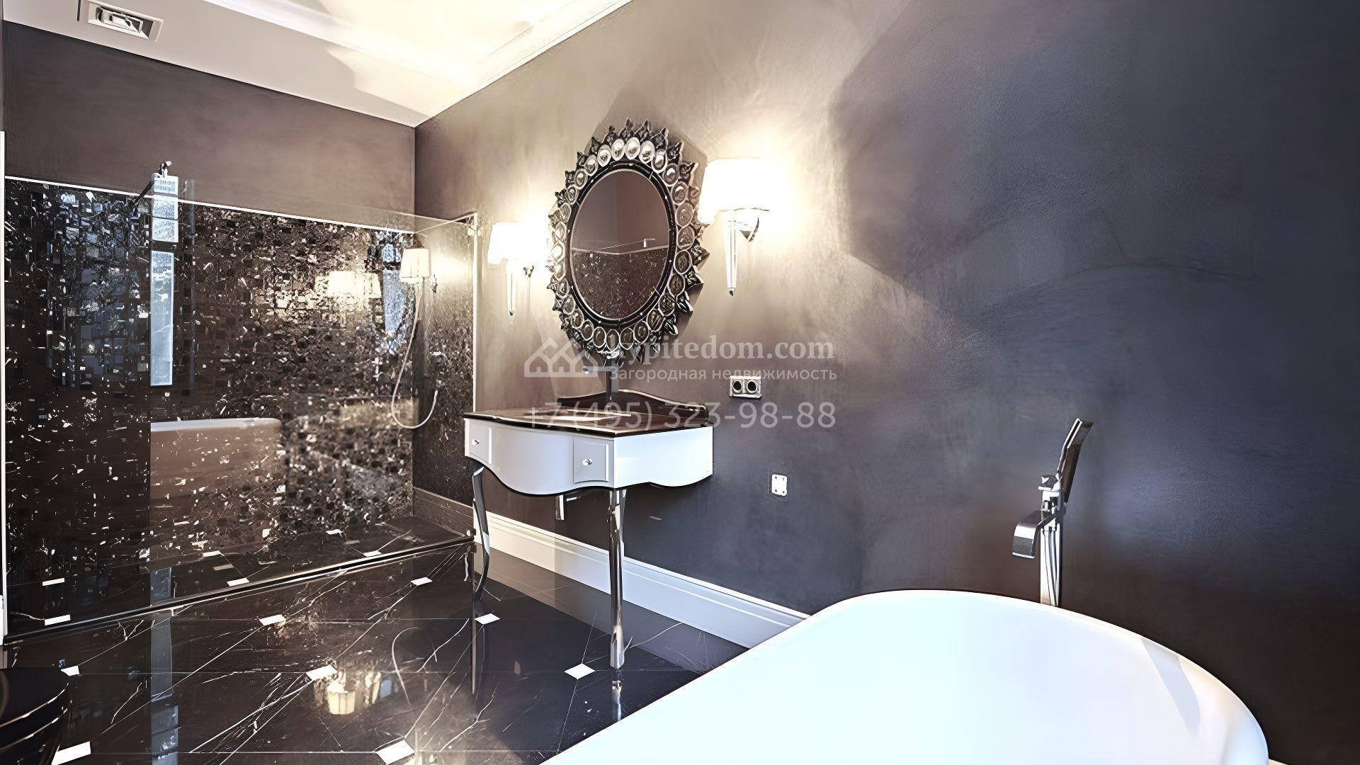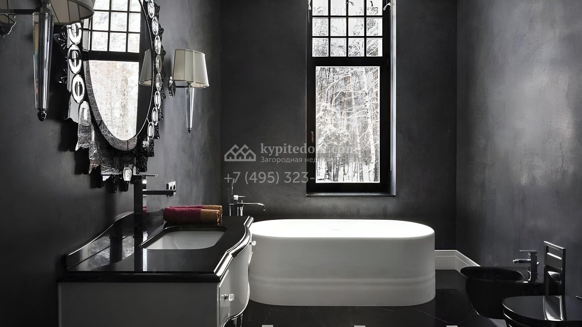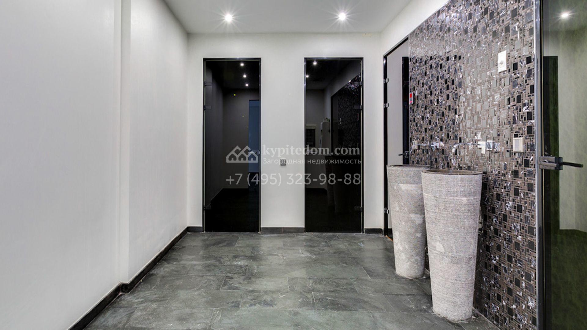 Представительная загородная резиденция площадью 1375 м² расположена на участке 98 соток у леса. Фасад в стиле «модерн» облицован клинкерным кирпичом, украшен рельефами и фресками с цветочным орнаментом. В здание встроен гараж для 3 машин. Интерьер резиденции выполнили в современном стиле в светлых тонах с использованием натурального камня и широкоформатного керамогранита. Кухня и санузлы дома оборудованы техникой лучших европейских брендов. Точкой притяжения дома служит гостиная с камином в стиле модерн — он встроен в резную колонну. В СПА-зоне оборудовали большой бассейн с сауной и соляной комнатой. На цокольном этаже разместили винную комнату и спальни персонала. На участке выполнили ландшафтный дизайн.