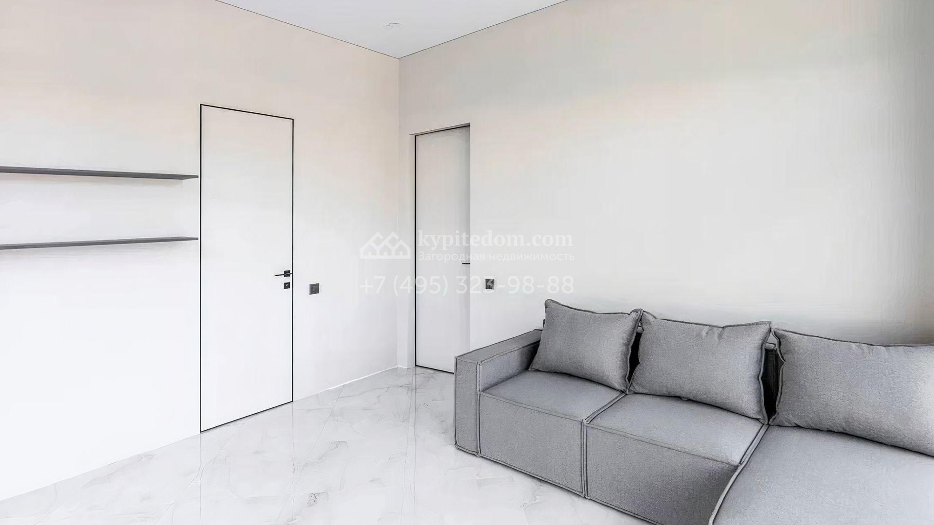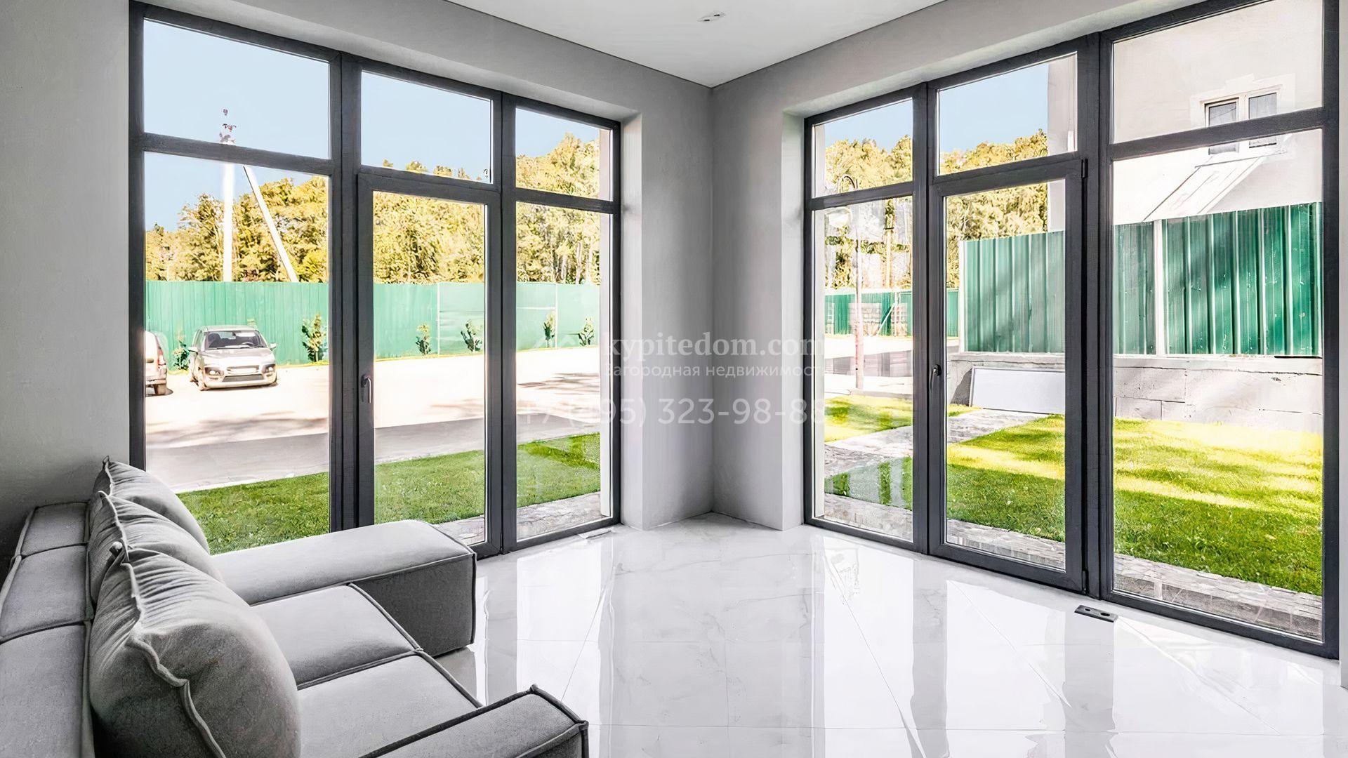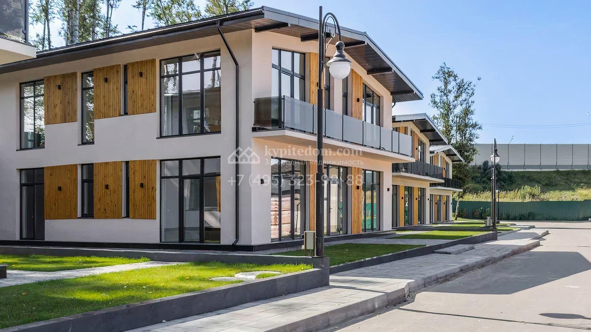 Загородный дом c отделкой под ключ площадью 257 м² построен на уютном участке 7 соток. Фасад двухэтажного здания из кирпича выполнен в современном стиле, облицован штукатуркой и декорирован подсветкой. Благодаря большим окнам внутреннее пространство наполнено воздухом и светом. В резиденции можно организовать несколько спален, также предусмотрены гостиная, кухня и зона столовой. На участке выполнен ландшафтный дизайн, вымощены дорожки, засеян газон и установлено уличное освещение.