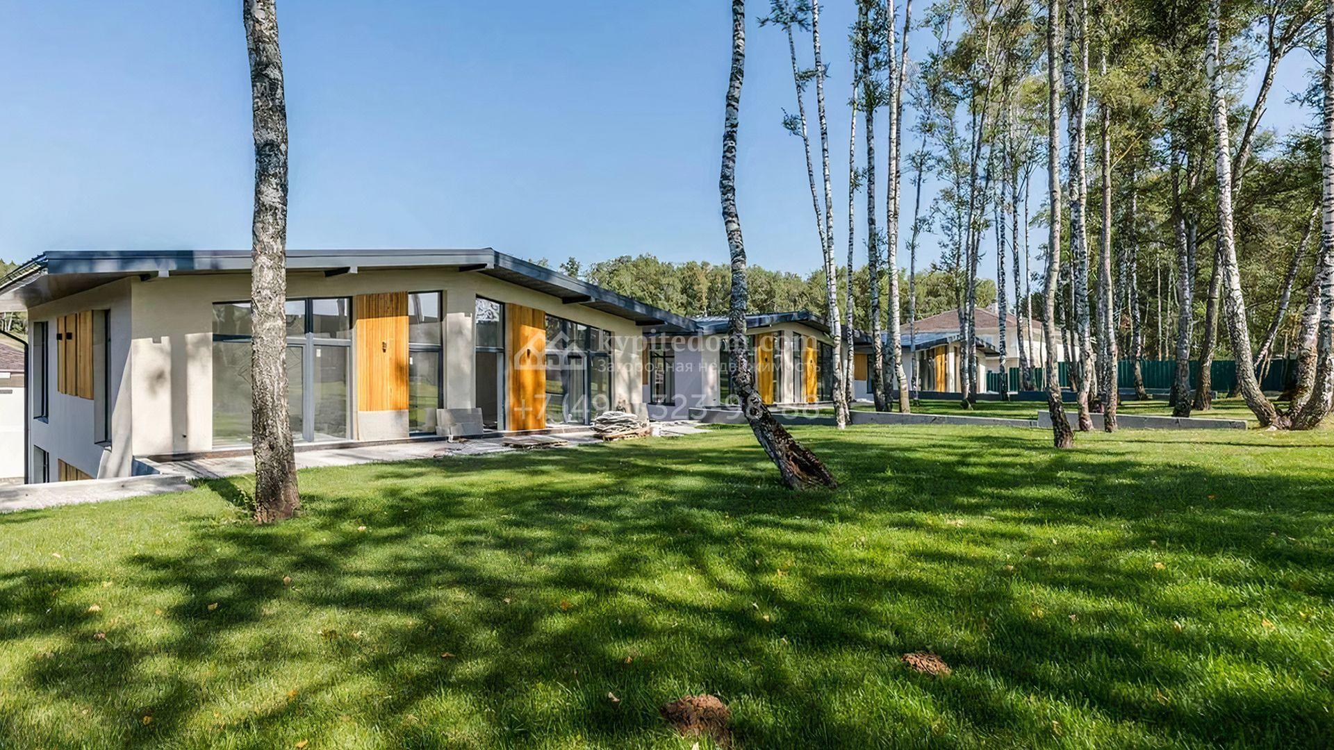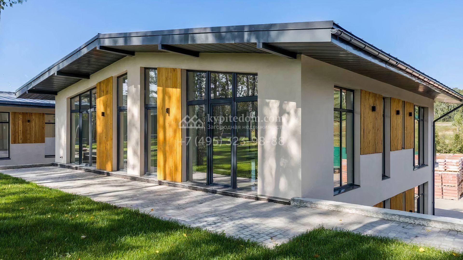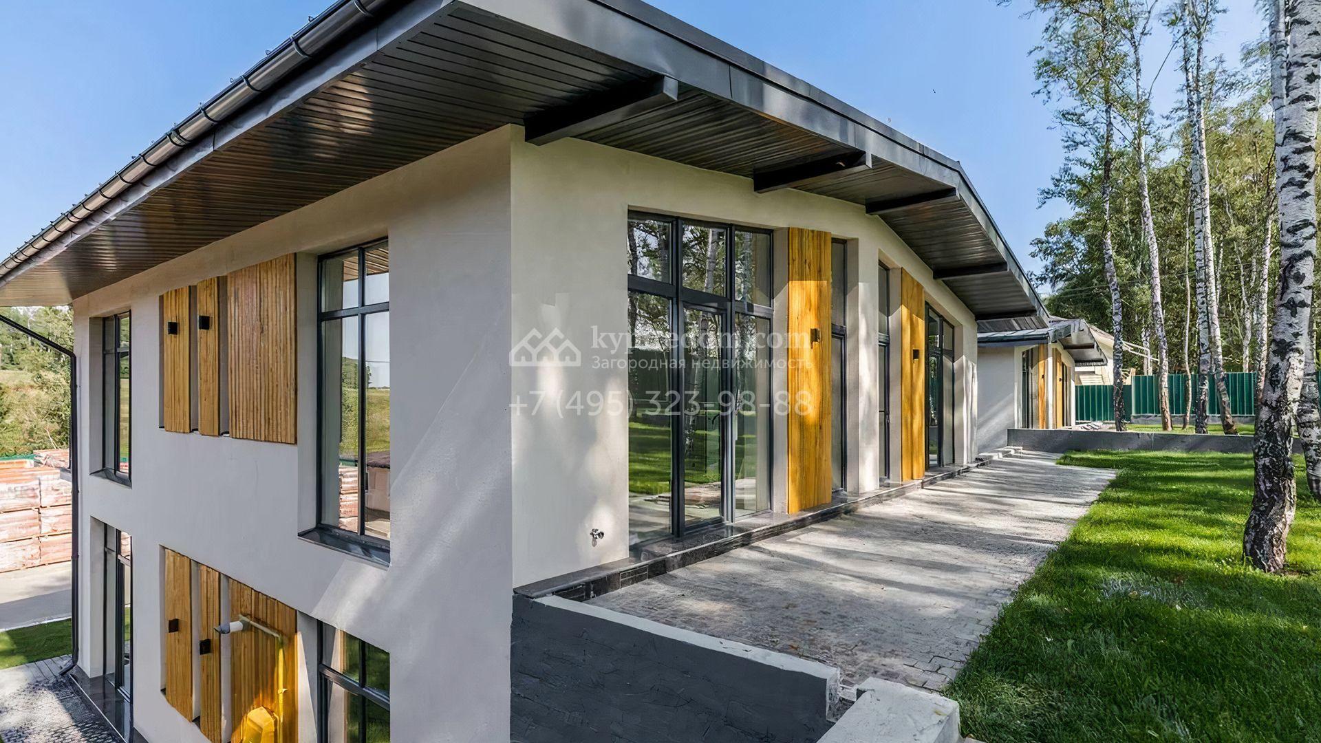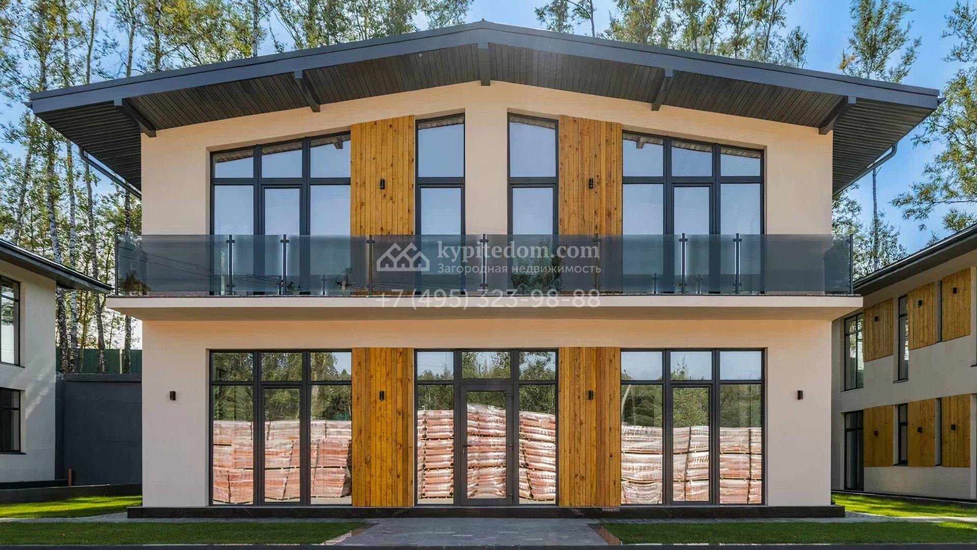 Загородный дом c отделкой white box площадью 257 м² построен на уютном участке 7 соток. Фасад двухэтажного здания из кирпича выполнен в современном стиле, облицован штукатуркой и декорирован подсветкой. Благодаря большим окнам внутреннее пространство наполнено воздухом и светом. В резиденции можно организовать несколько спален, также предусмотрены гостиная, кухня и зона столовой. На участке выполнен ландшафтный дизайн, вымощены дорожки, засеян газон и установлено уличное освещение.