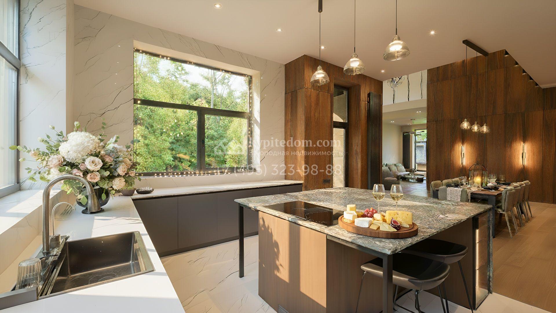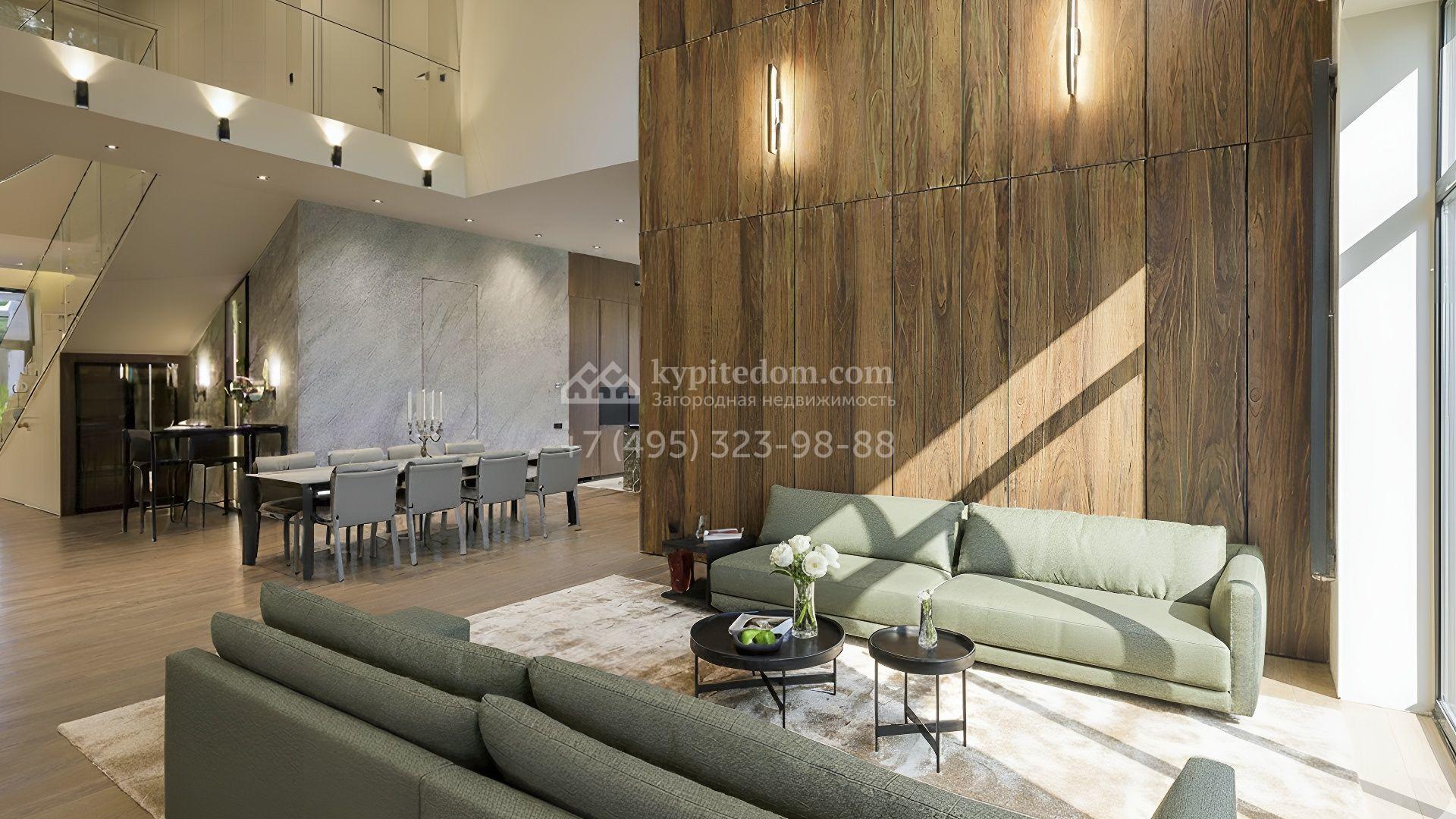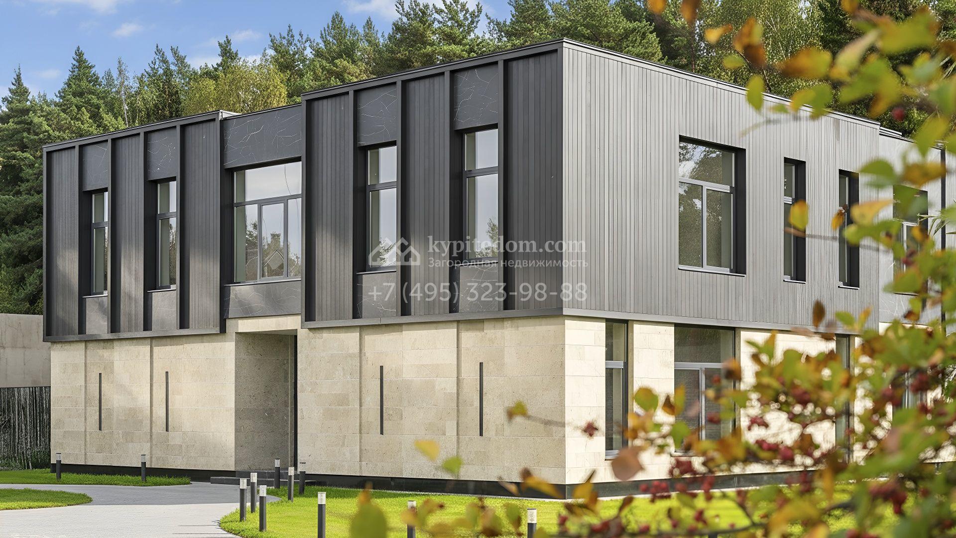 Новый загородный дом площадью 622 м² расположен на прилесном участке 30,2 сотки. В современном дизайне фасада с большими окнами и подсветкой гармонично сочетаются контрастные оттенки и фактуры камня и дерева. Благодаря высоким потолкам и второму свету коттедж заполнен светом и воздухом. Интерьер выдержан в спокойных тонах, поэтому будущим владельцам будет легко подобрать подходящую мебель на свой вкус.