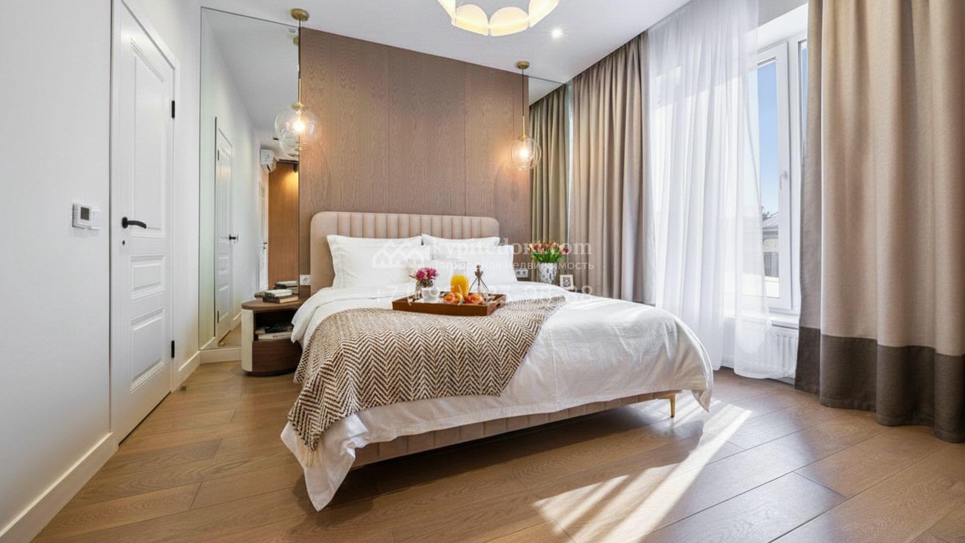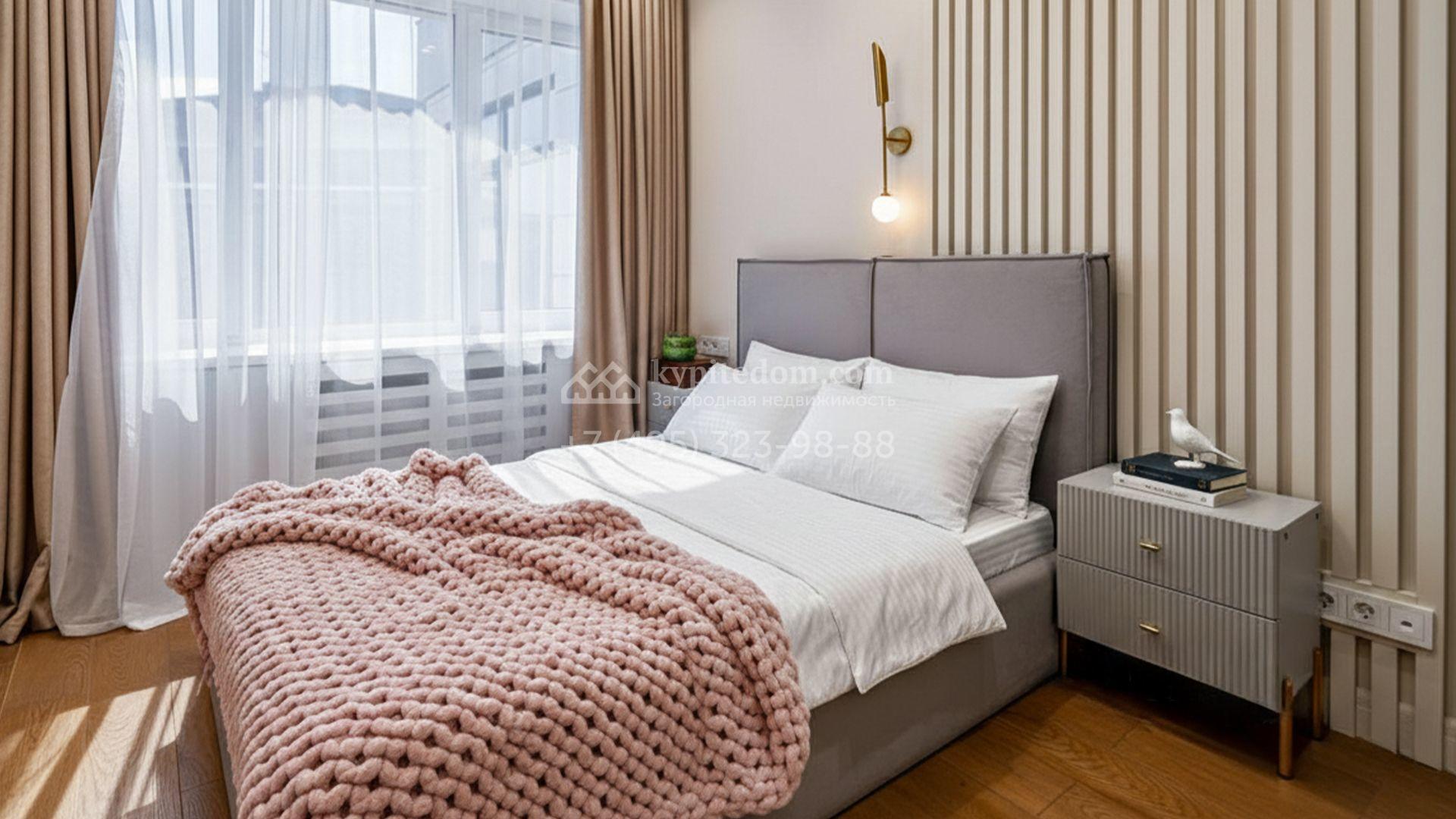 Дизайнерские интерьеры, выполненные в светлой гамме, отделаны с использованием высококачественных материалов, а также полностью укомплектованы комфортной мебелью и встроенной бытовой техникой от ведущих брендов. Система кондиционирования поддерживает идеальный микроклимат в любое время года.