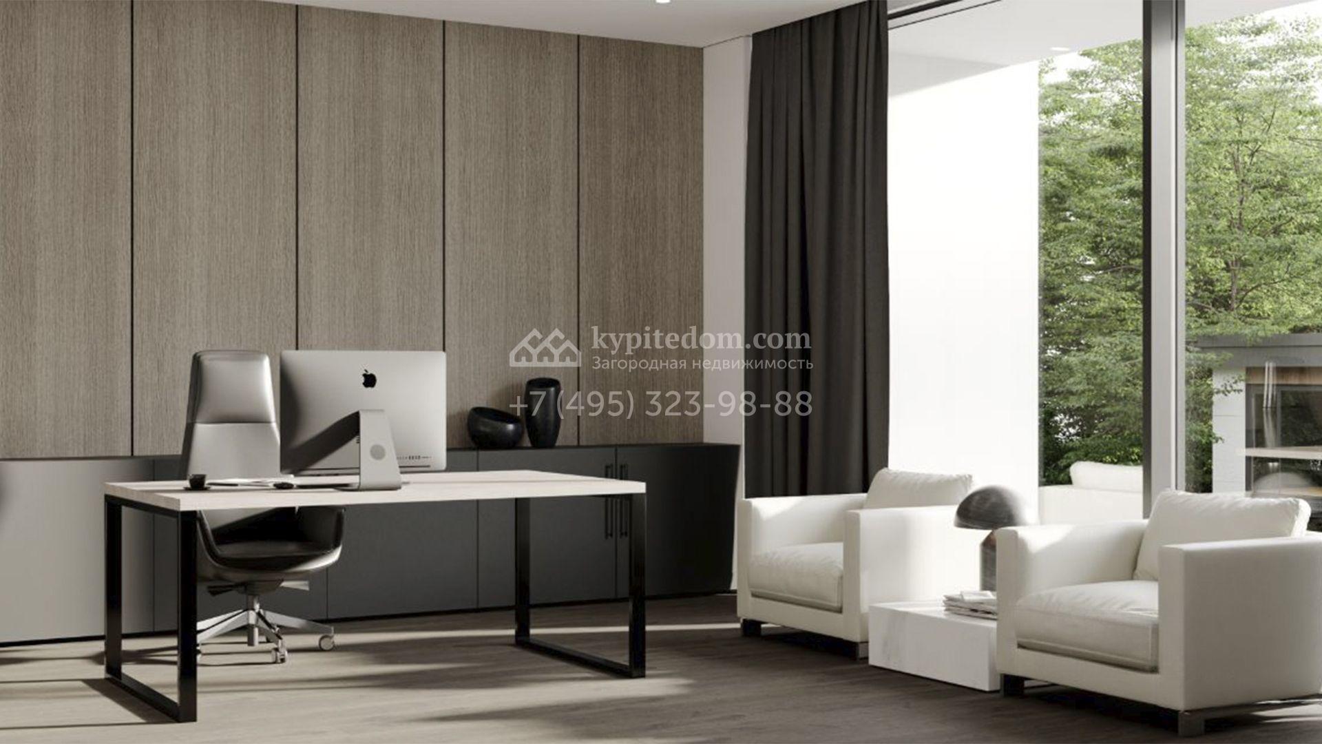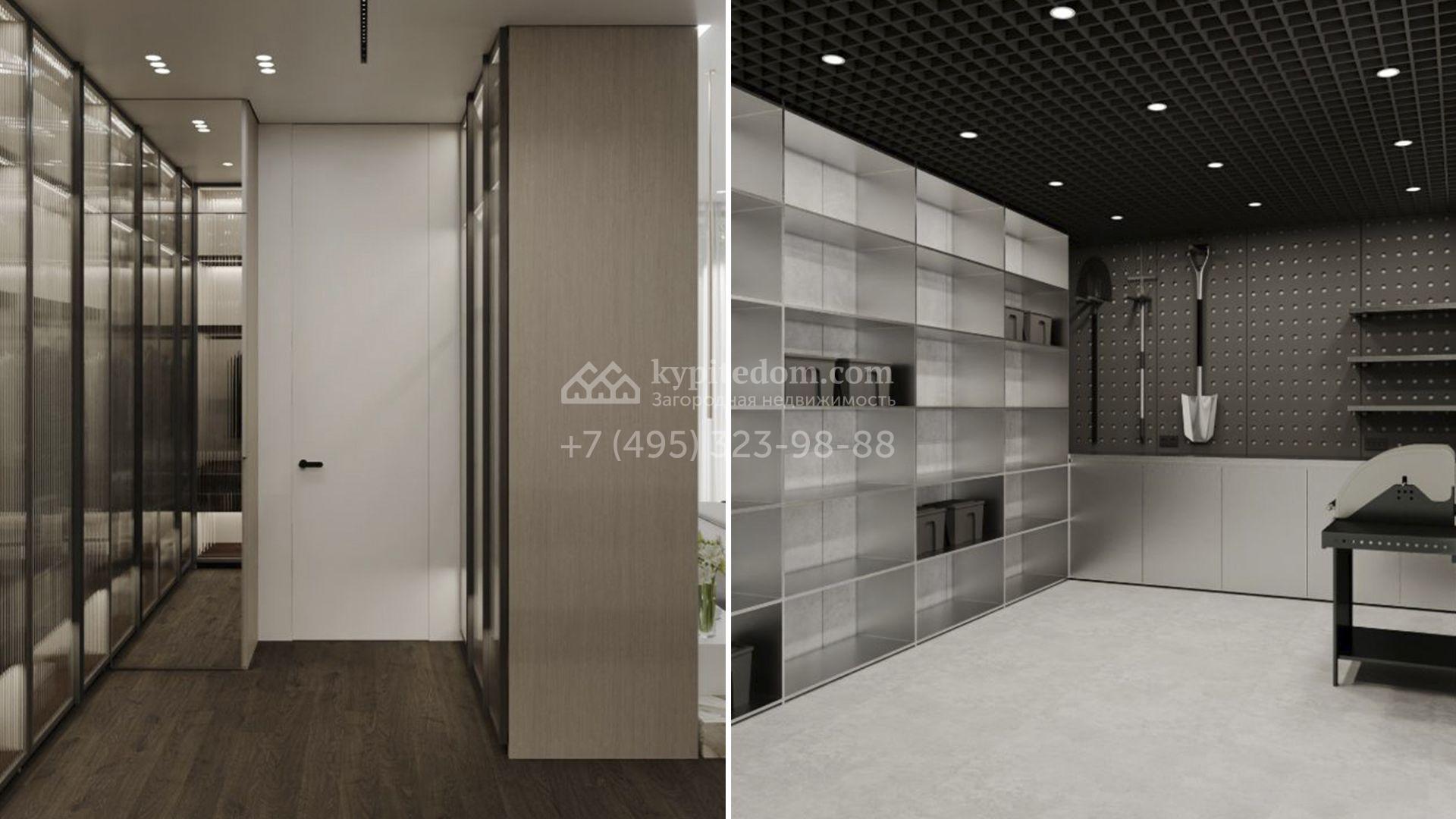 Планировка включает просторную гостиную-кухню-столовую с камином, кабинет, 3 спальни с вместительными гардеробными и террасы для отдыха на свежем воздухе. Оставить автомобили можно во встроенном гараже площадью 58,8 м². Участок благоустроен — аккуратный газон, стройные ели, декоративные кустарники и вымощенные плиткой парковка и входная группа с подогревом создают законченный образ идеального имения.