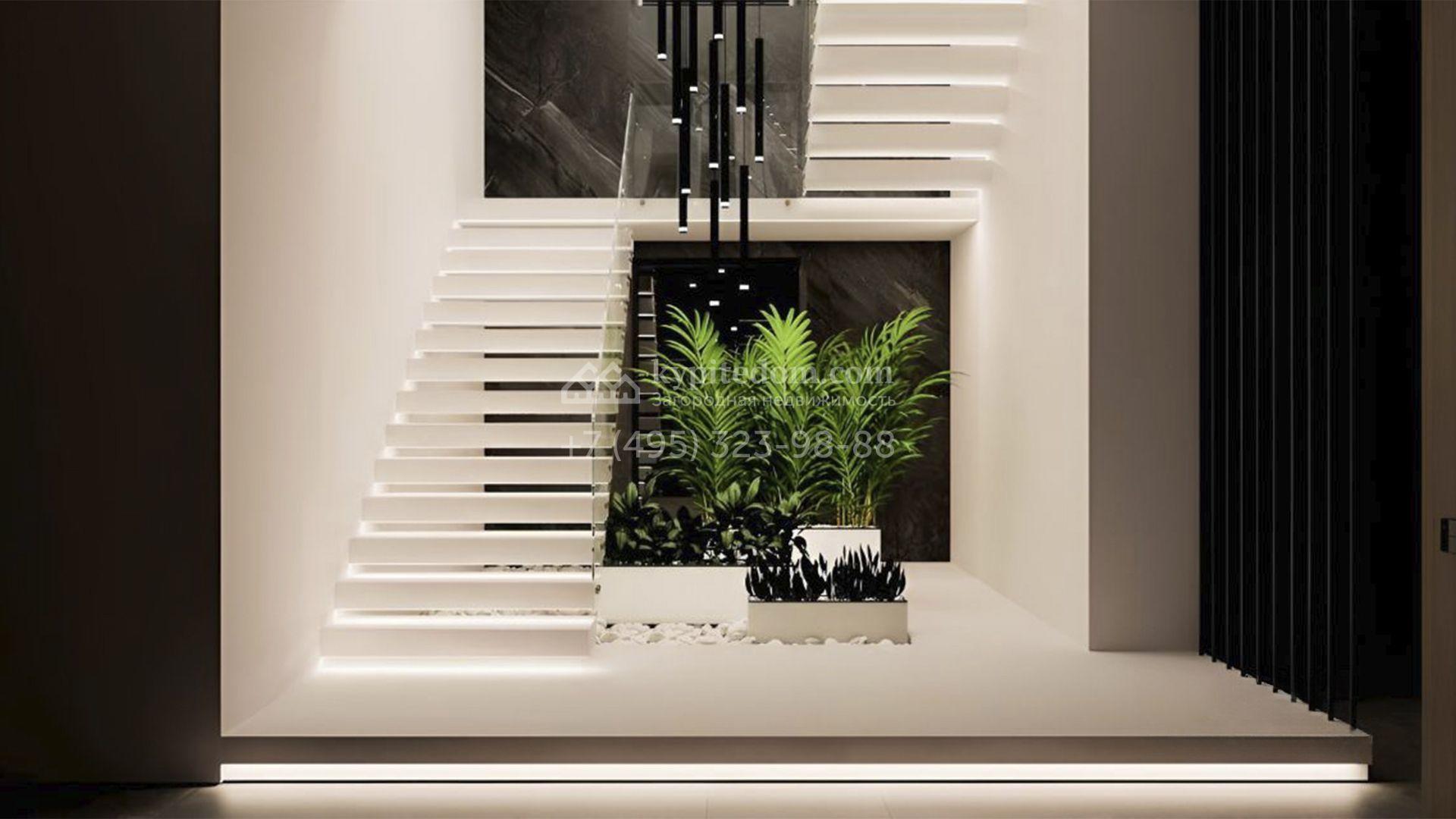 Отсутствие отделки позволяет будущим владельцам оформить пространство по своему усмотрению или же воспользоваться готовыми дизайн-решениями. Дом оснащён передовыми инженерными системами — сантехникой премиальных немецких и итальянских брендов, приточно-вытяжной вентиляцией, канальным кондиционированием Toshiba, системой «умный дом» и видеонаблюдением с датчиками движения и тепла.