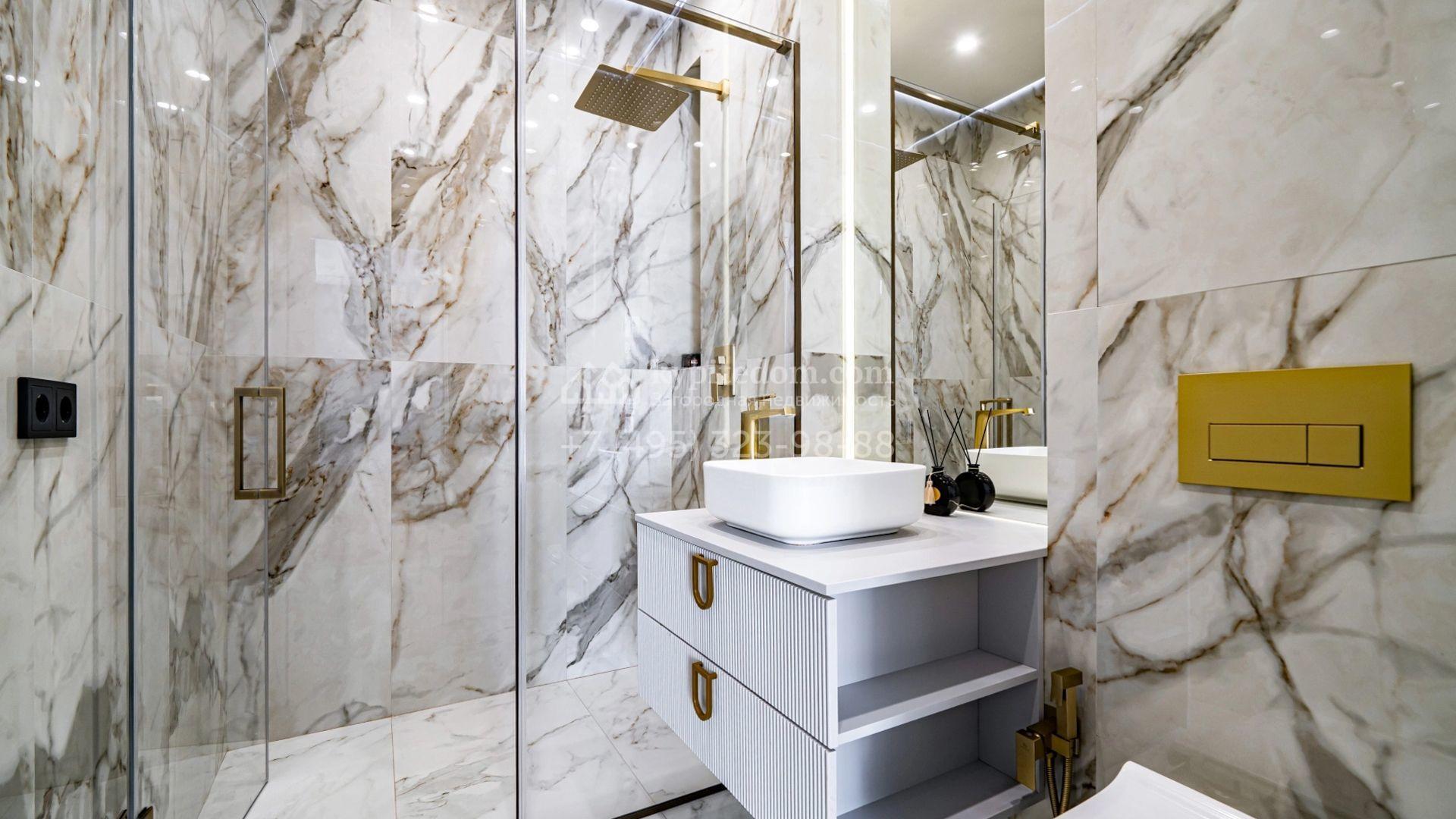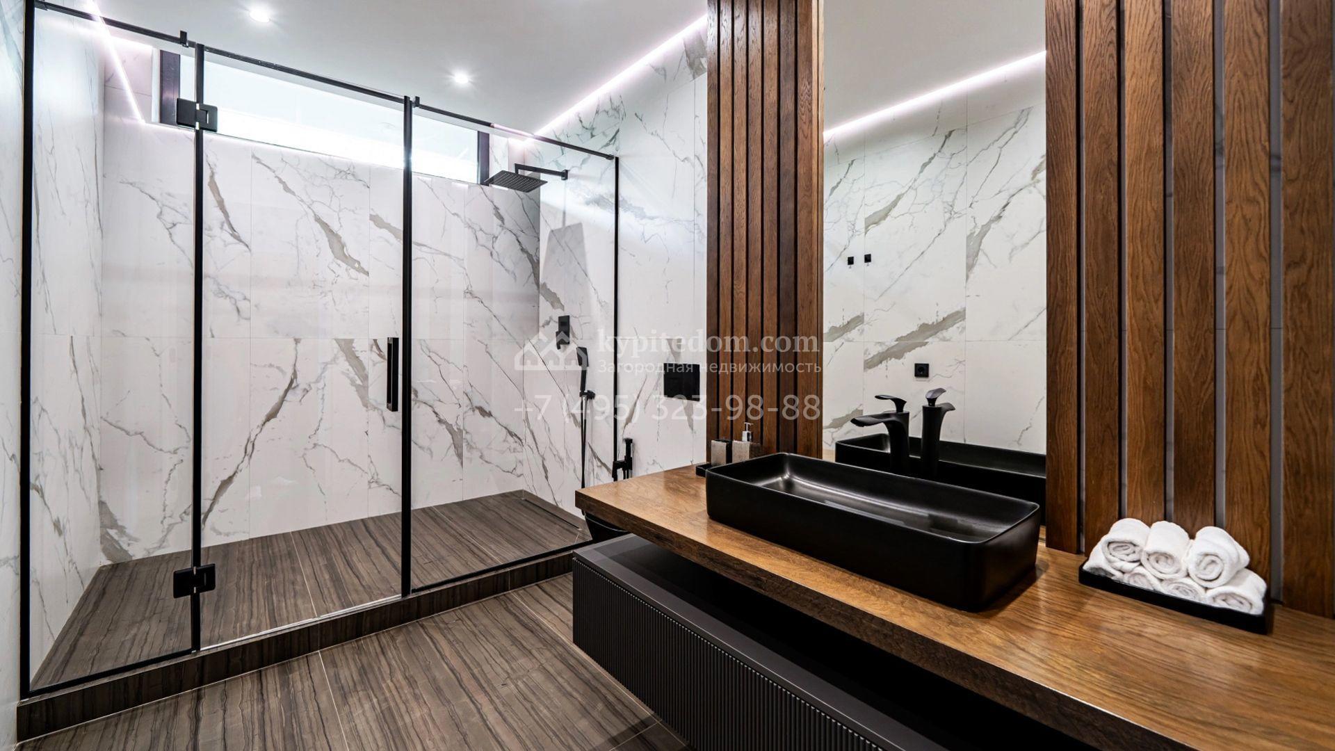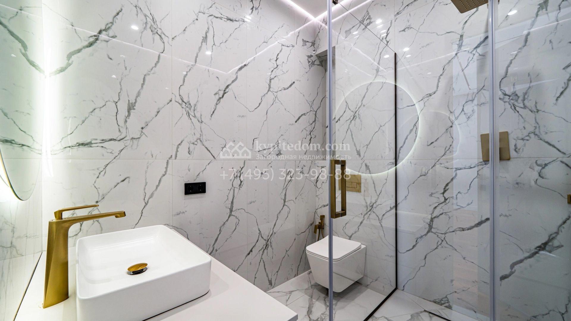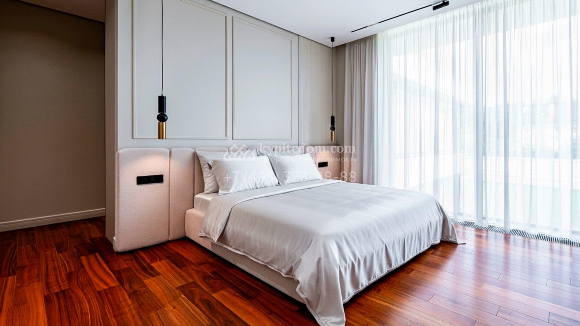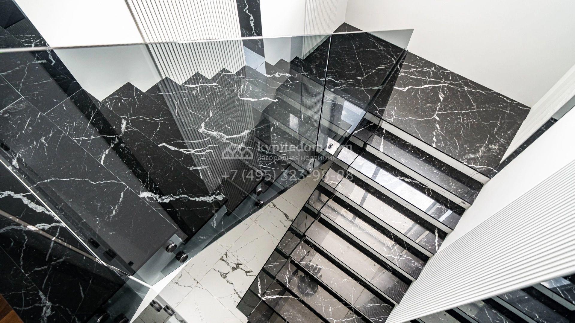 Загородный коттедж площадью 542 м² расположен на живописном полевом участке 19,5 соток. Современный фасад здания, где гармонично сочетаются штукатурка, клинкерный кирпич и благородные планки с фактурой дерева, впечатляет своими строгими линиями, которые в вечернее время элегантно подчеркивает архитектурная подсветка. Панорамные окна создают ощущение единства с природой и наполняют интерьеры солнечными лучами. Внутреннее пространство оформлено в светлой гамме с использованием премиальных материалов. Дизайнерскую отделку дополняют изящные молдинги, стильные светильники и люстры, а также со вкусом подобранная мебель. Для бытового комфорта установлена техника Asko и Liebherr, а за поддержание идеального микроклимата отвечает система кондиционирования.