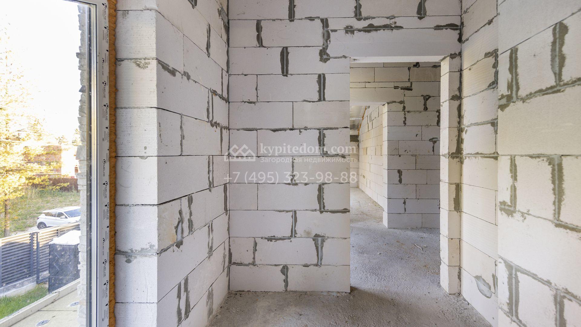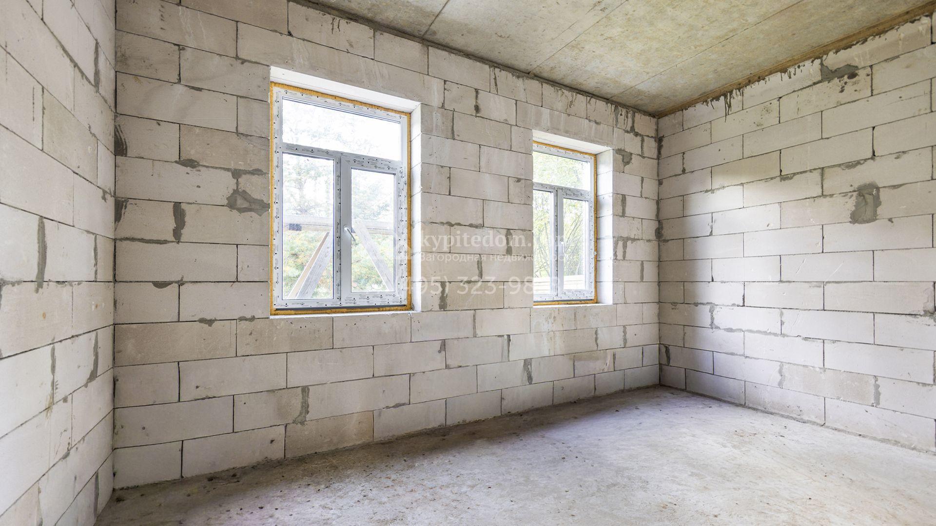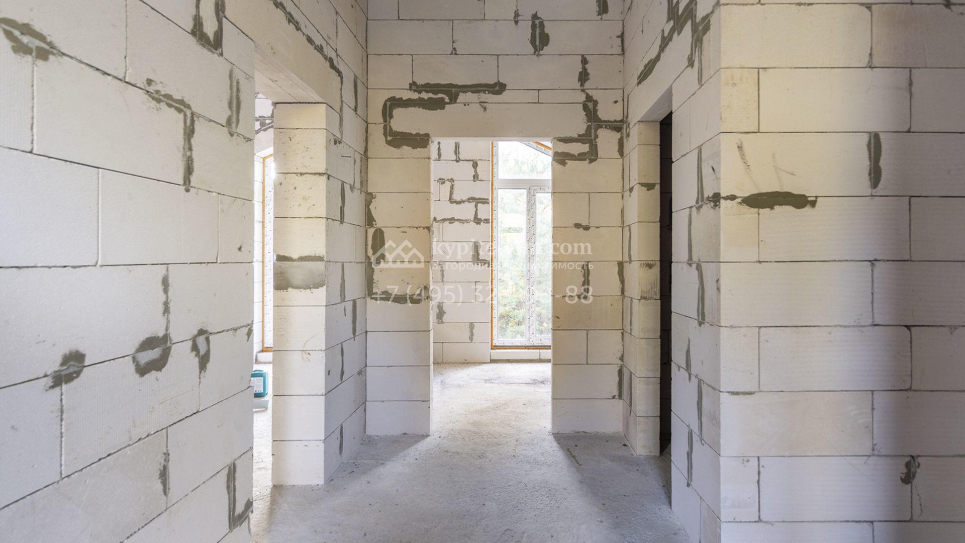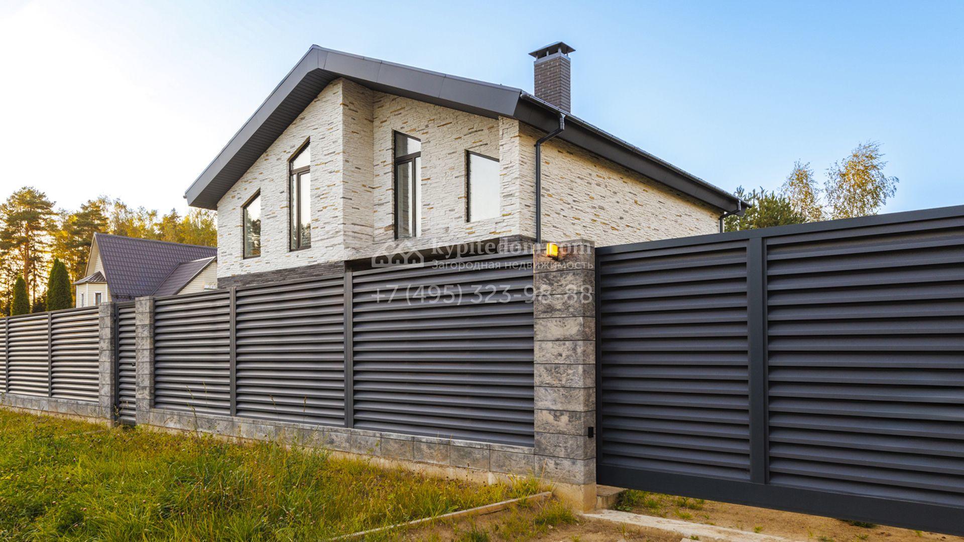 Загородный коттедж площадью 218 м² расположен на полевом участке 10 соток. Современный фасад облицован плиткой с фактурой камня двух контрастирующих оттенков, что придаёт зданию стильный архитектурный облик. Наполненные светом интерьеры представлены без отделки — будущие владельцы смогут реализовать здесь любой дизайн-проект.