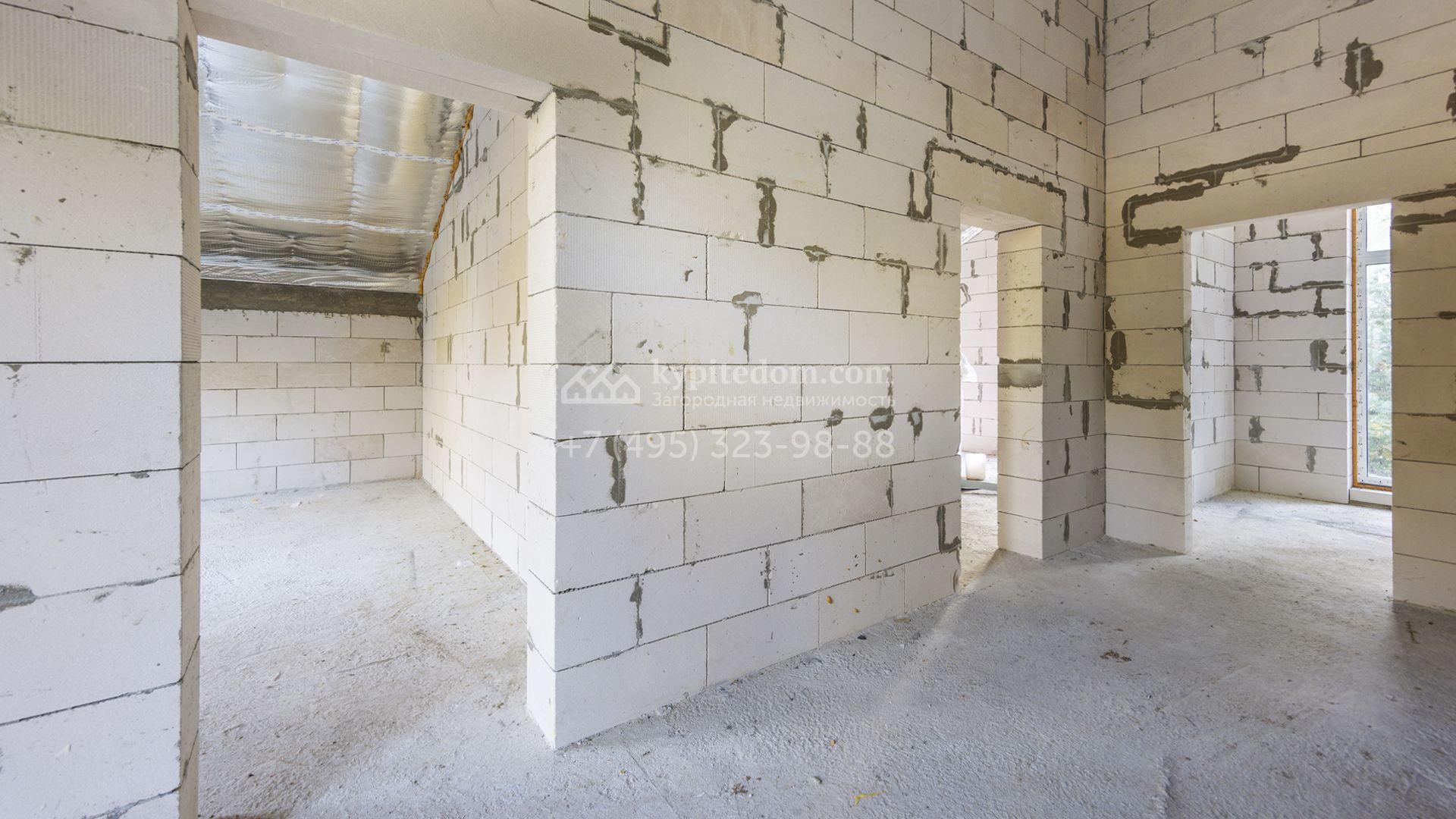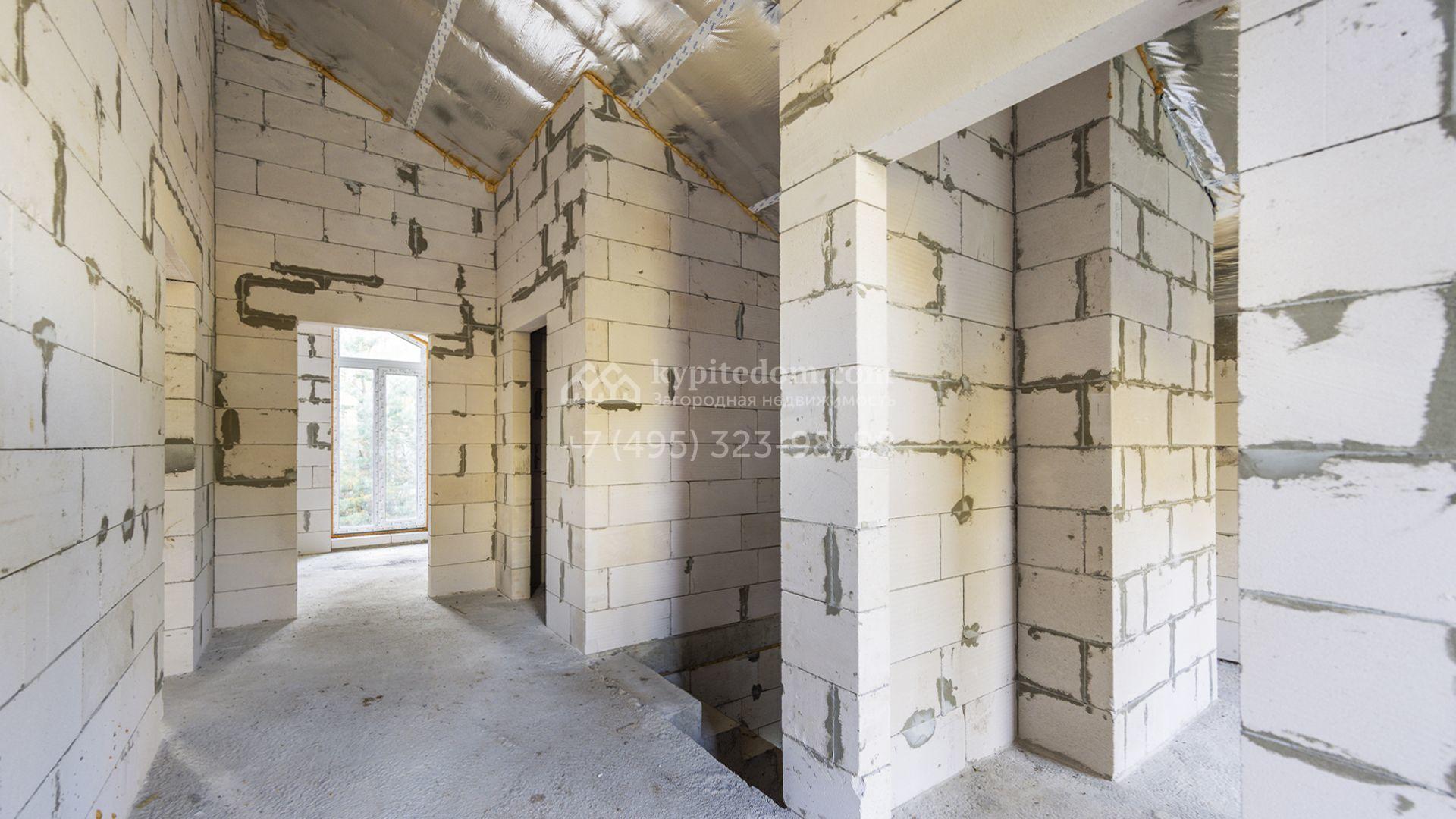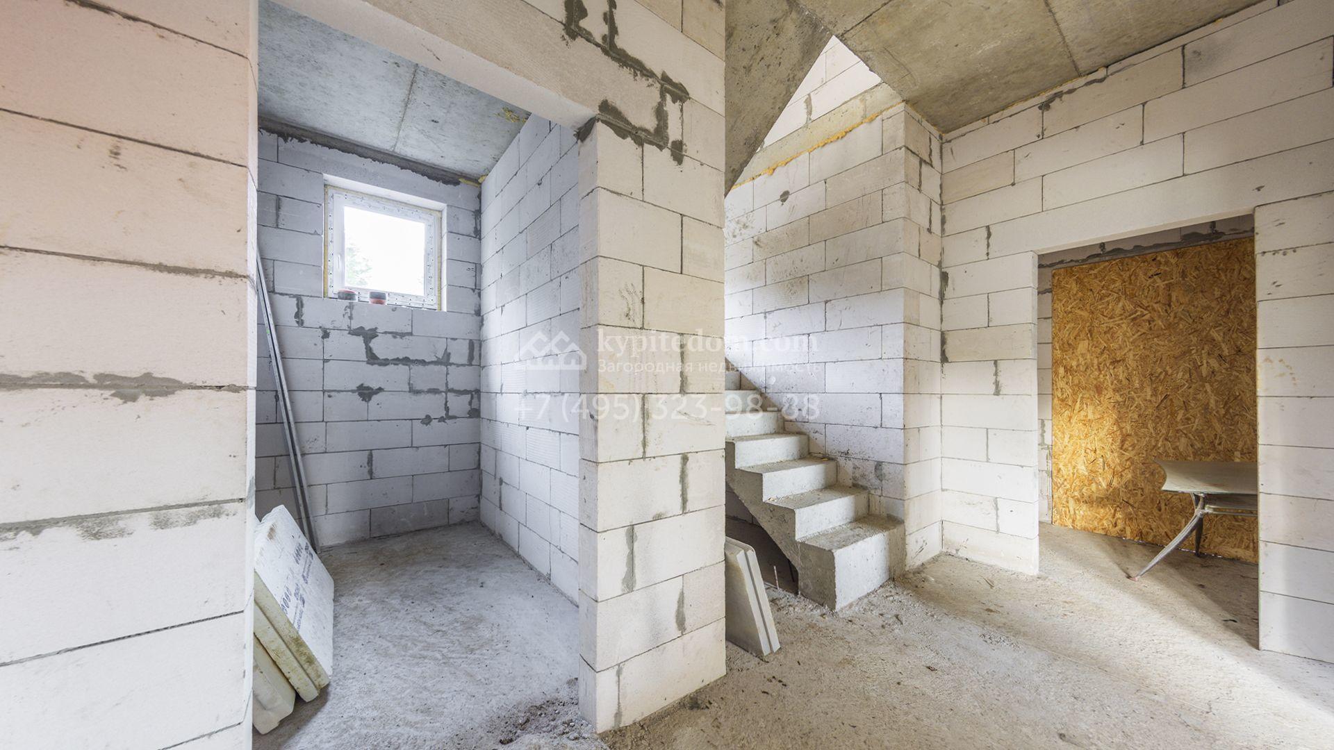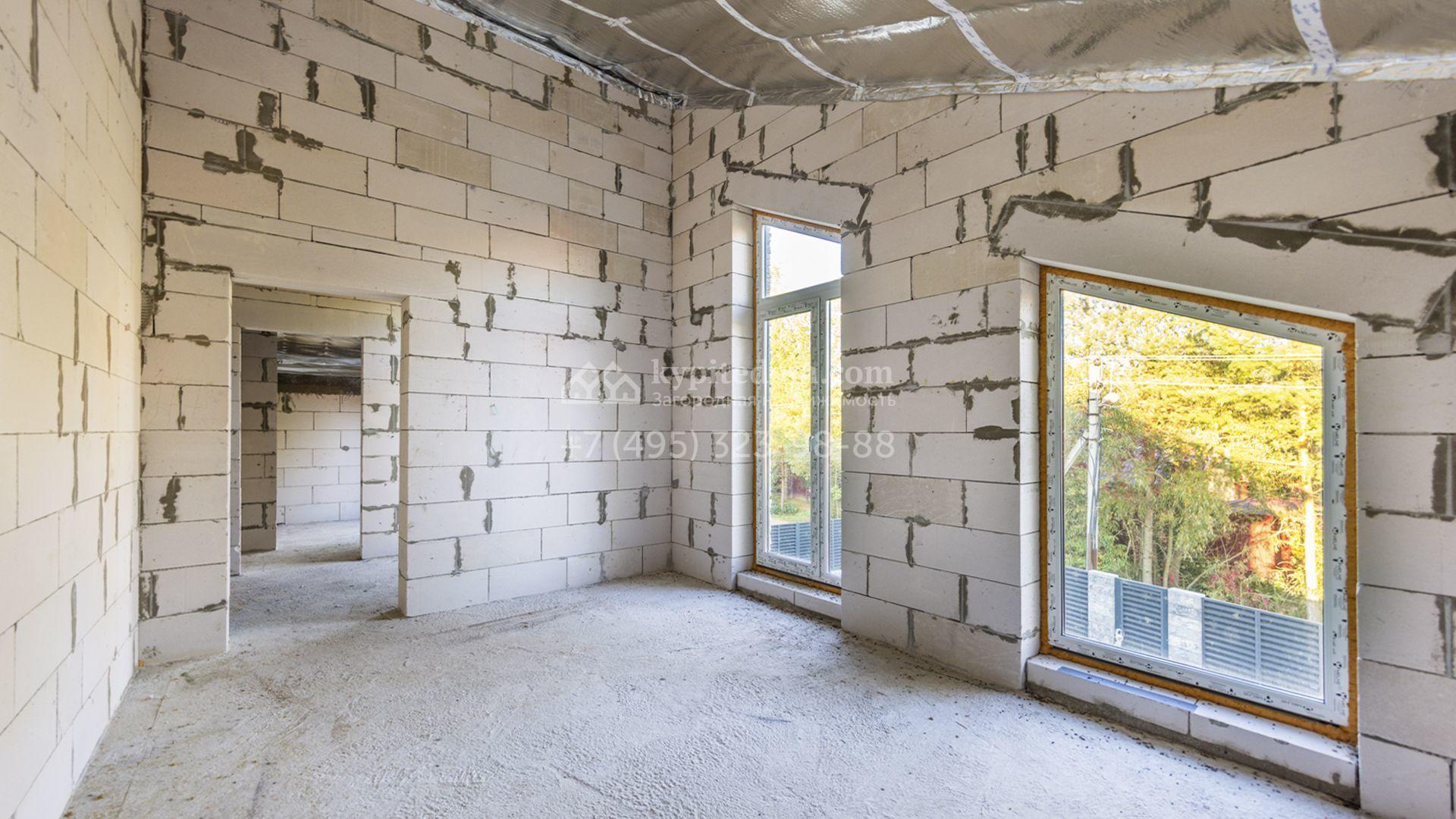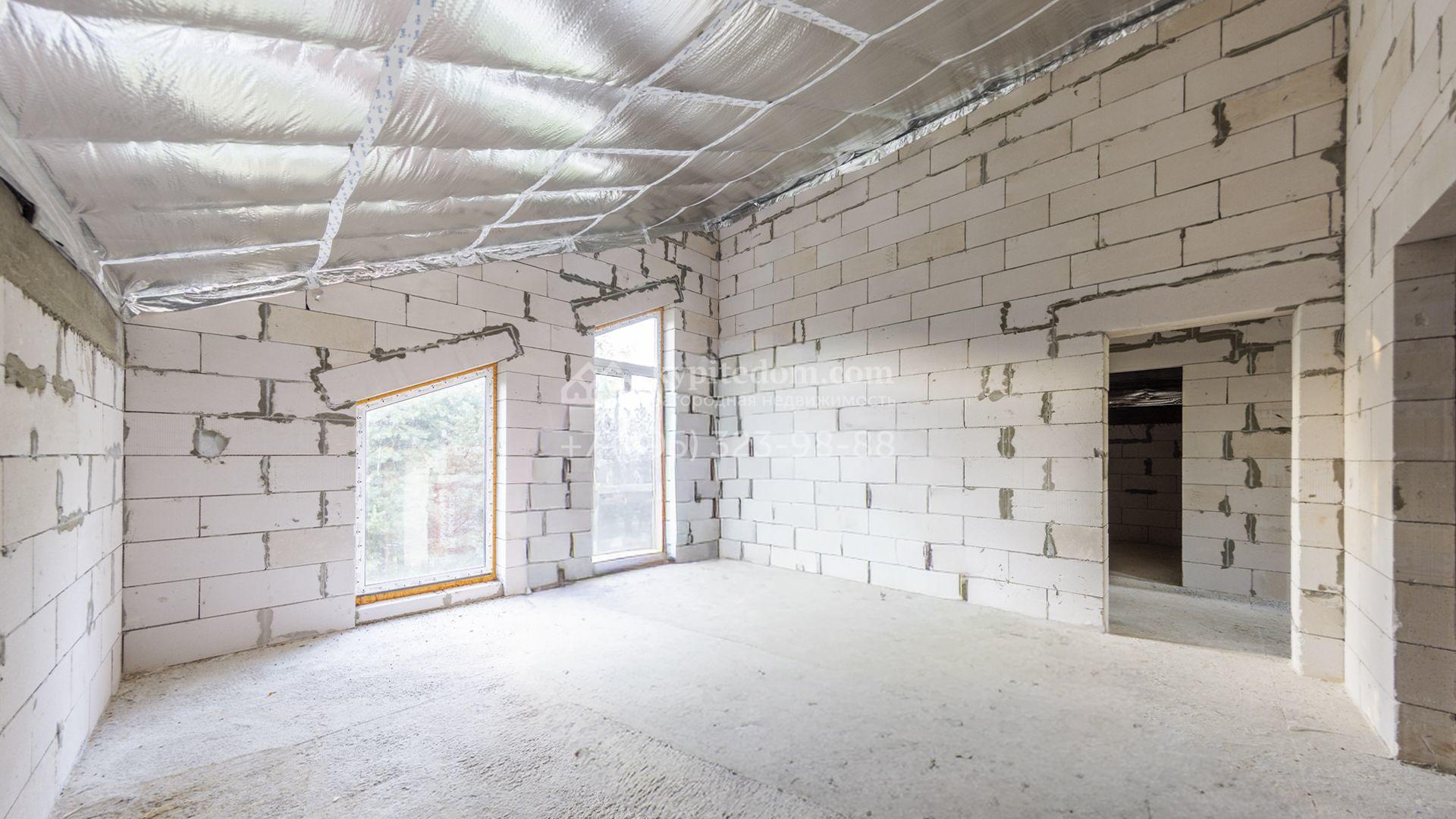 Загородный коттедж площадью 218 м² расположен на полевом участке 10 соток. Современный фасад облицован плиткой с фактурой камня двух контрастирующих оттенков, что придаёт зданию стильный архитектурный облик. Наполненные светом интерьеры представлены без отделки — будущие владельцы смогут реализовать здесь любой дизайн-проект.
