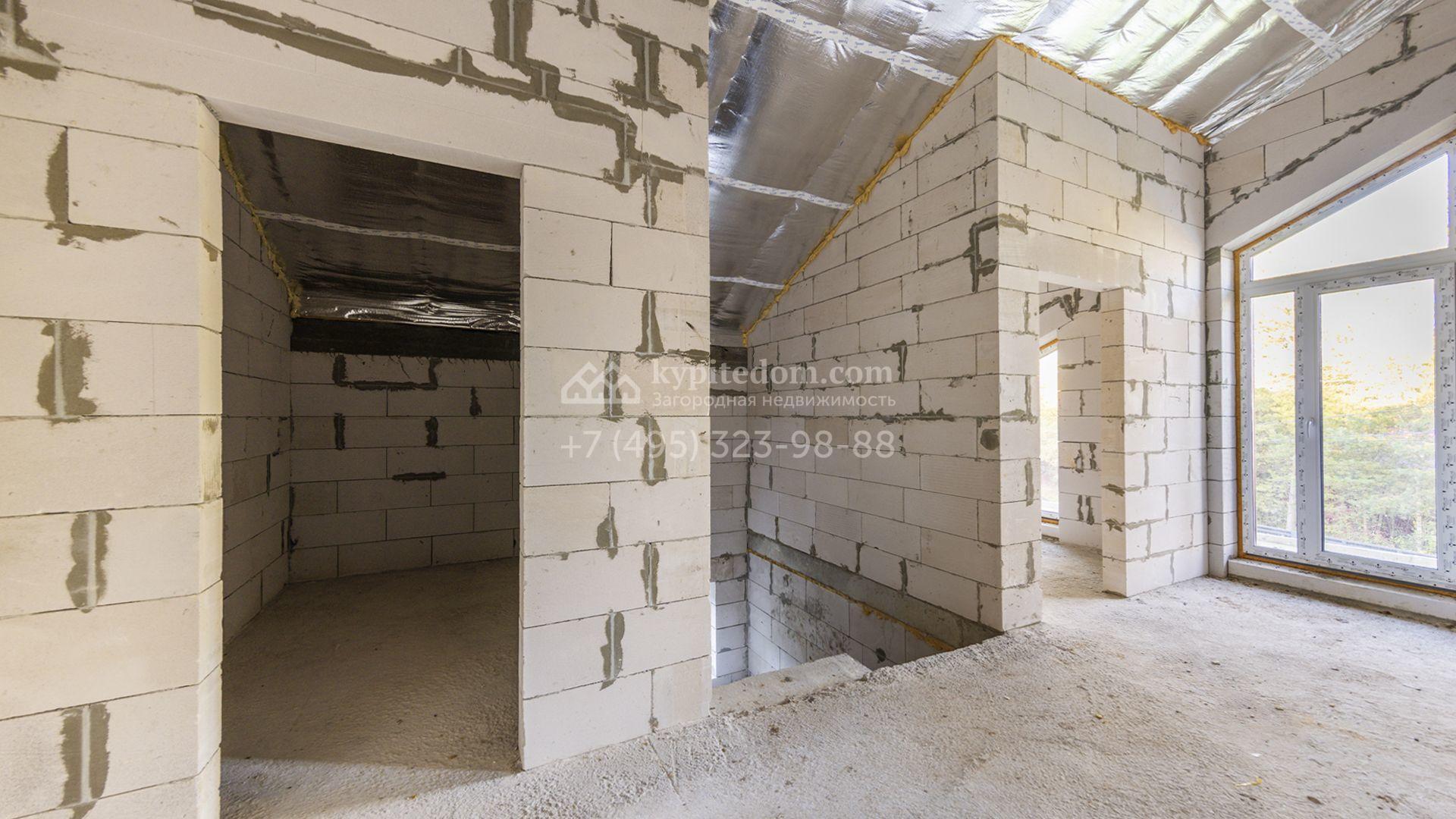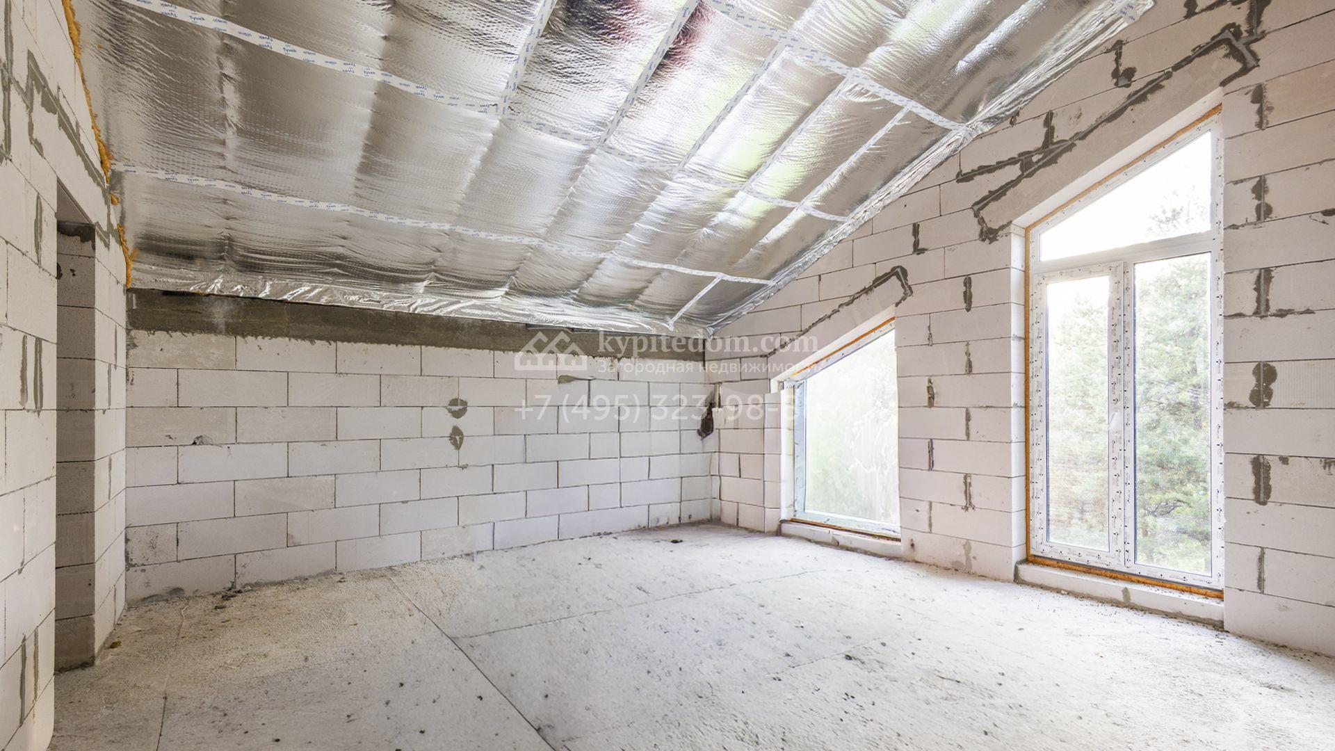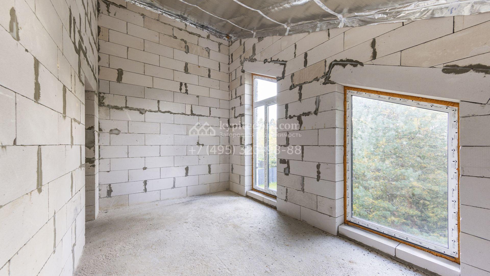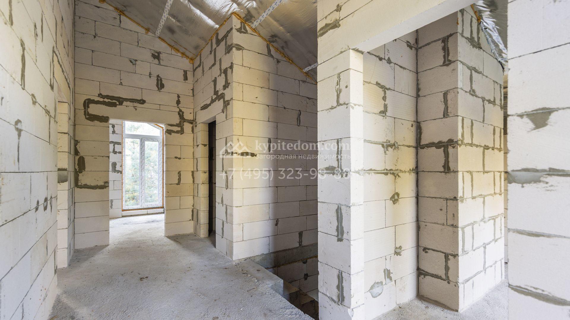 Загородный коттедж площадью 218 м² расположен на полевом участке 10 соток. Современный фасад облицован плиткой с фактурой камня двух контрастирующих оттенков, что придаёт зданию стильный архитектурный облик. Наполненные светом интерьеры представлены без отделки — будущие владельцы смогут реализовать здесь любой дизайн-проект.