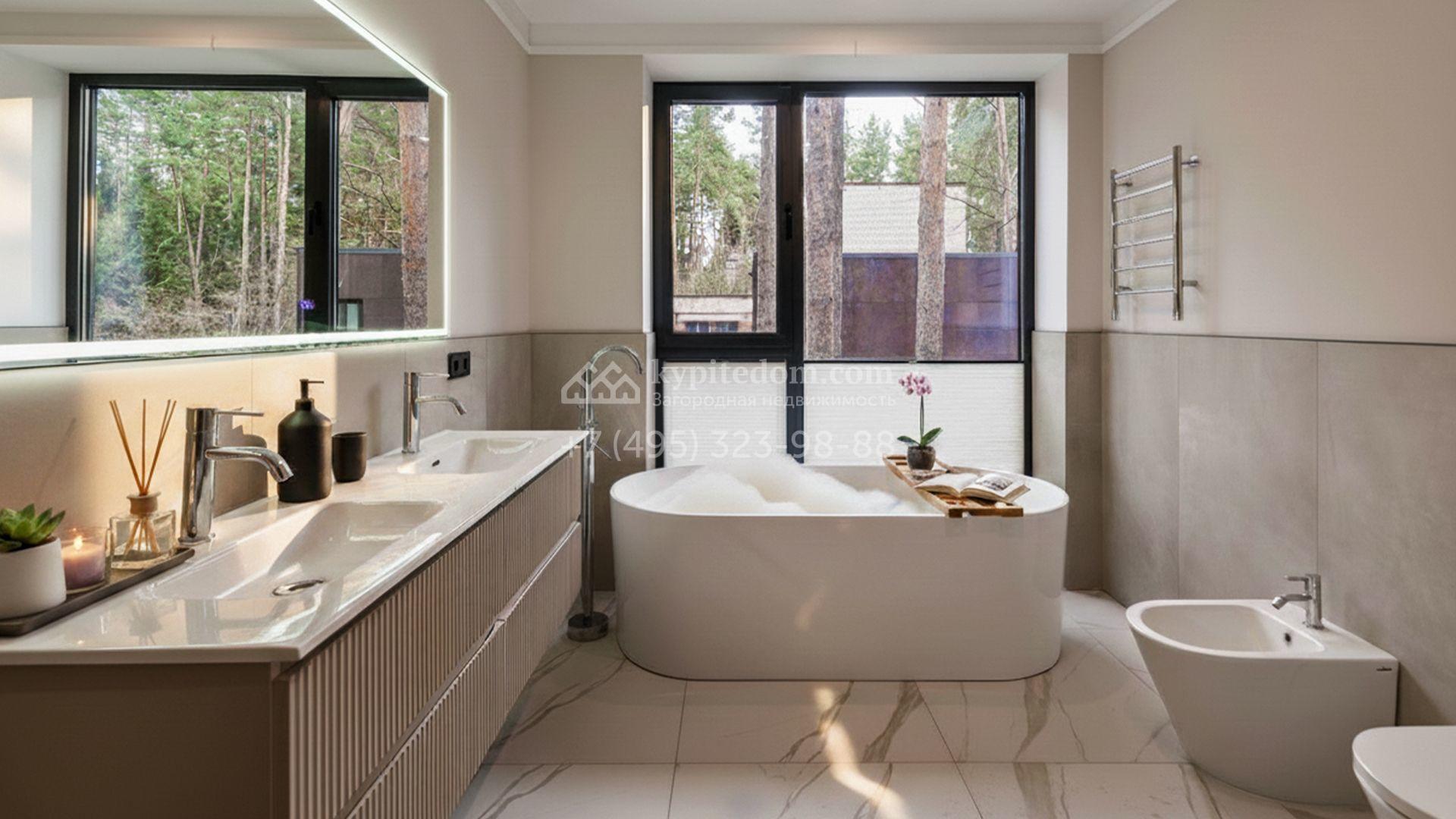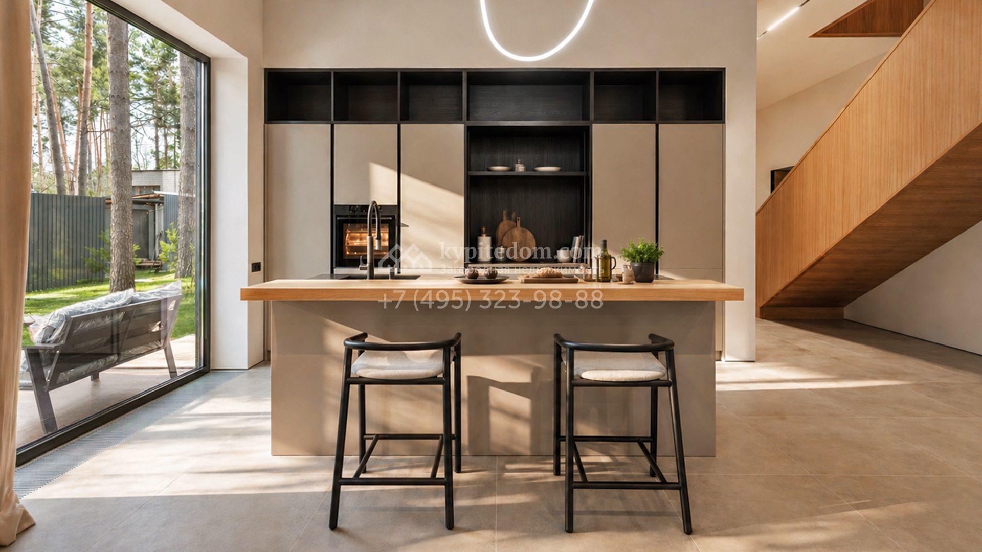 Современный фасад облицован немецким клинкером и дополнен элементами с фактурой дерева, а панорамные окна и потолки высотой от 3,6 до 5 метров наполняют внутренние пространства естественным светом, создавая ощущение свободы и лёгкости. Дом полностью готов к жизни — стильные интерьеры укомплектованы комфортной мебелью и встроенной бытовой техникой. Благодаря системе кондиционирования здесь всегда царит приятный микроклимат.